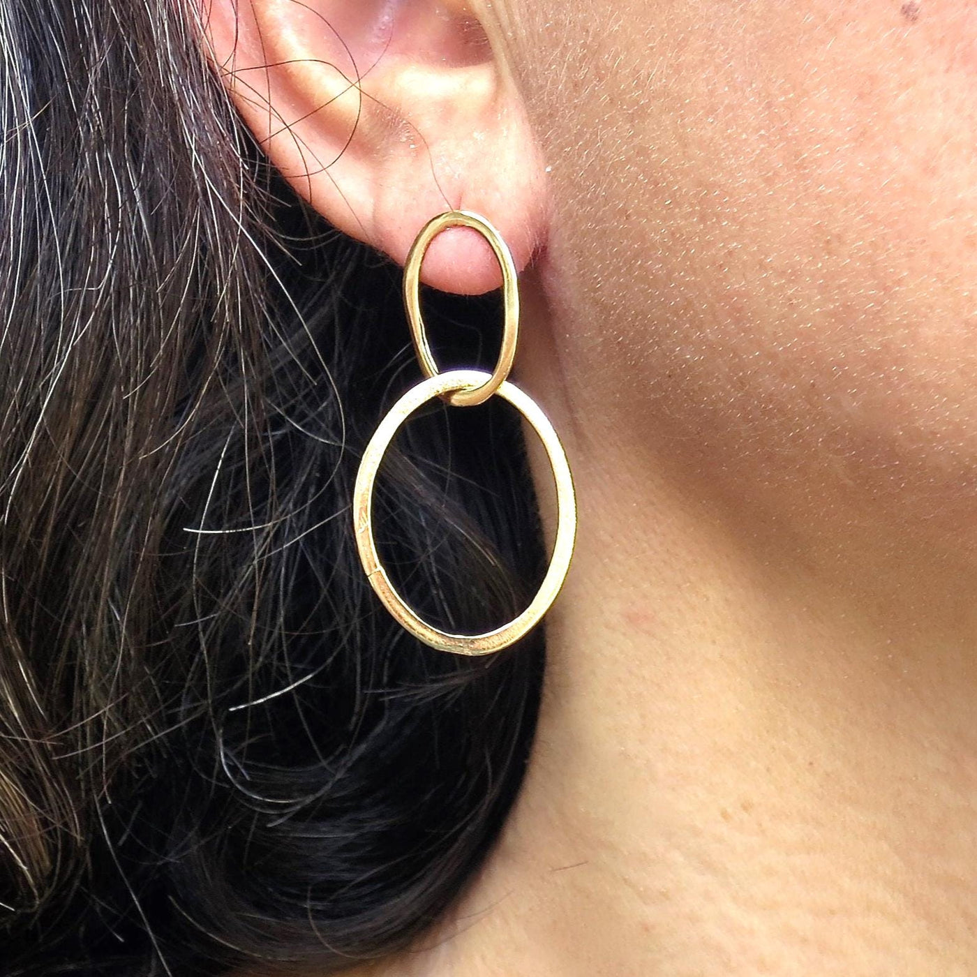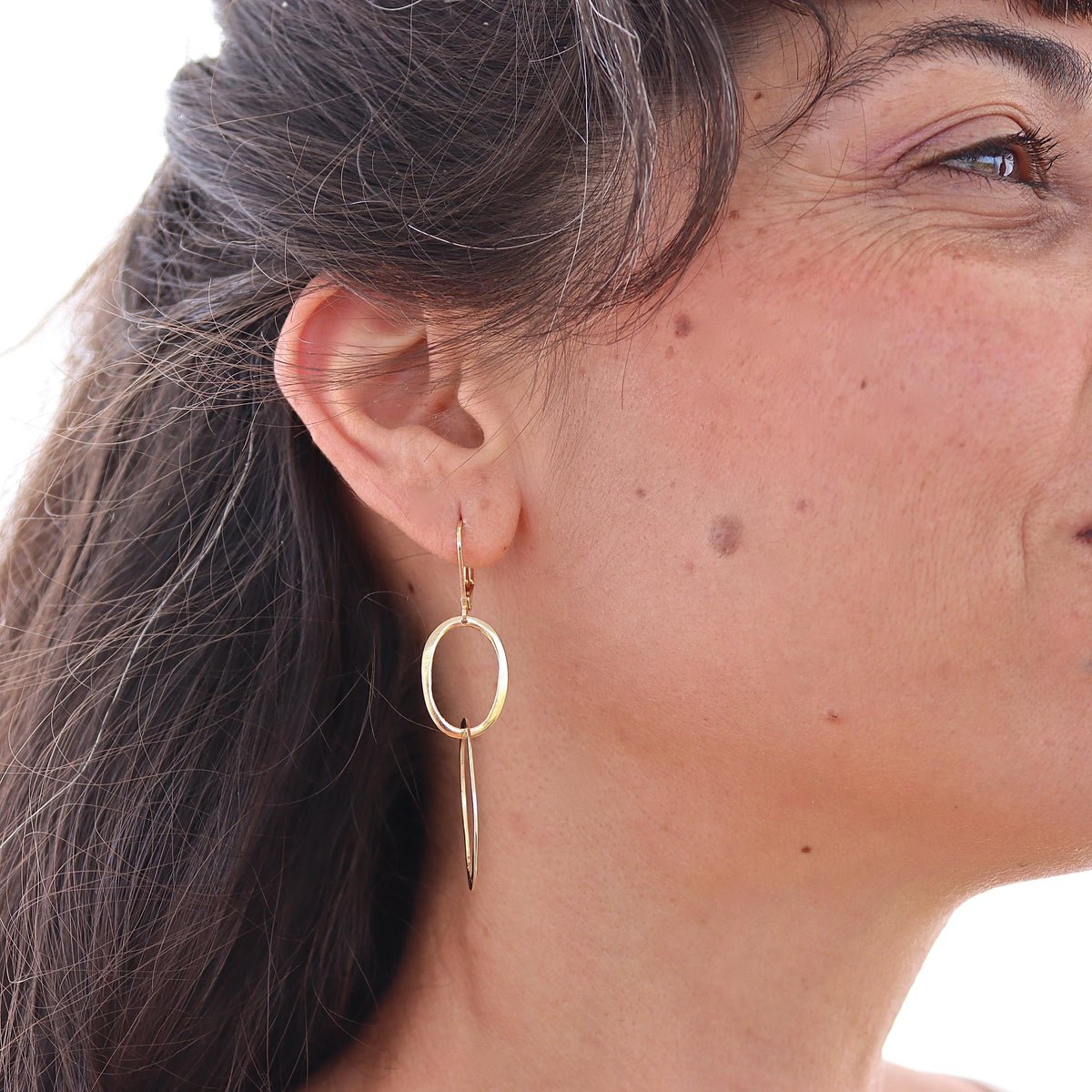 יצרתי עגיל צמוד אליפסה עם חישוק אליפסה גדול יותר שזור בחופשיות דרך החישוק, העגילים גדולים מבלי להיות כבדים ללבישה.
