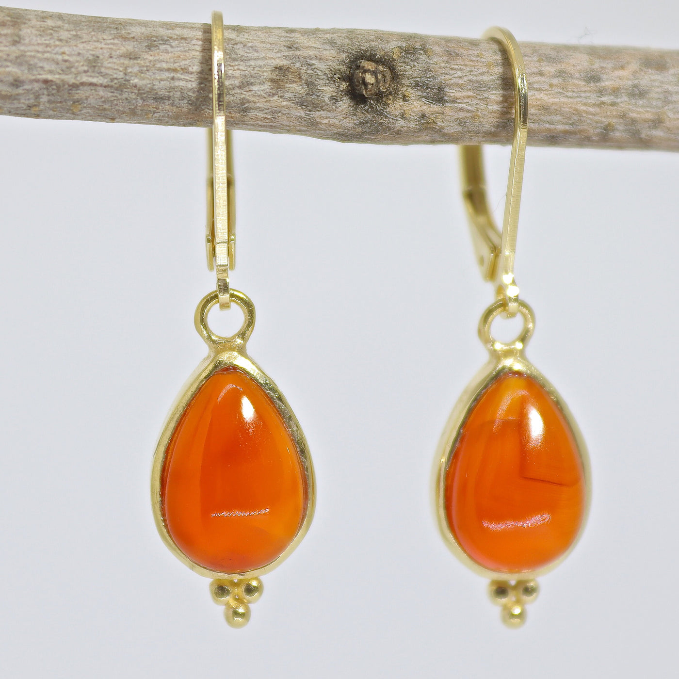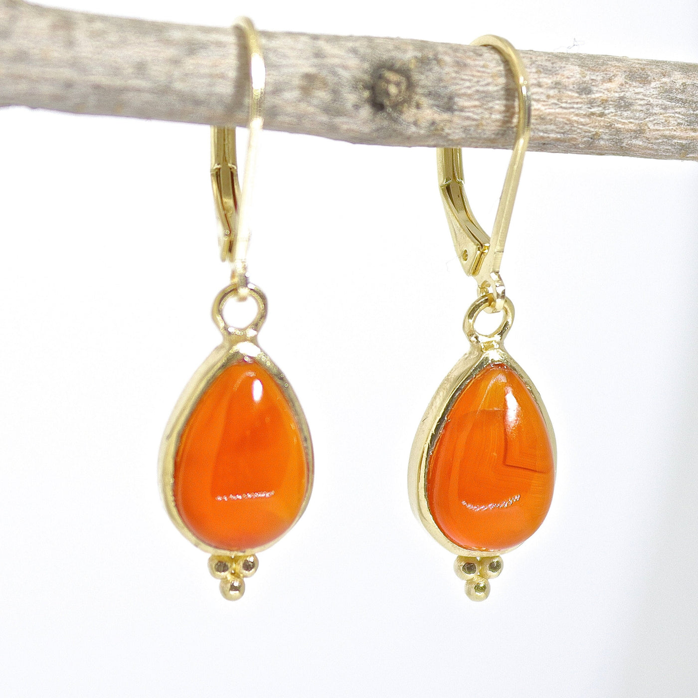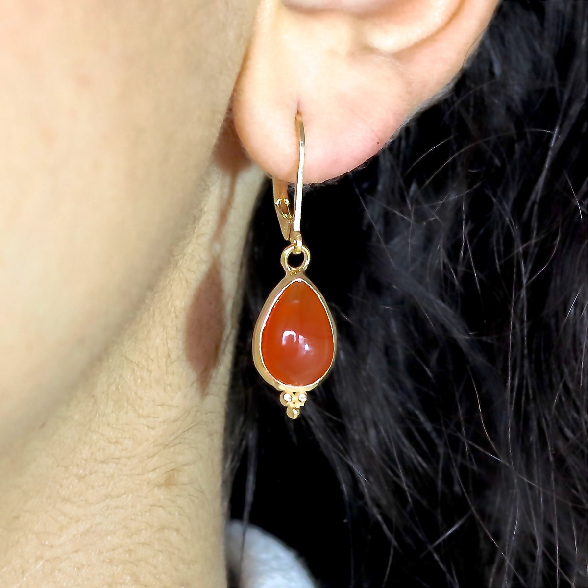 עגילי זהב קרנליאן טיפה תלויים ציפוי זהב