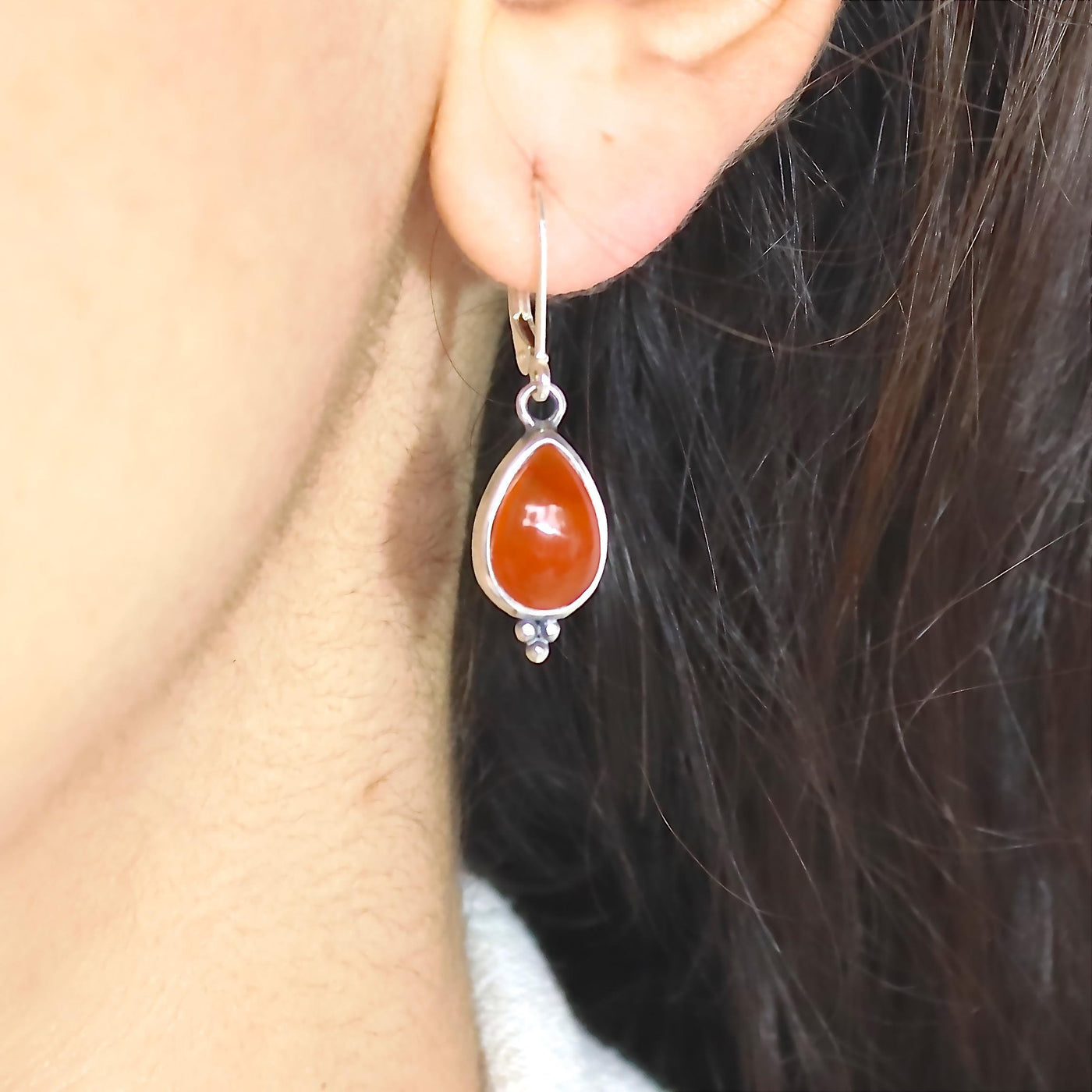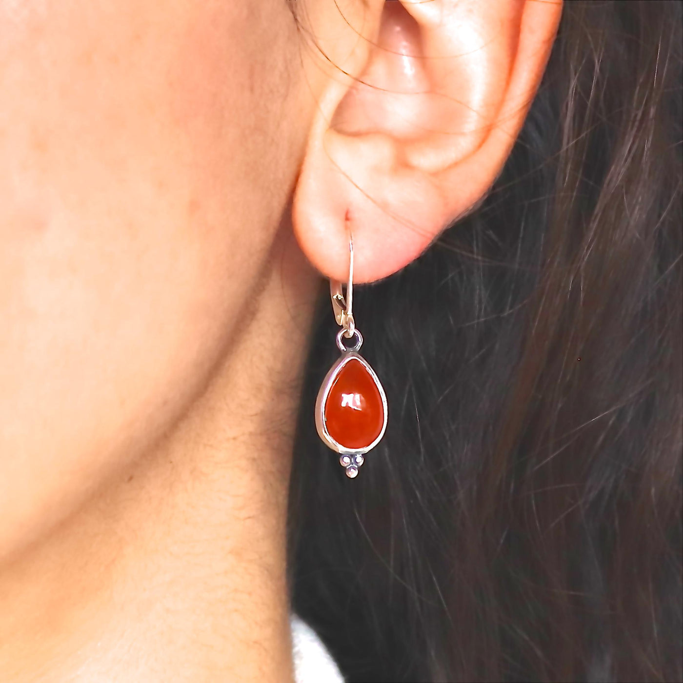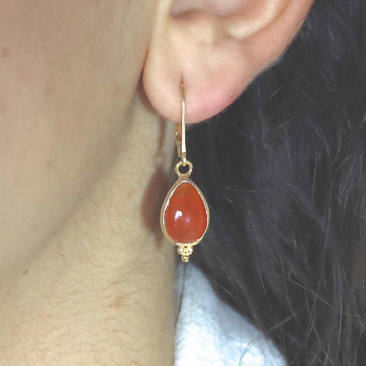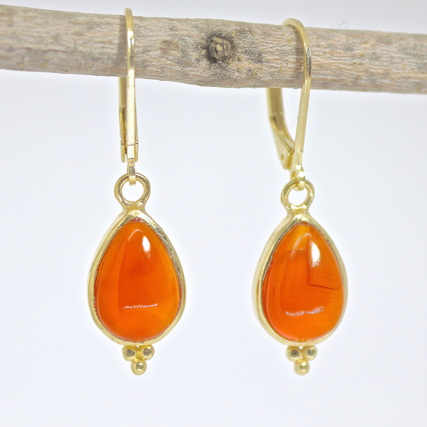 עגילי זהב קרנליאן טיפה תלויים ציפוי זהב