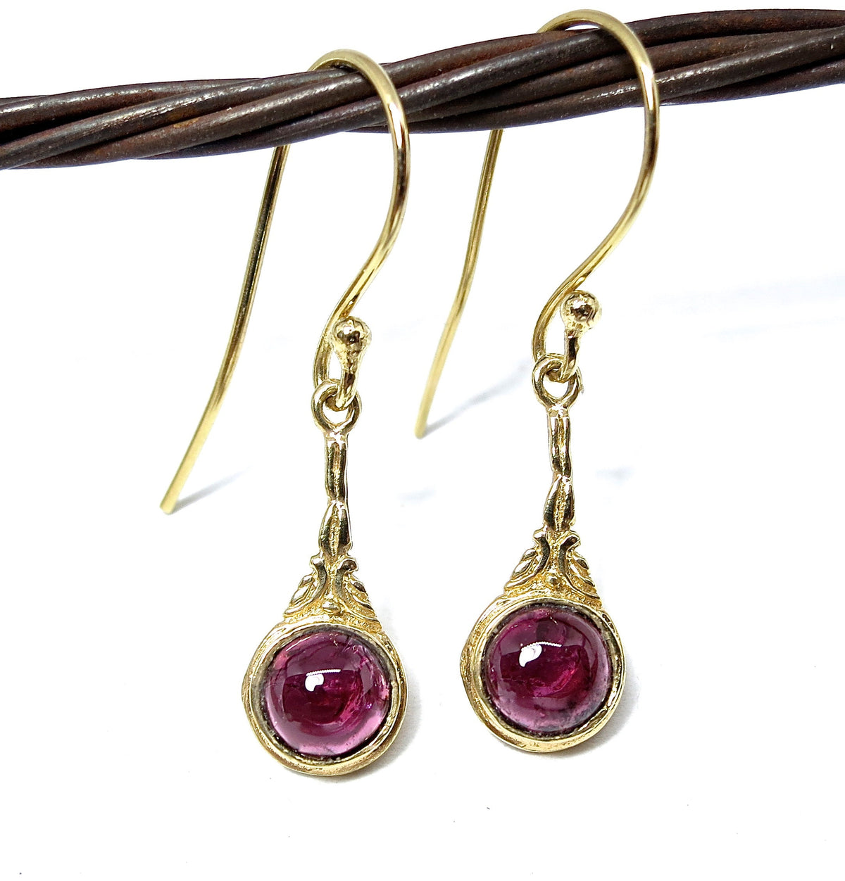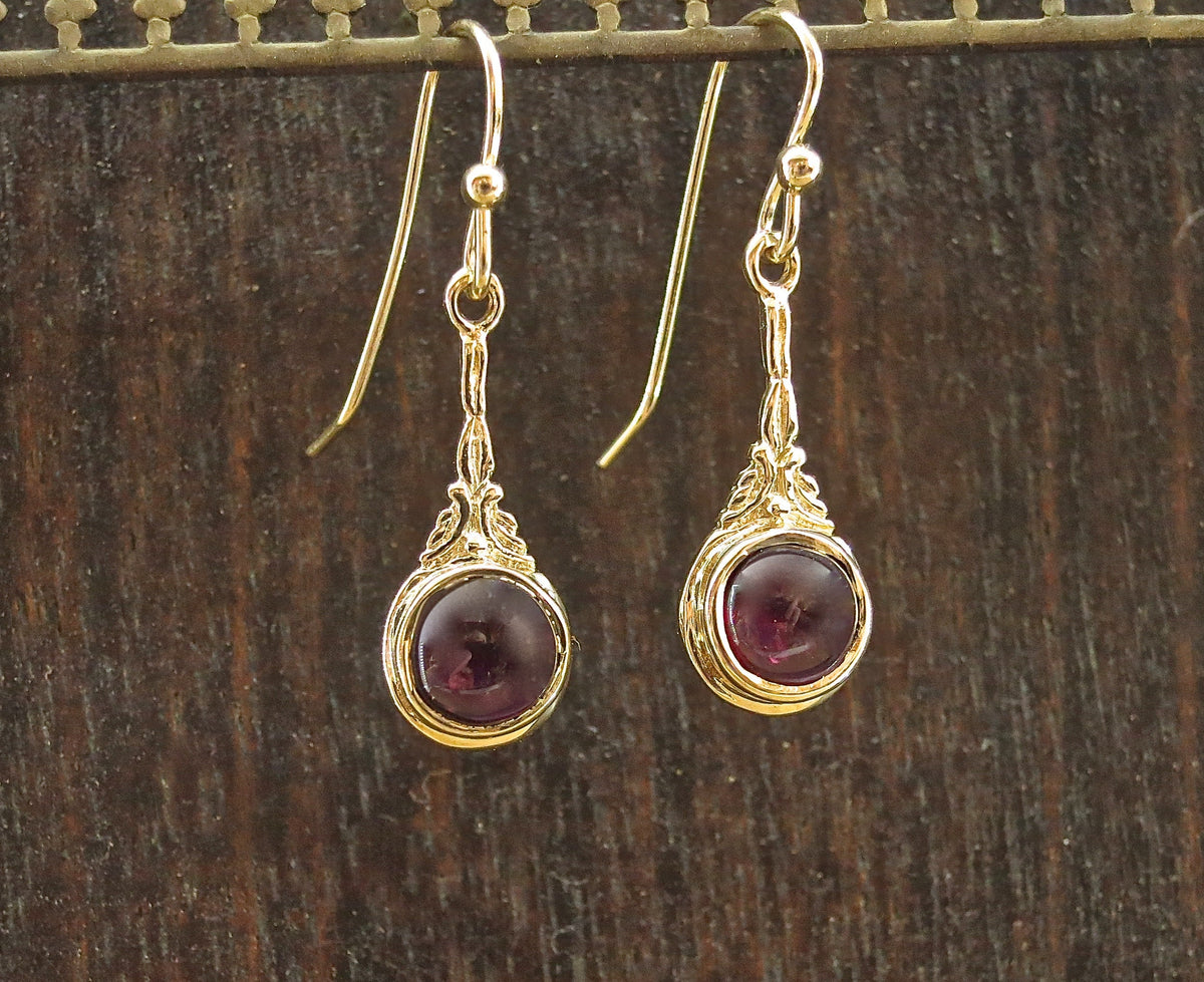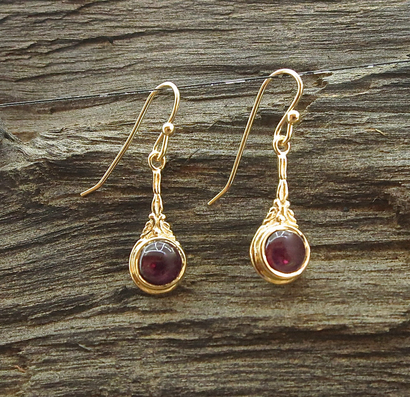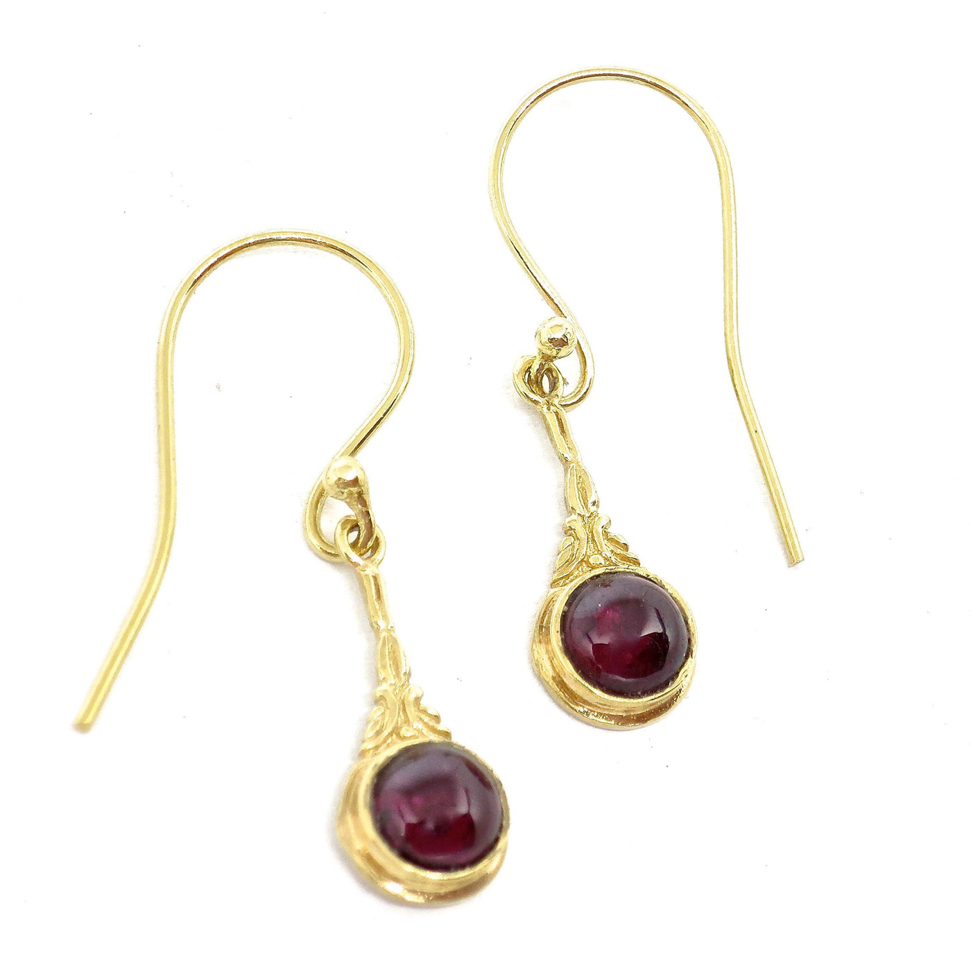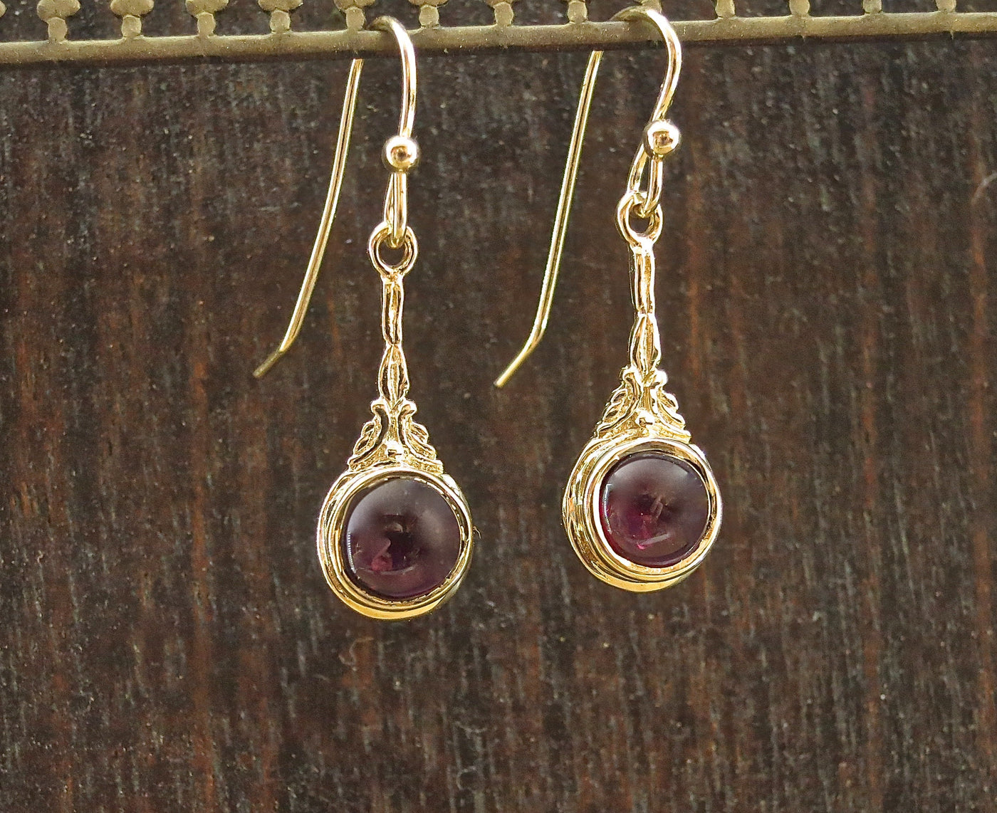 עגילי זהב תלויים, עגילי גרנט ויקטוריאניים, עגילי זהב אלגנטיים, תכשיטי זהב עדינים ואלגנטיים.