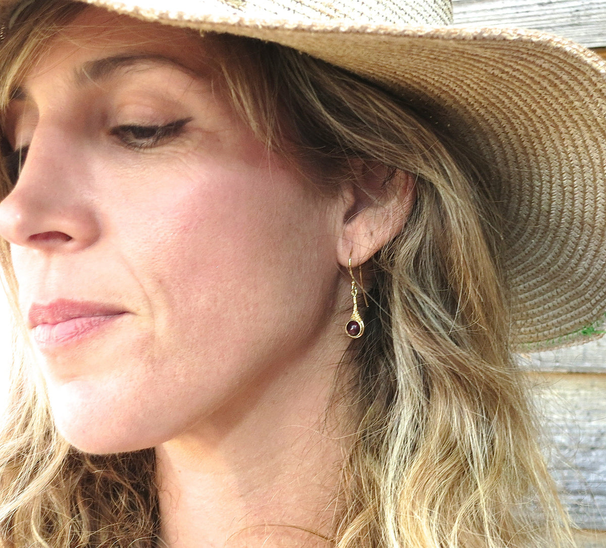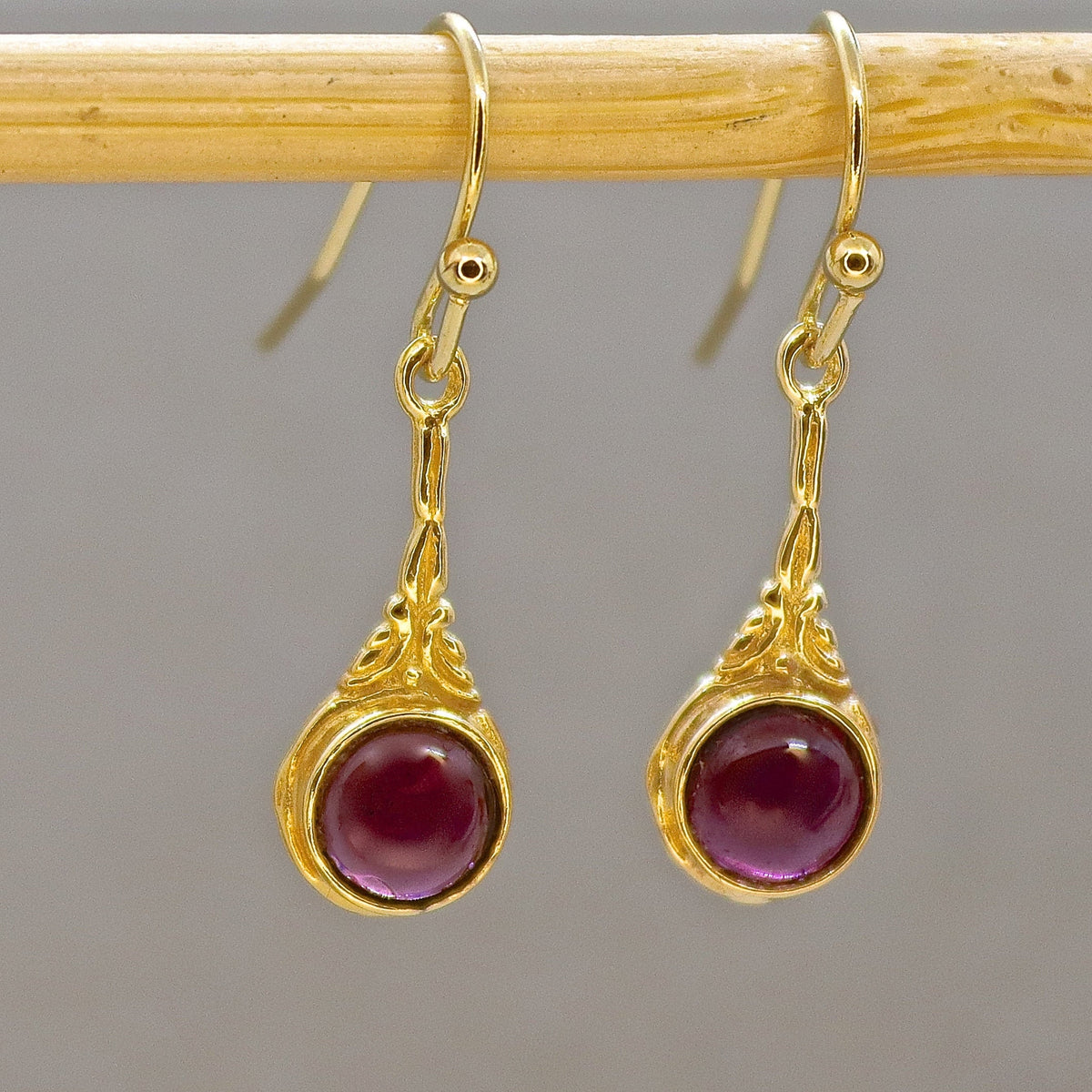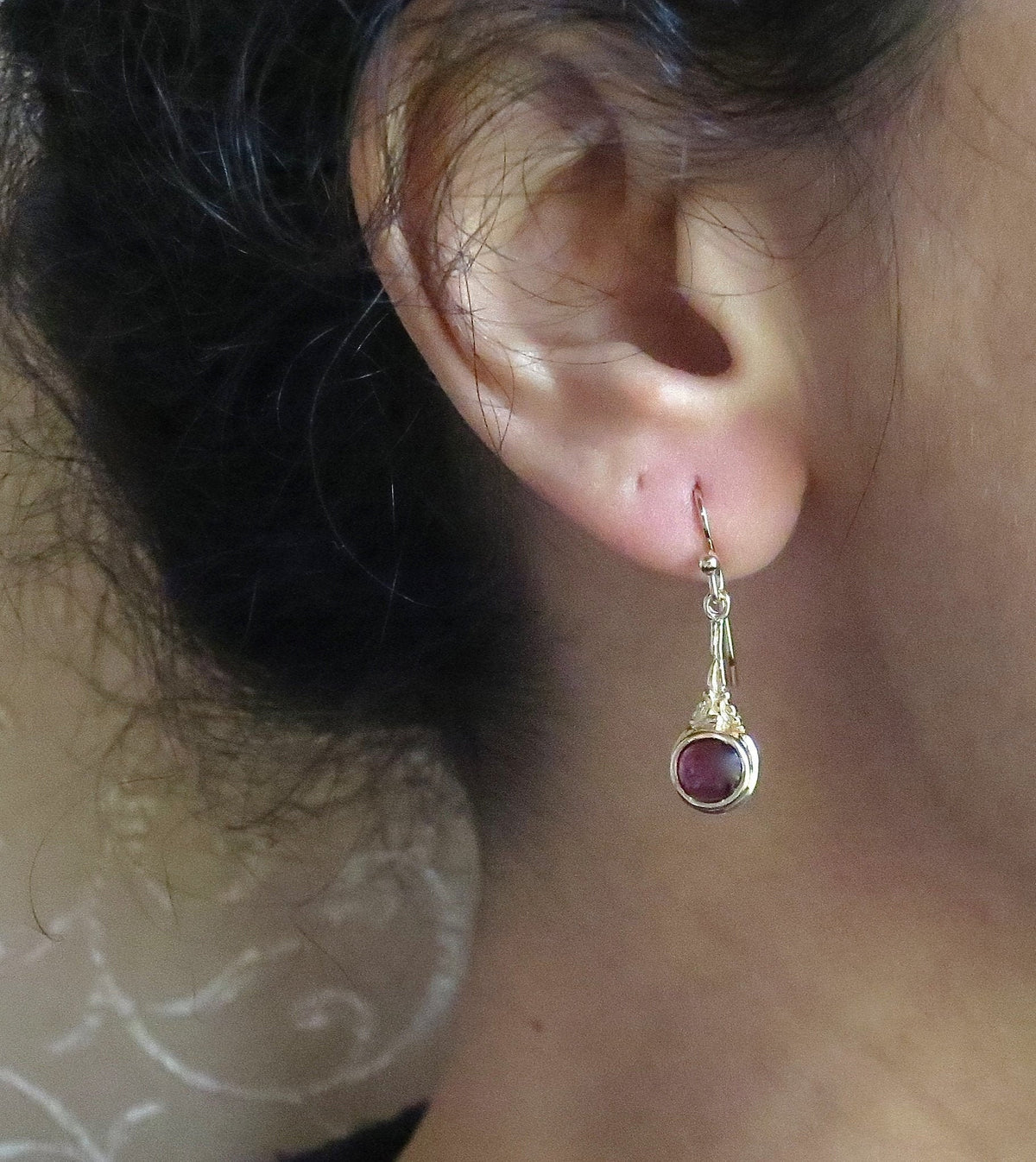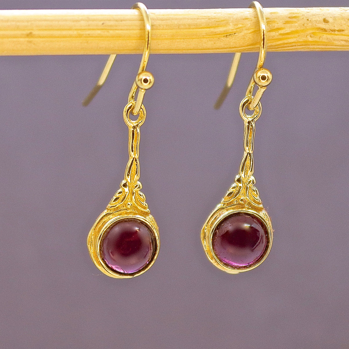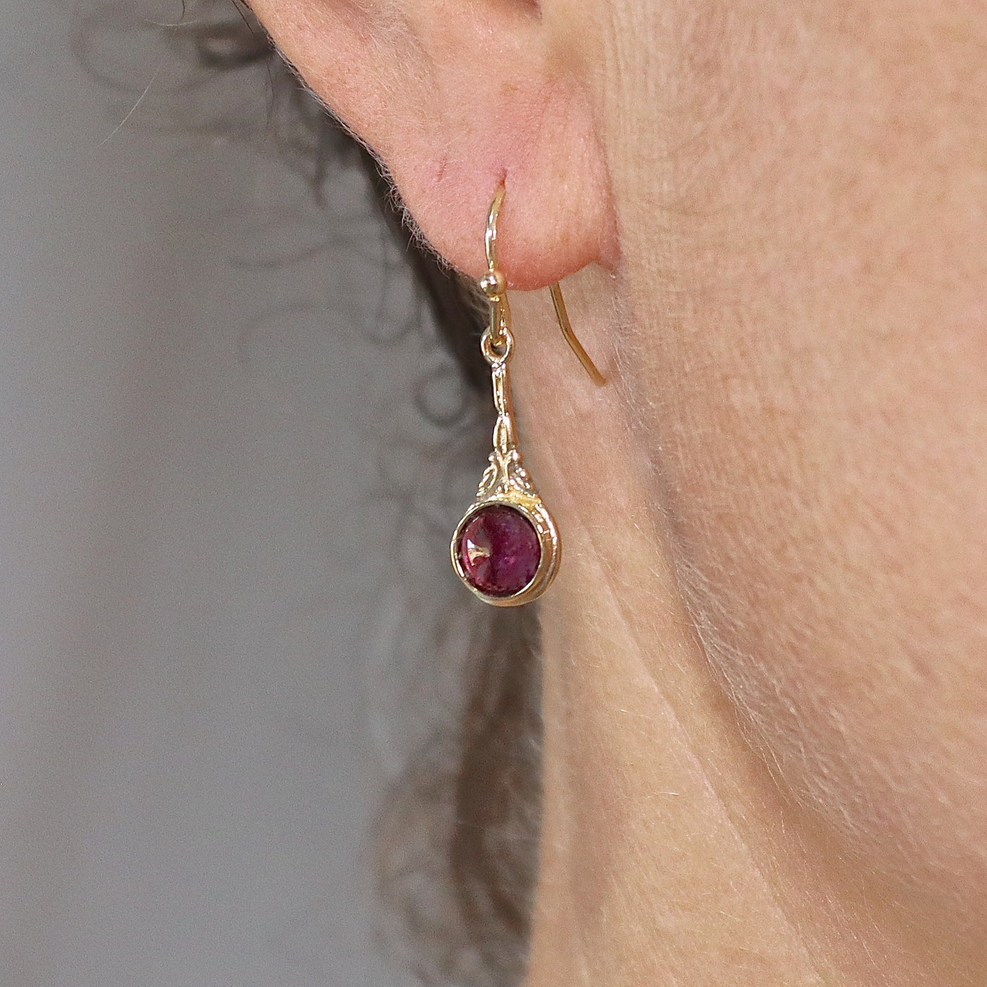 עגילי זהב תלויים, עגילי גרנט ויקטוריאניים, עגילי זהב אלגנטיים, תכשיטי זהב עדינים ואלגנטיים.