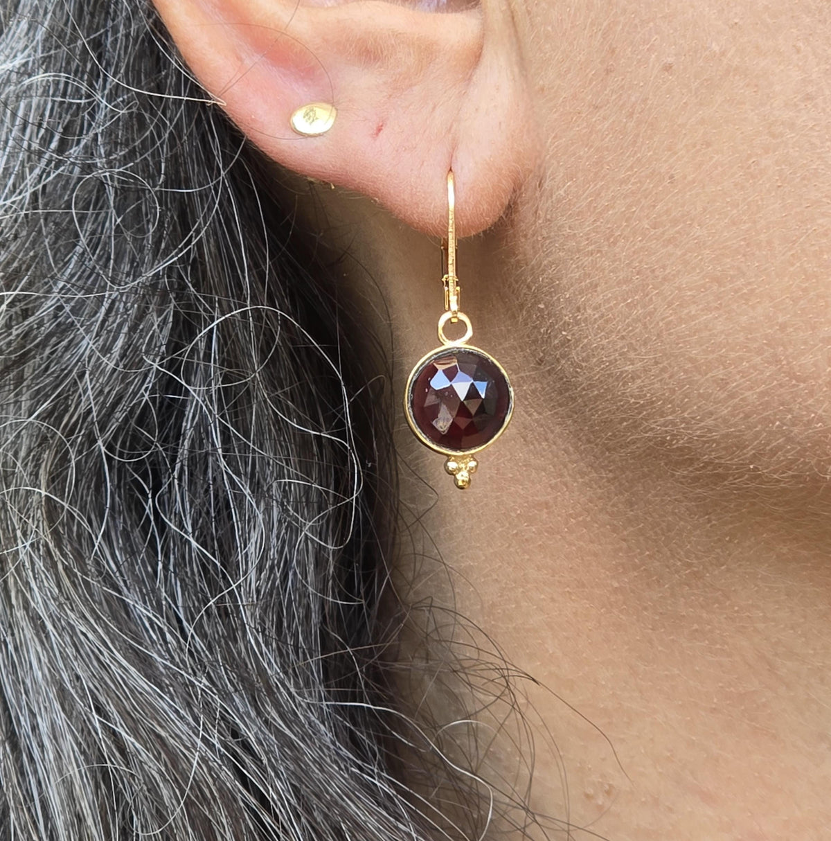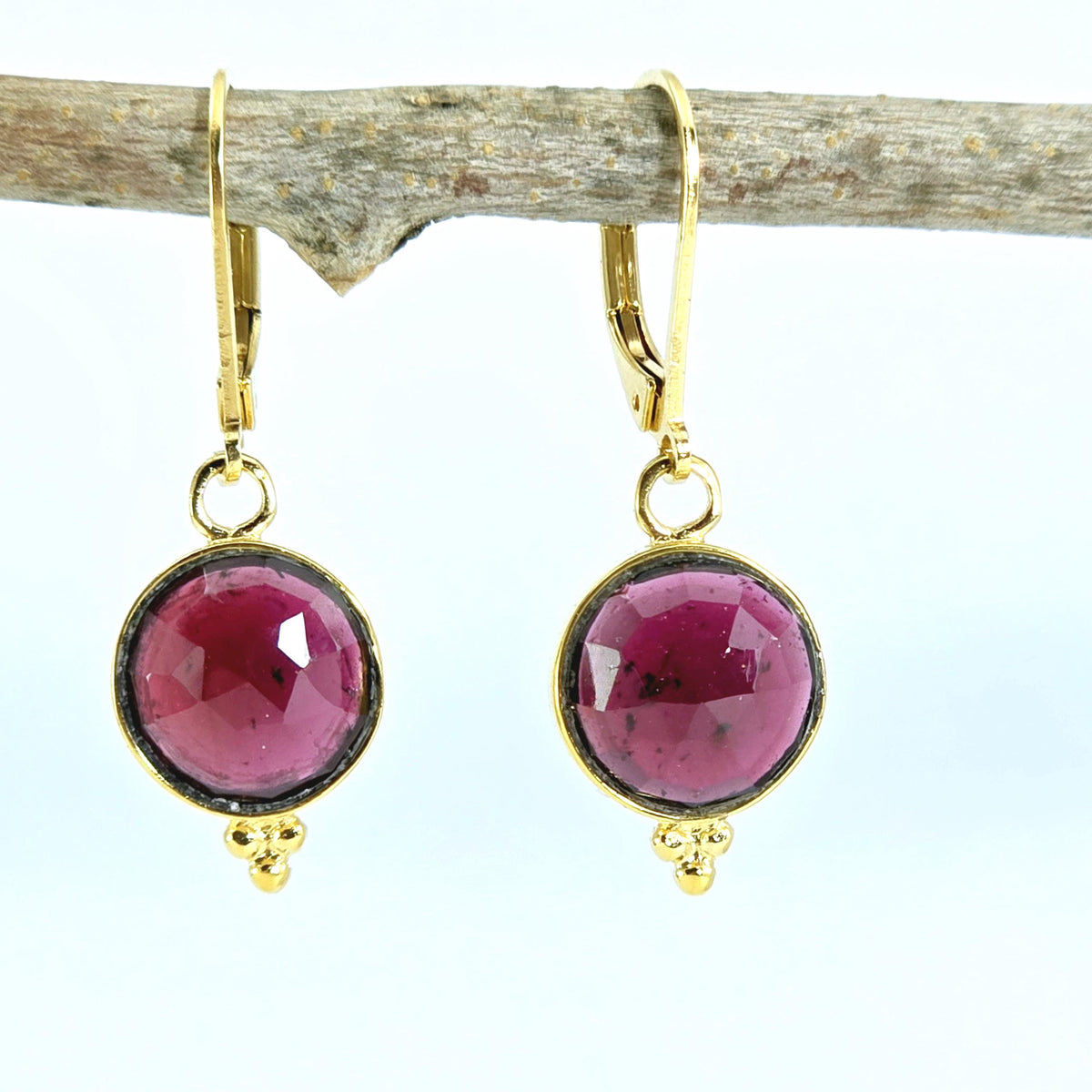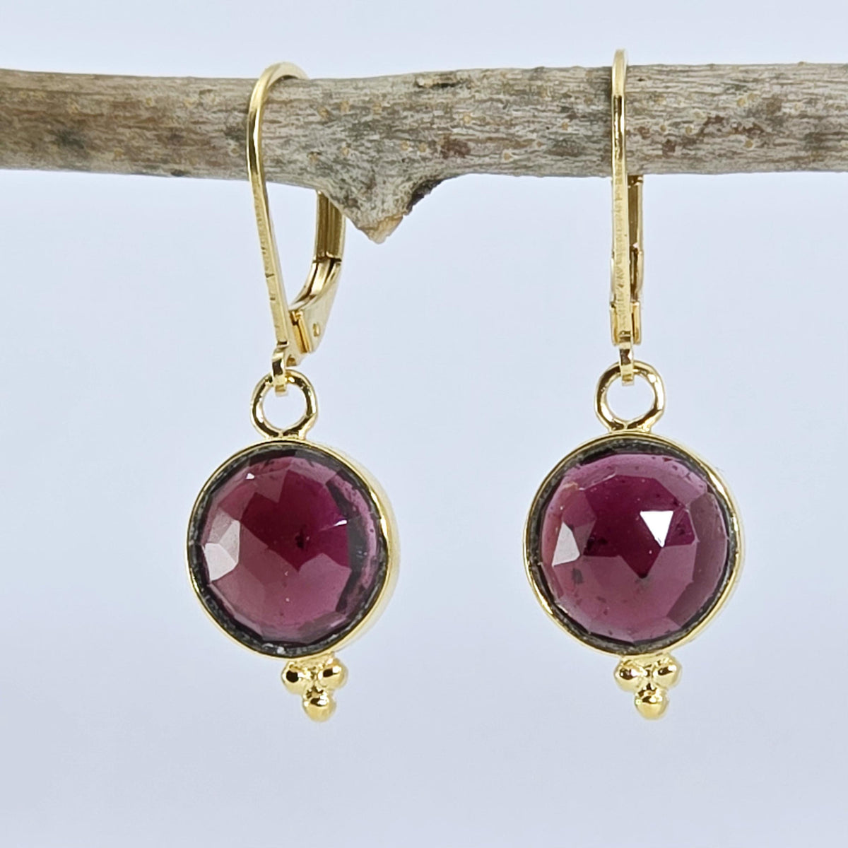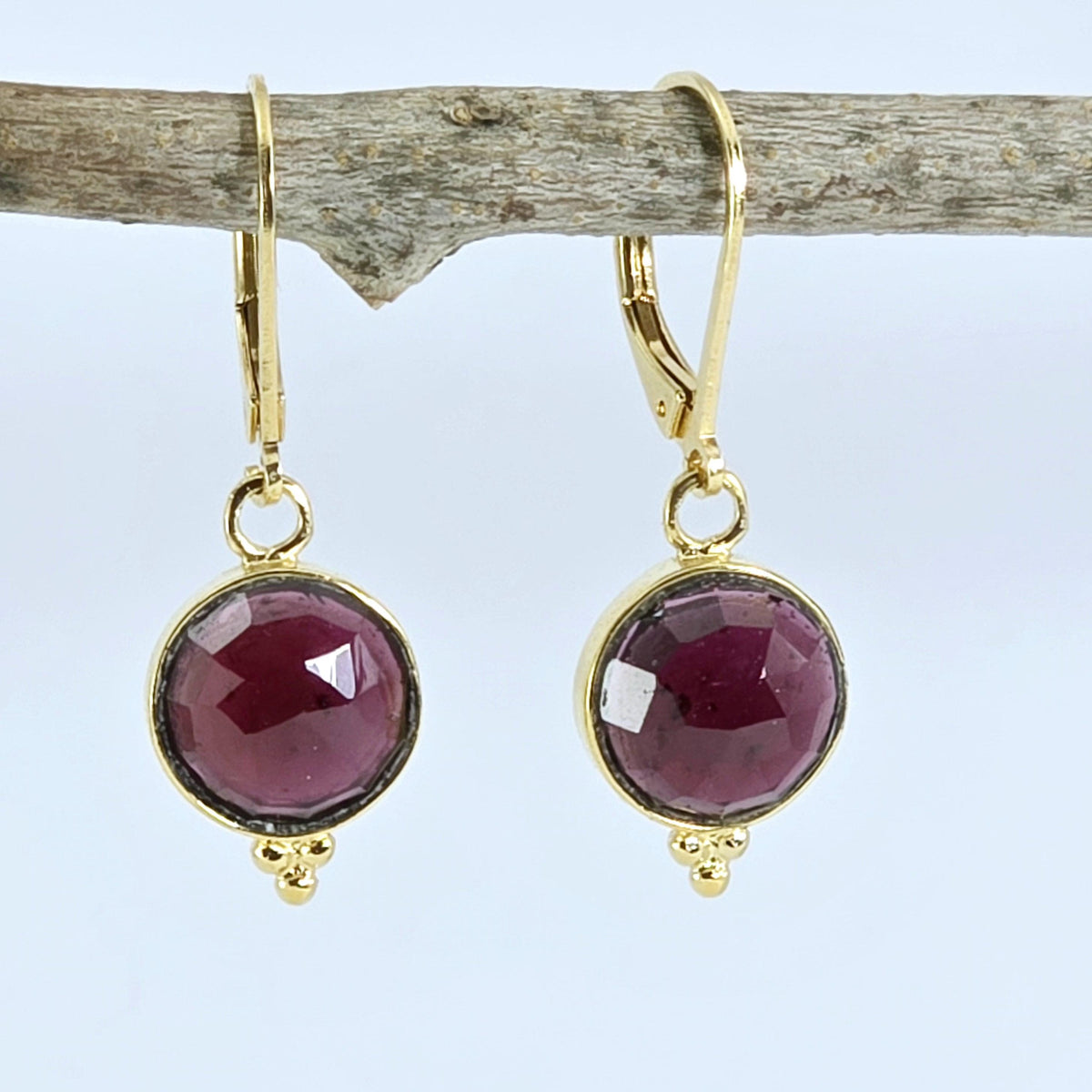 עגילים עגולים משובצים גרנט ציפוי זהב
