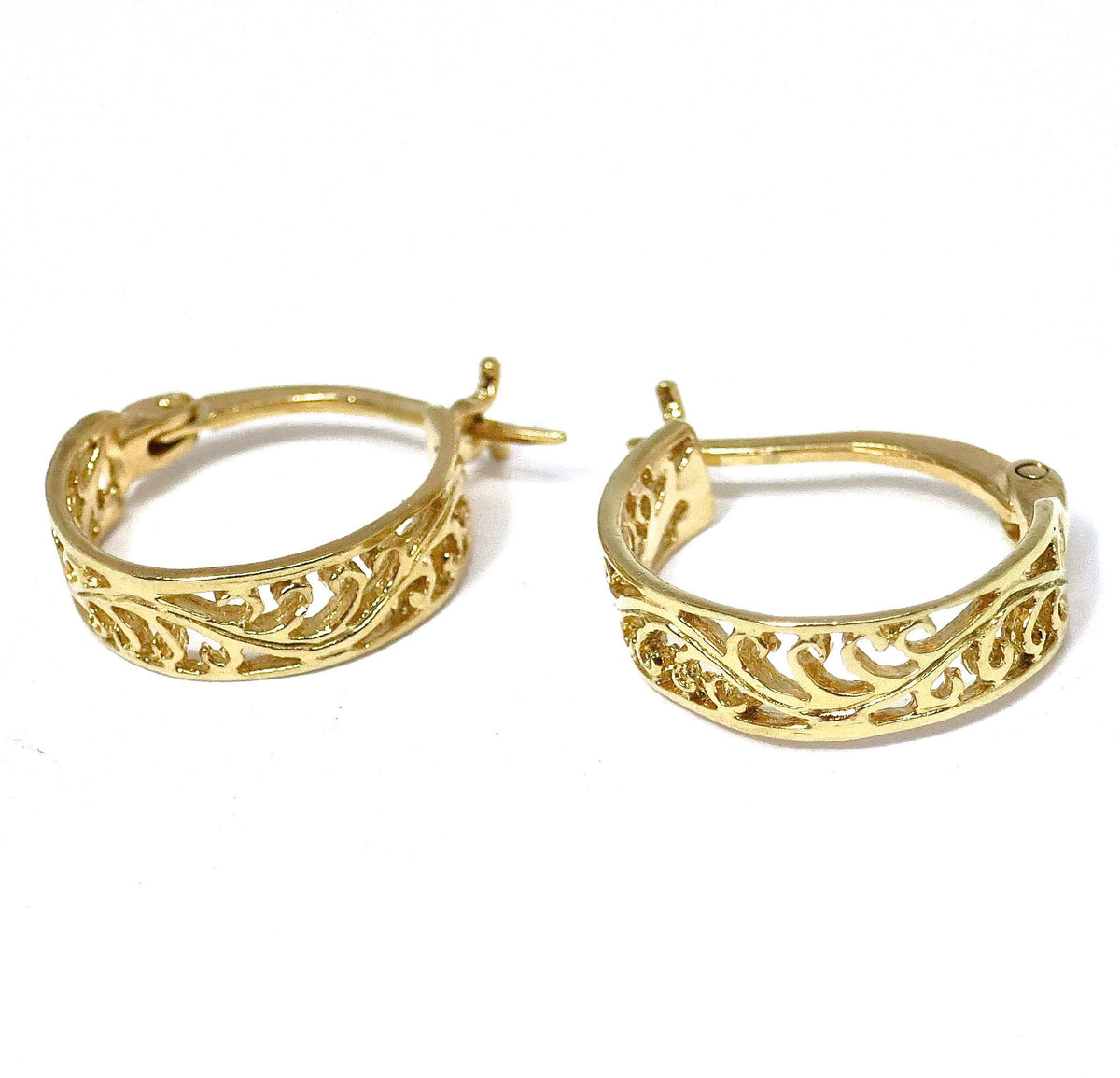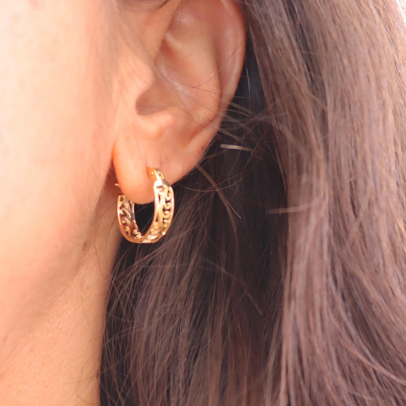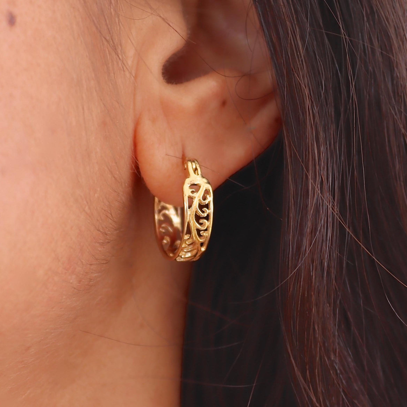 עגילי חישוק קטנים פיליגרן בציפוי זהב