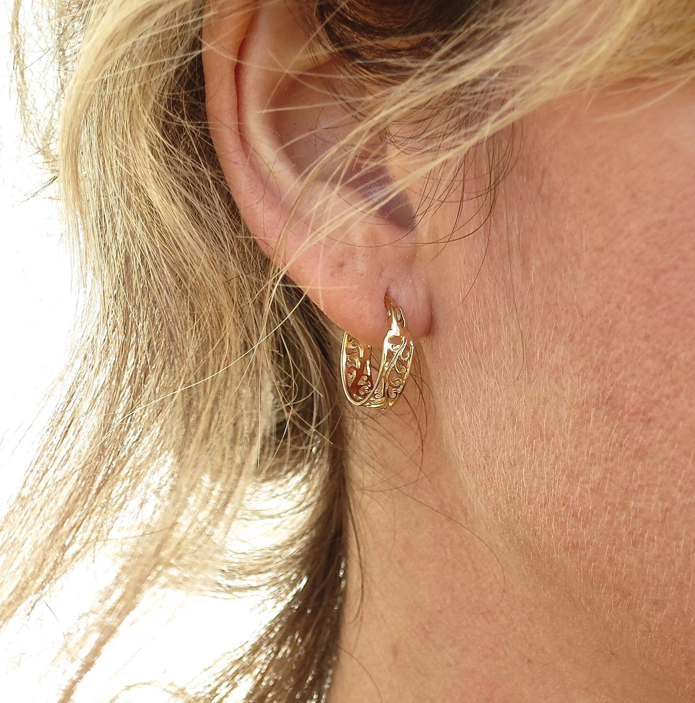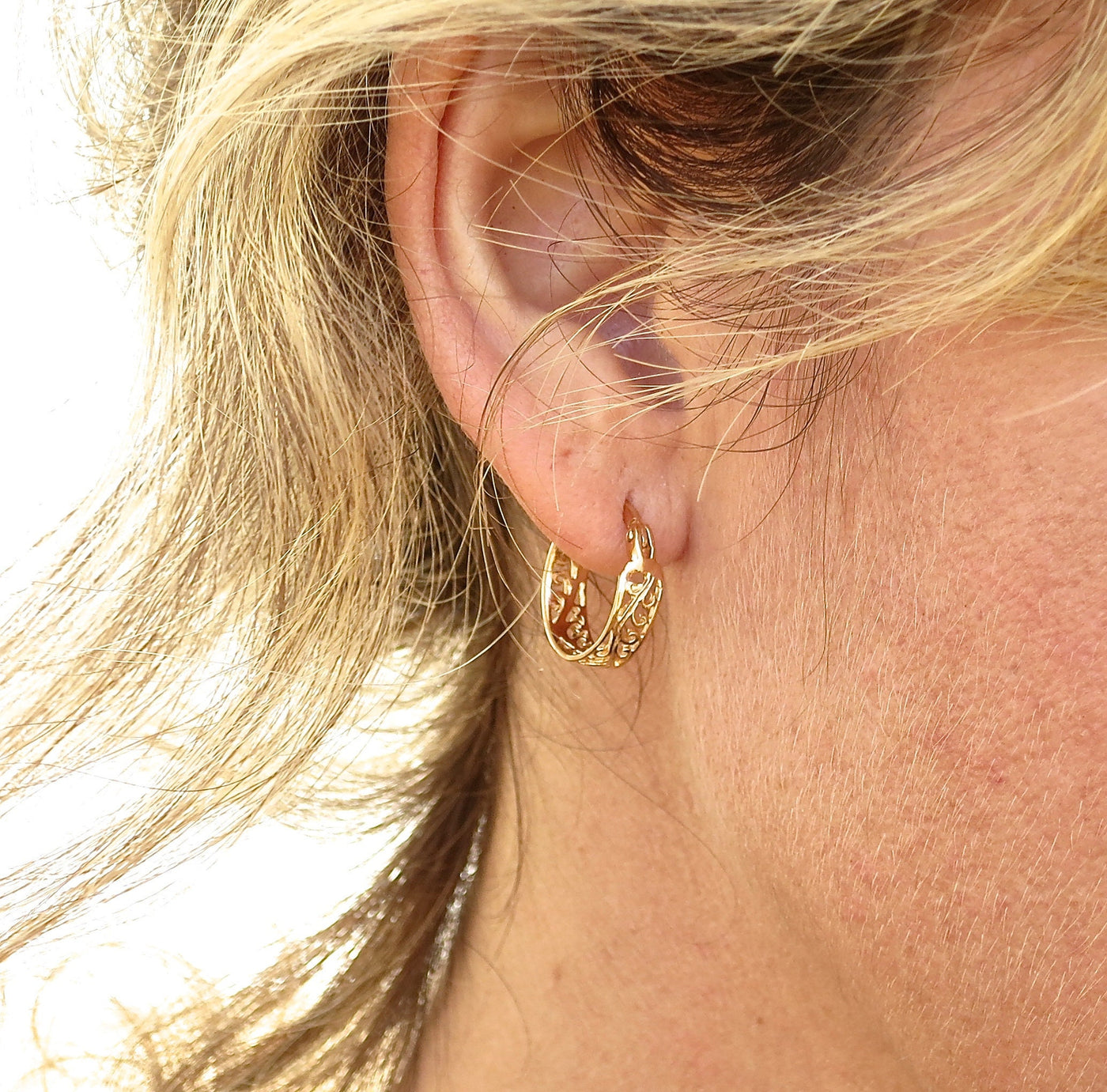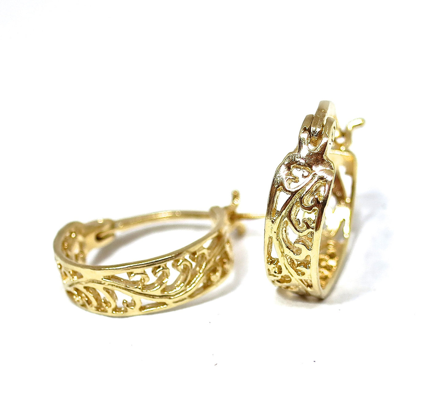 עגילי חישוק קטנים פיליגרן בציפוי זהב