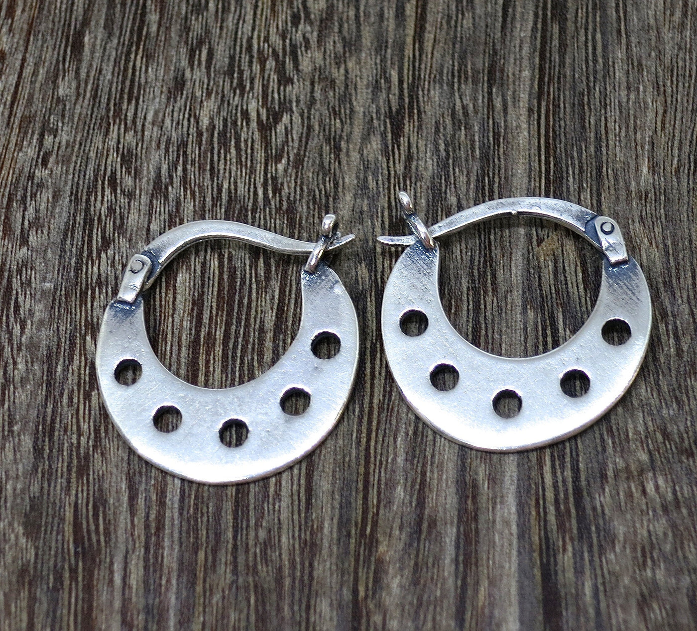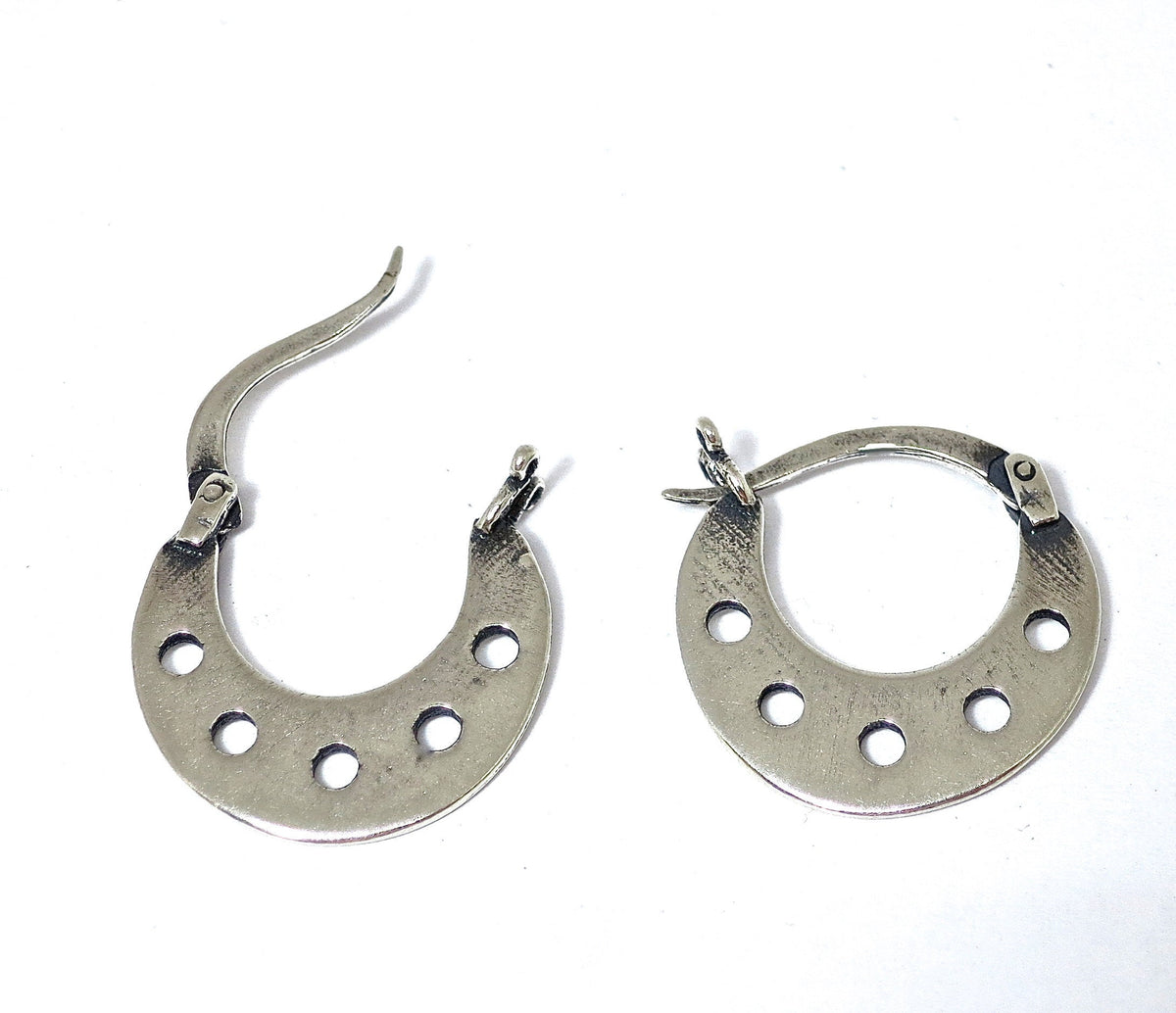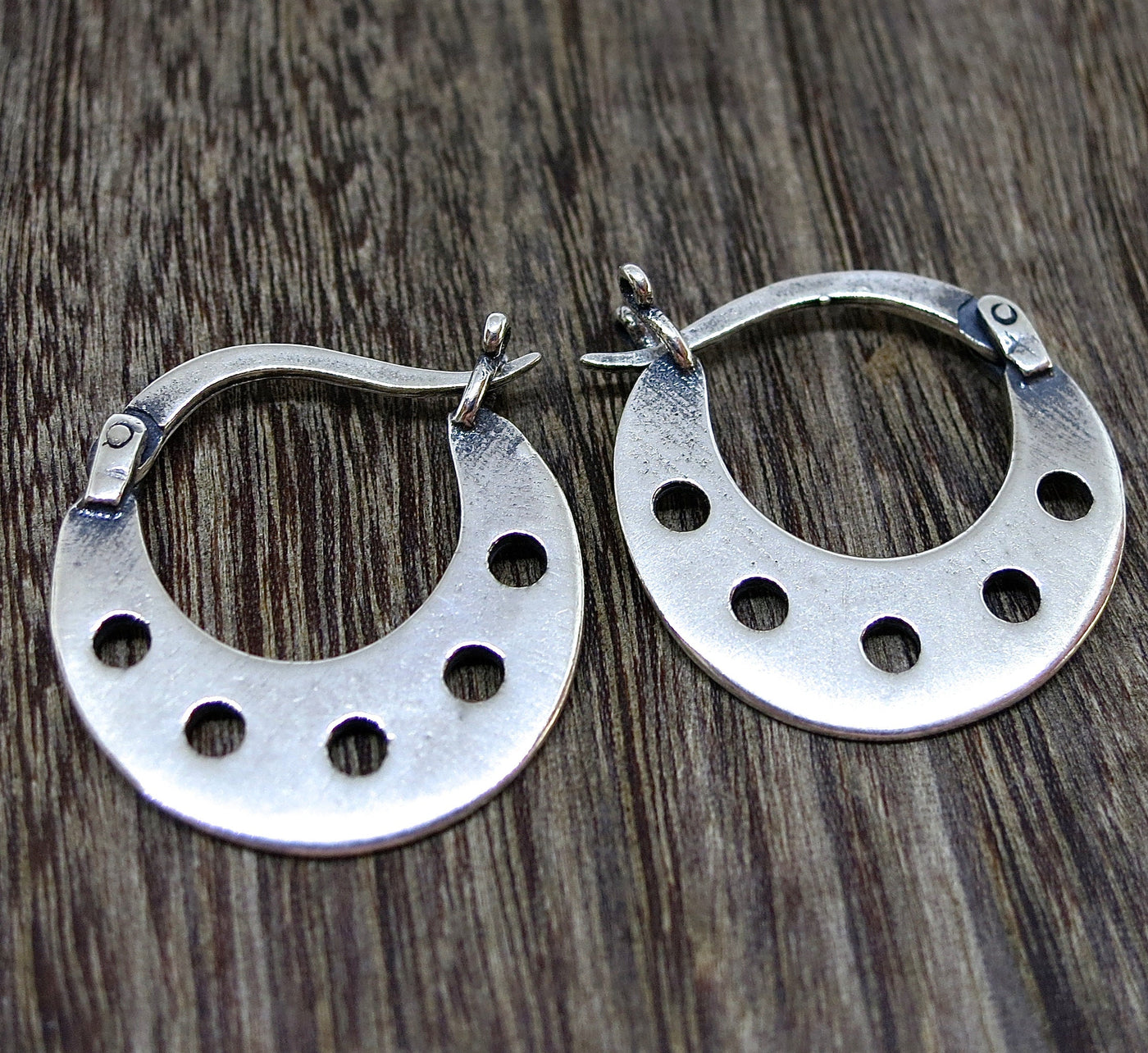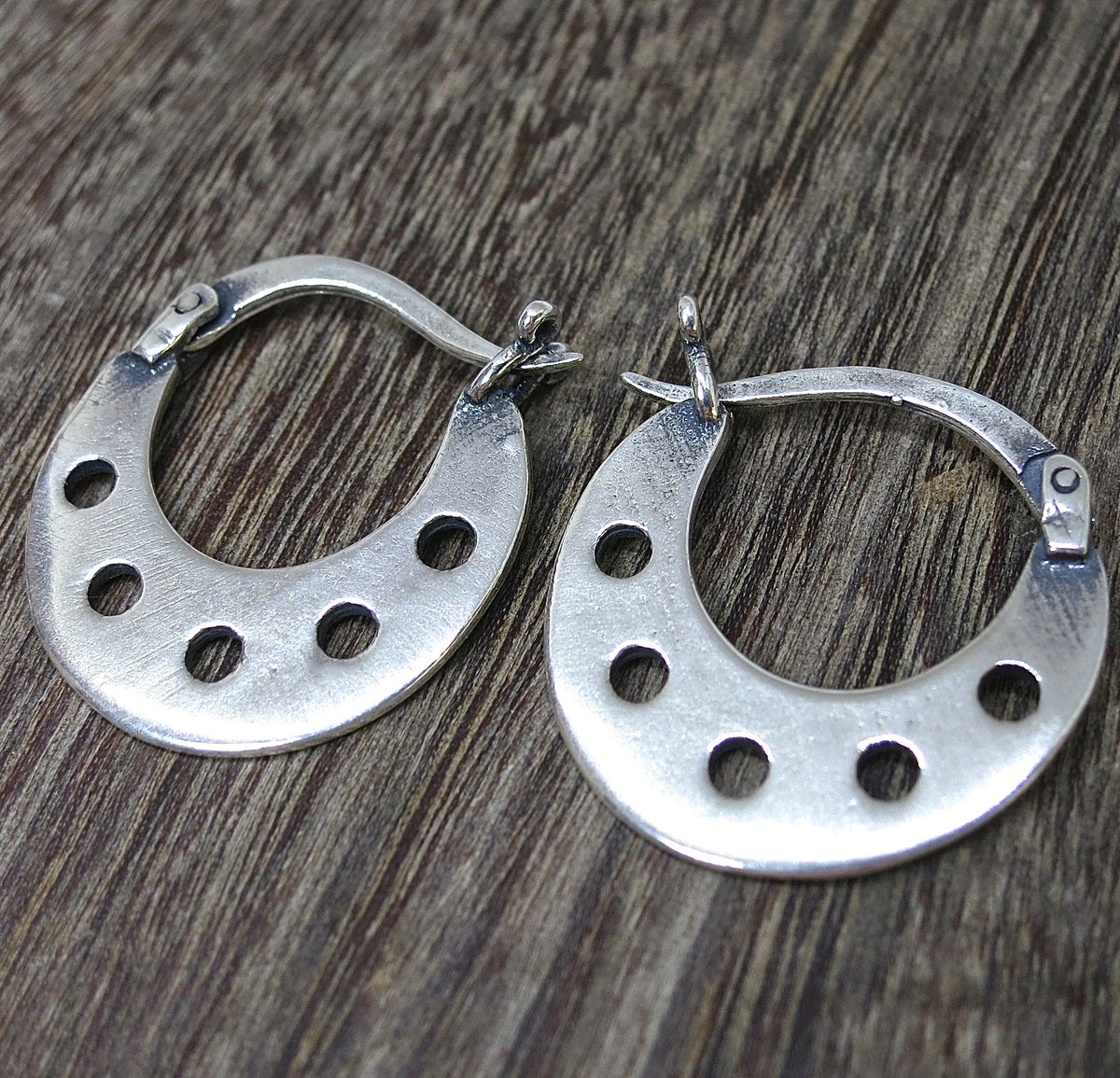 עגילי חישוק ייחודיים מכסף סטרלינג, סגירה נהדרת לענידה קלה בסגנון בוהו.