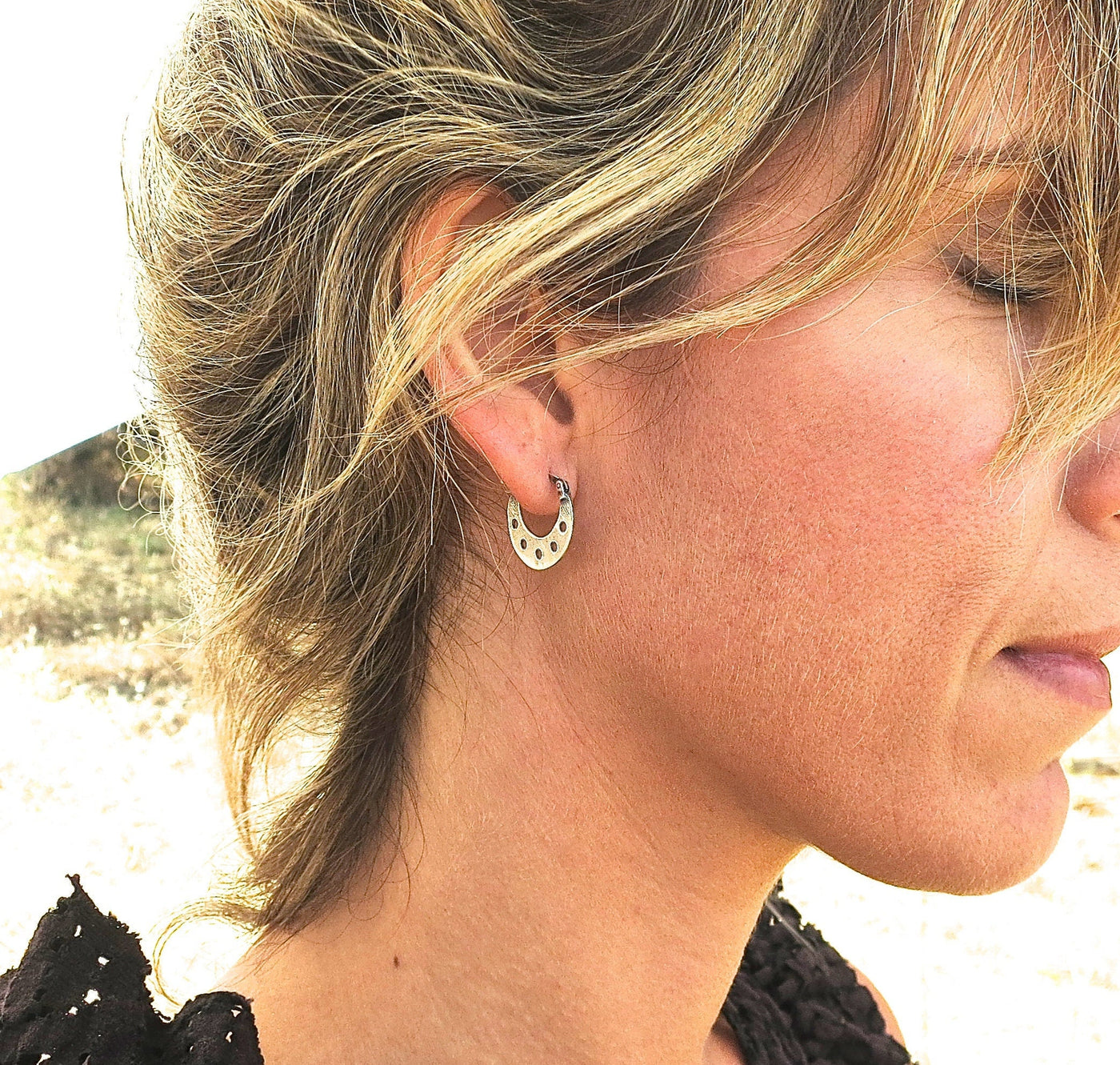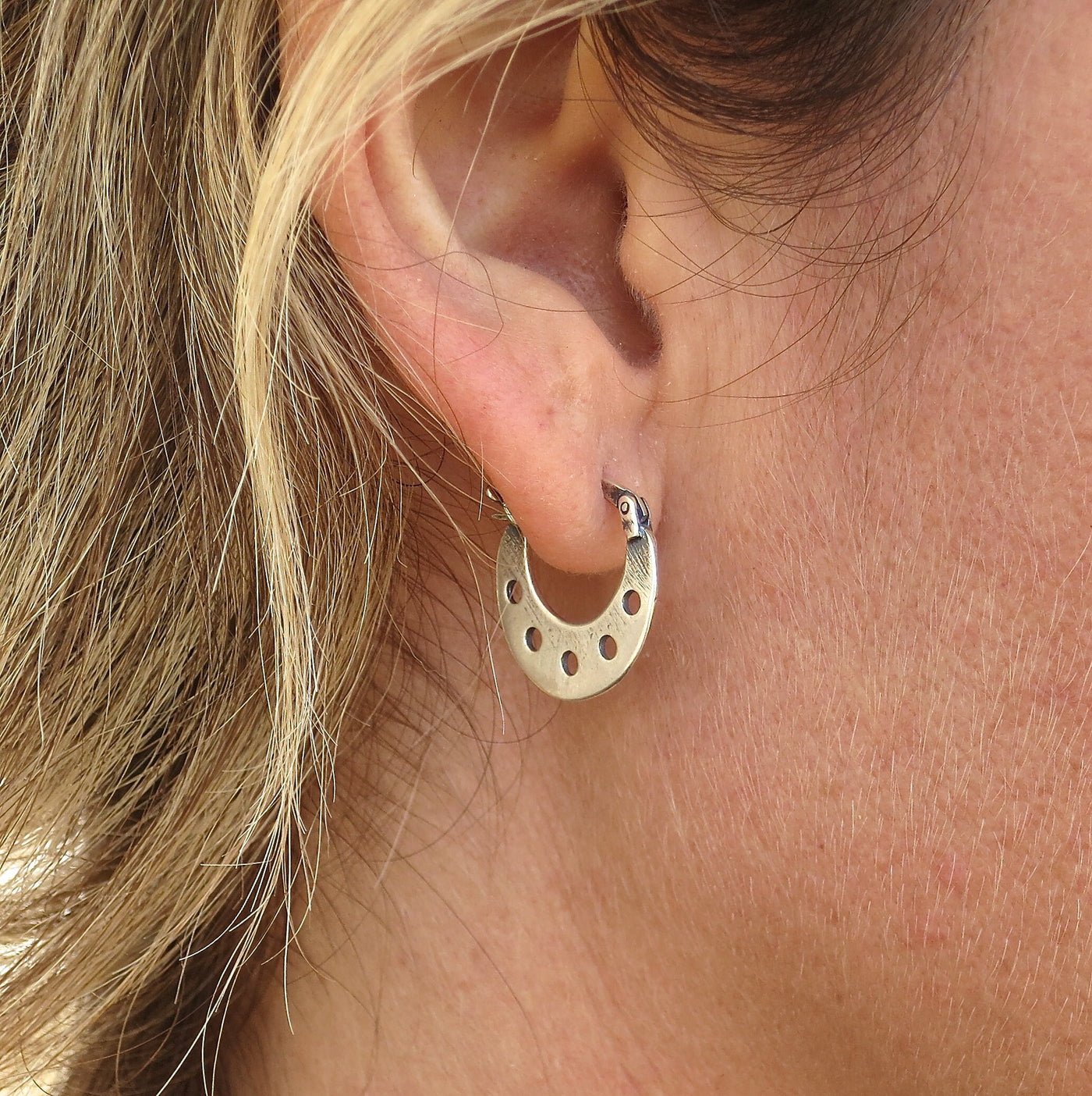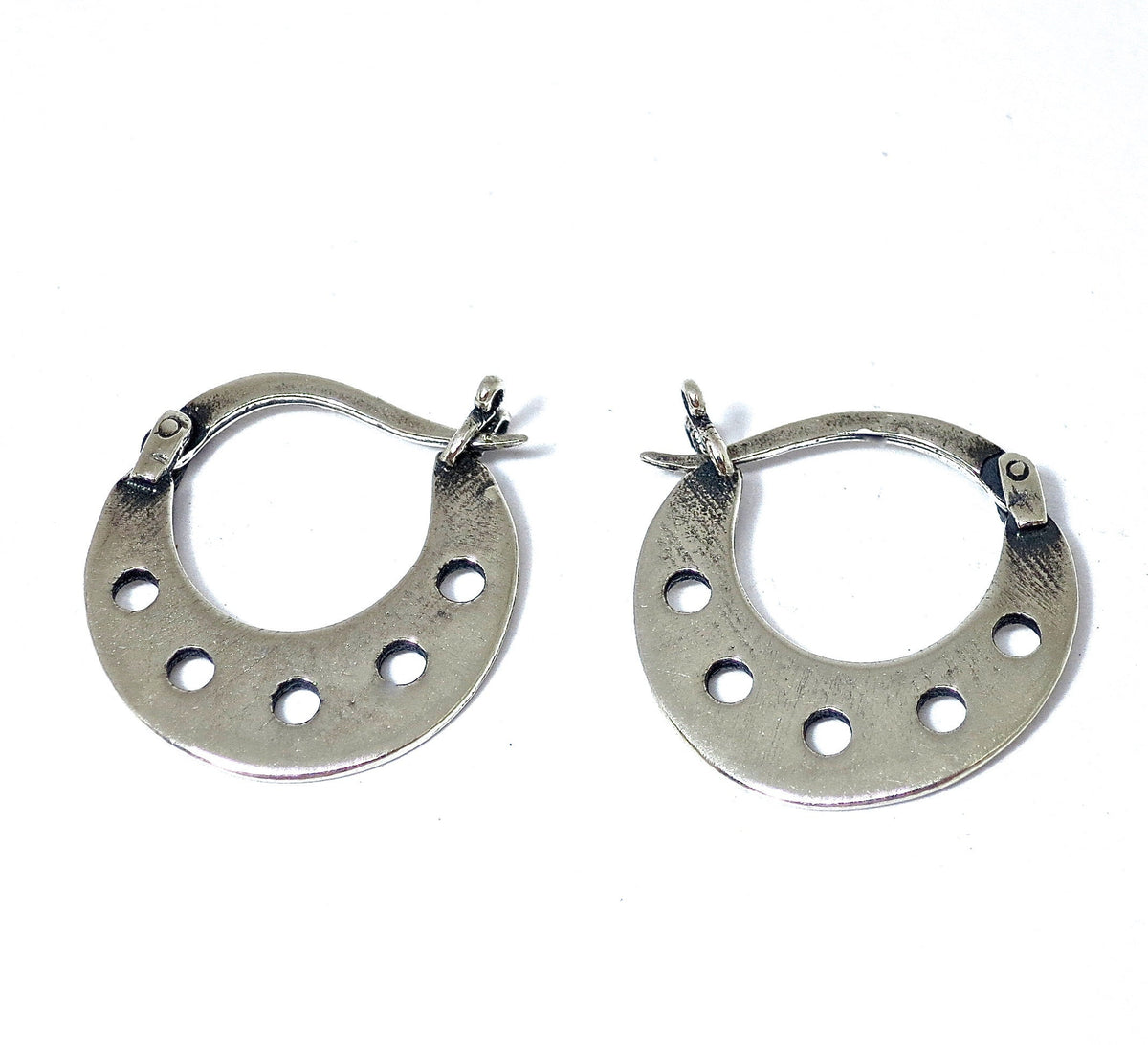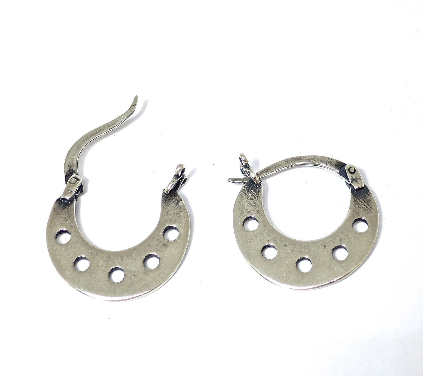 עגילי חישוק ייחודיים מכסף סטרלינג, סגירה נהדרת לענידה קלה בסגנון בוהו.