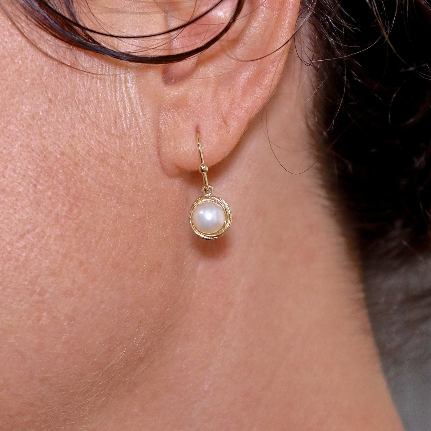 הוסיפו נופך של אלגנטיות לסגנון שלכם עם עגילי פנינה זהב מלא 14 קראט מעודנים אלה. עגילים פשוטים אך מתוחכמים אלה, המעוצבים עם פנינים לבנות קטנות, מושלמים לכל אירוע