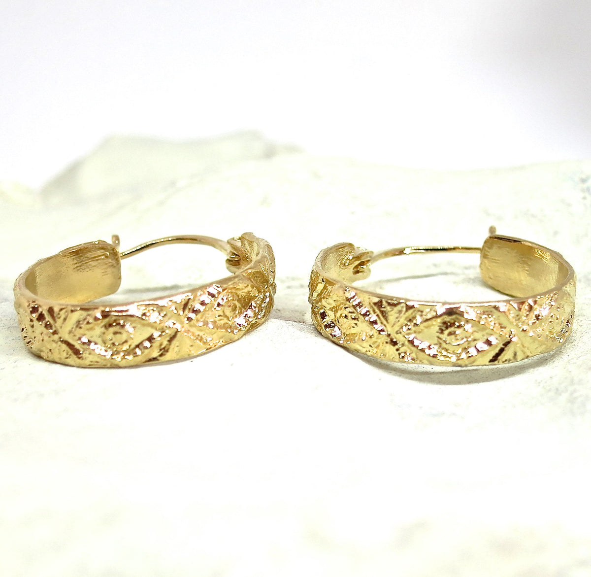 עגילי חישוק רחבים ציפוי זהב בוהמיים