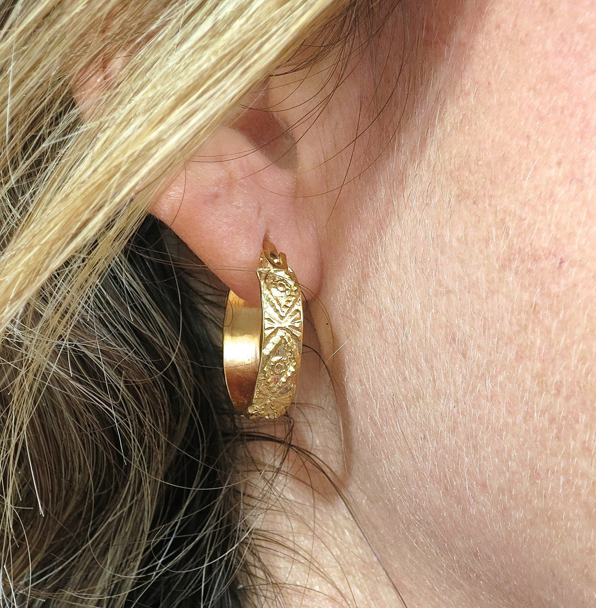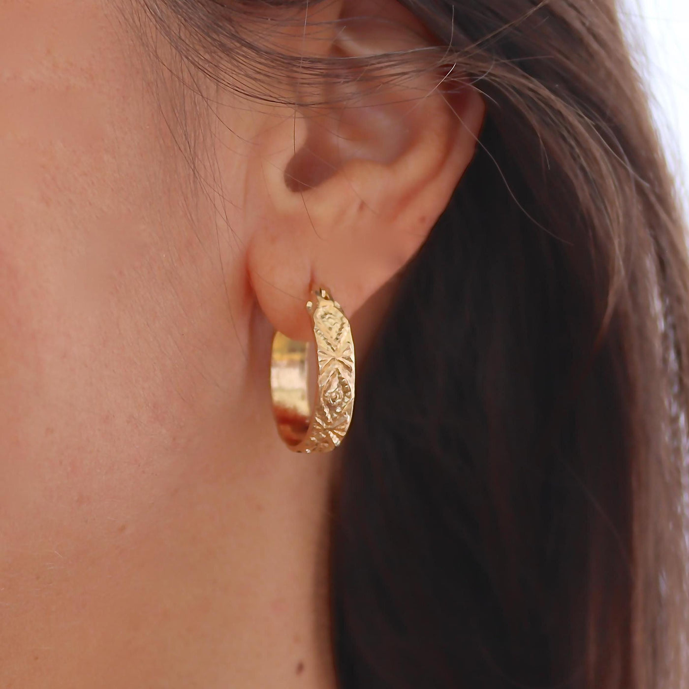 עגילי חישוק בוהו, עגילי חישוק רחבים מזהב, חישוקים דקורטיביים, עגילי חישוק צוענים, תכשיטים יומיומיים.