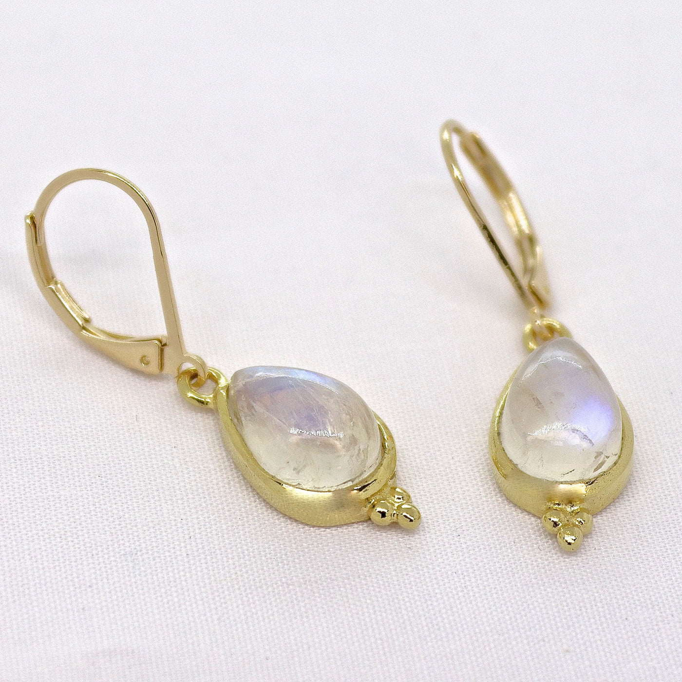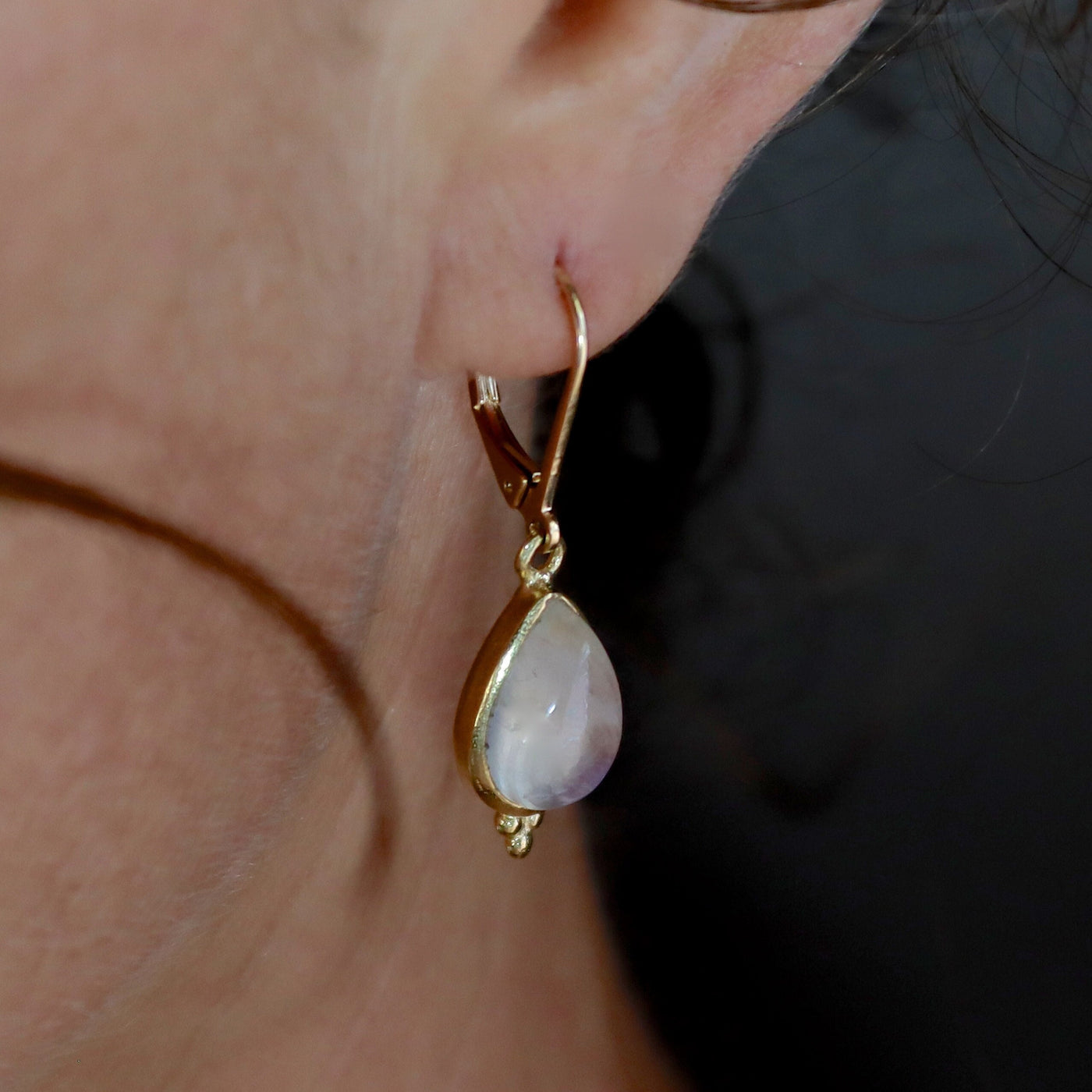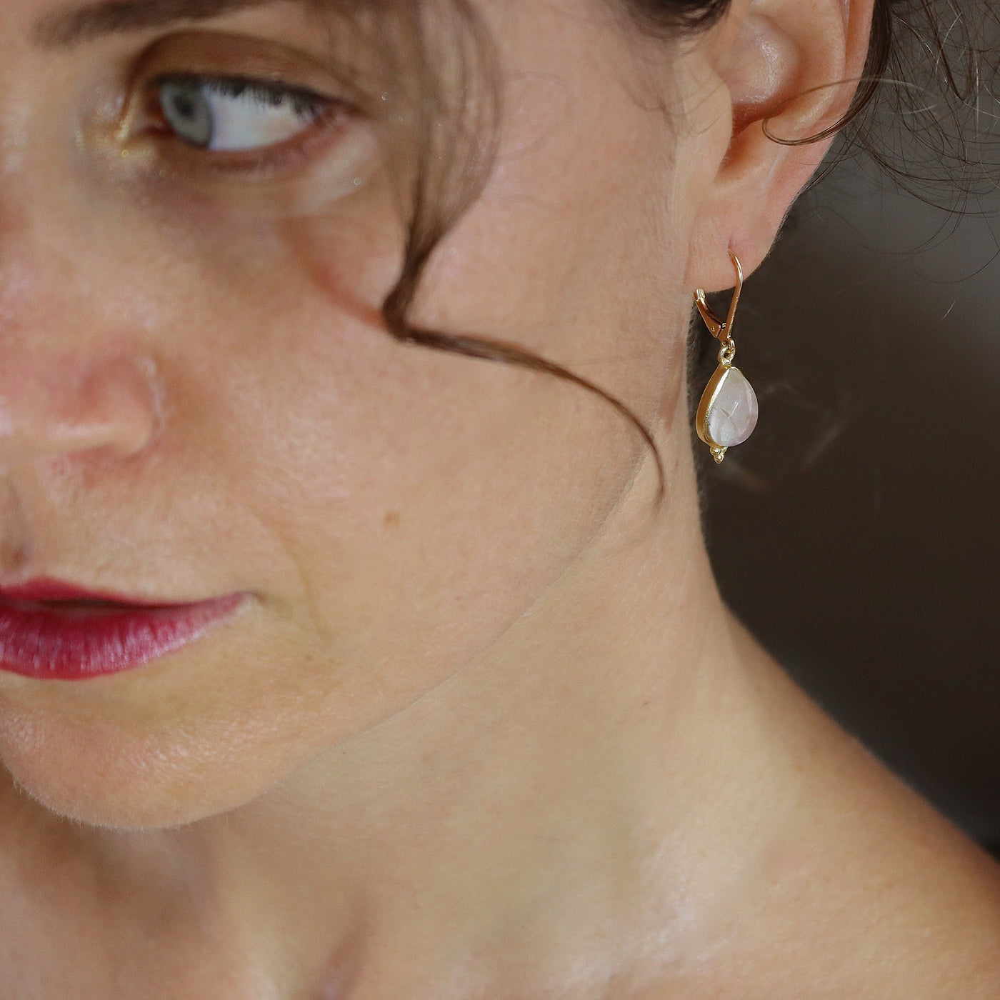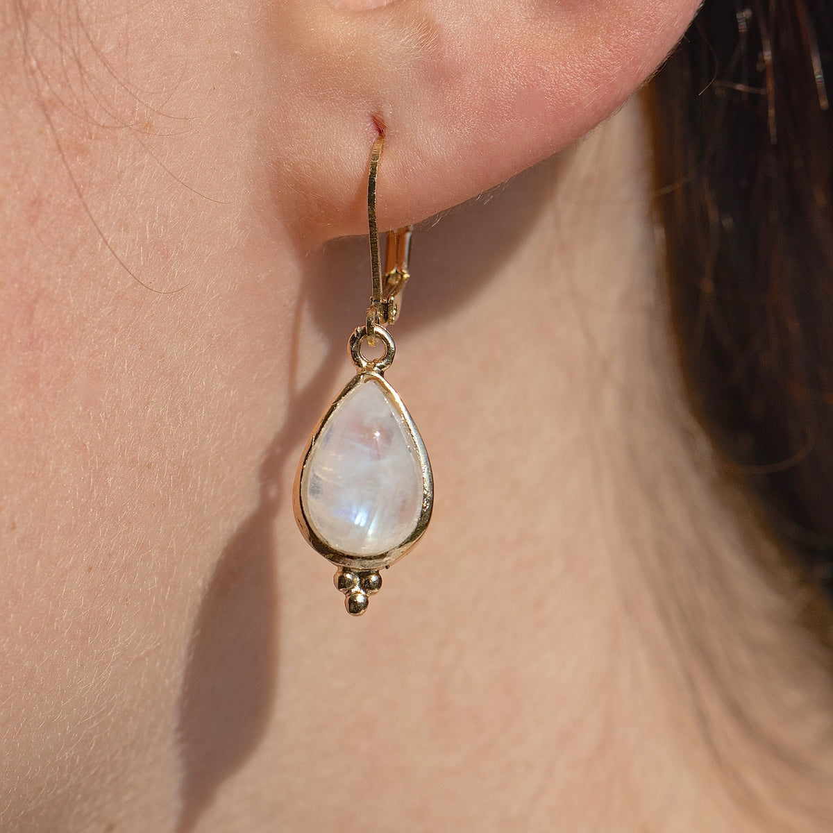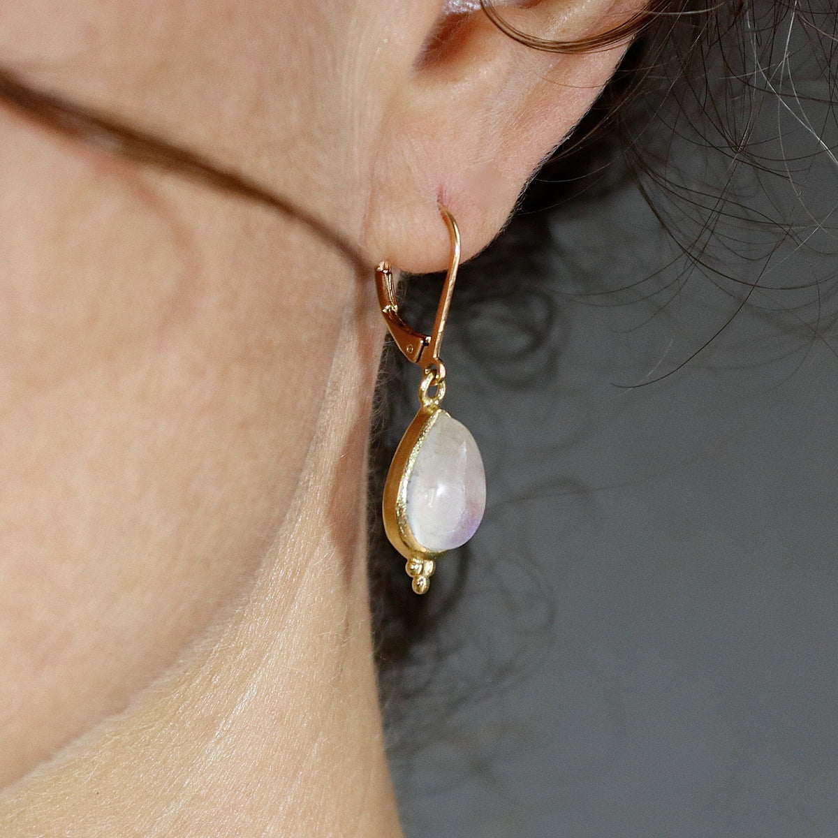 עגילי זהב טיפה תלויים עם אבן מונסטון
