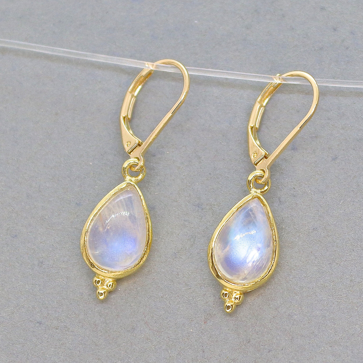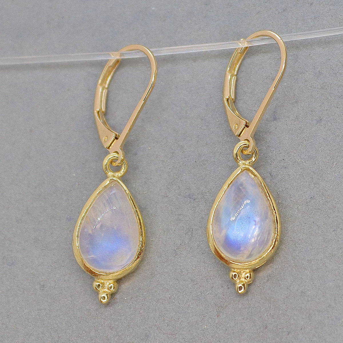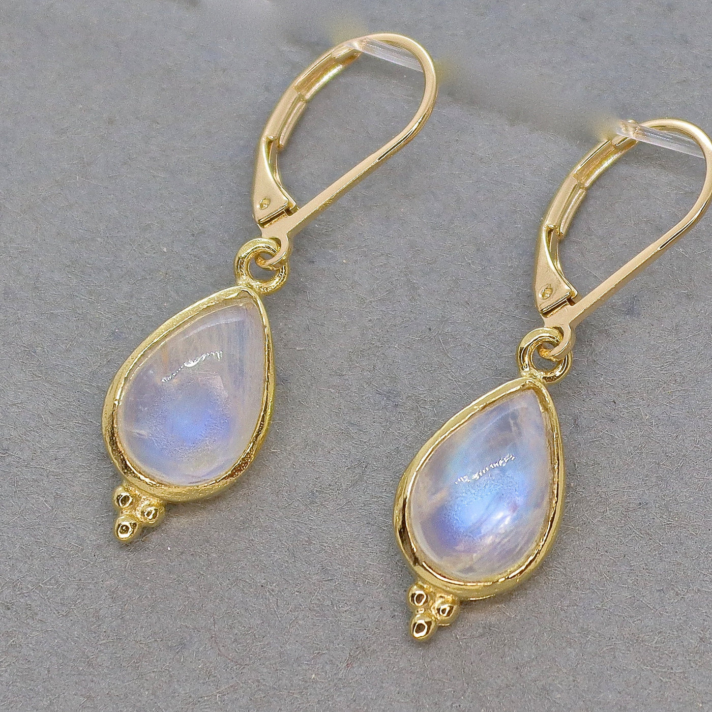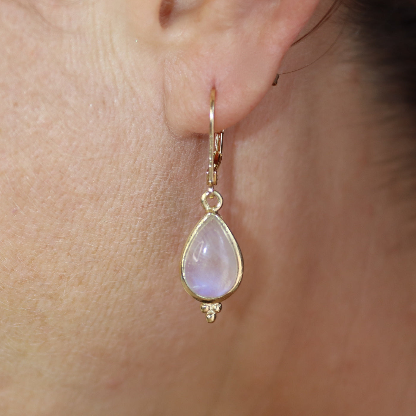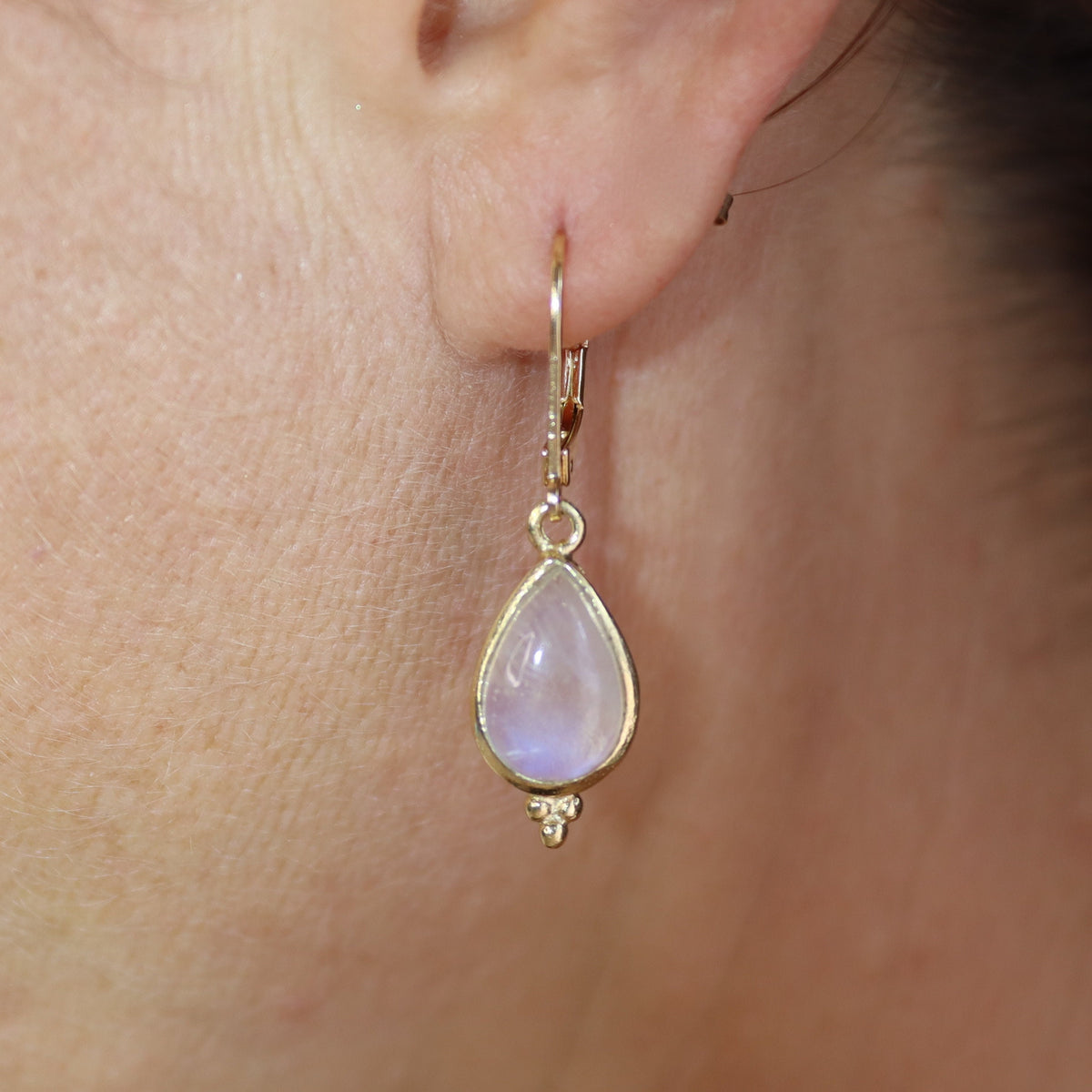 עגילי זהב טיפה תלויים עם אבן מונסטון
