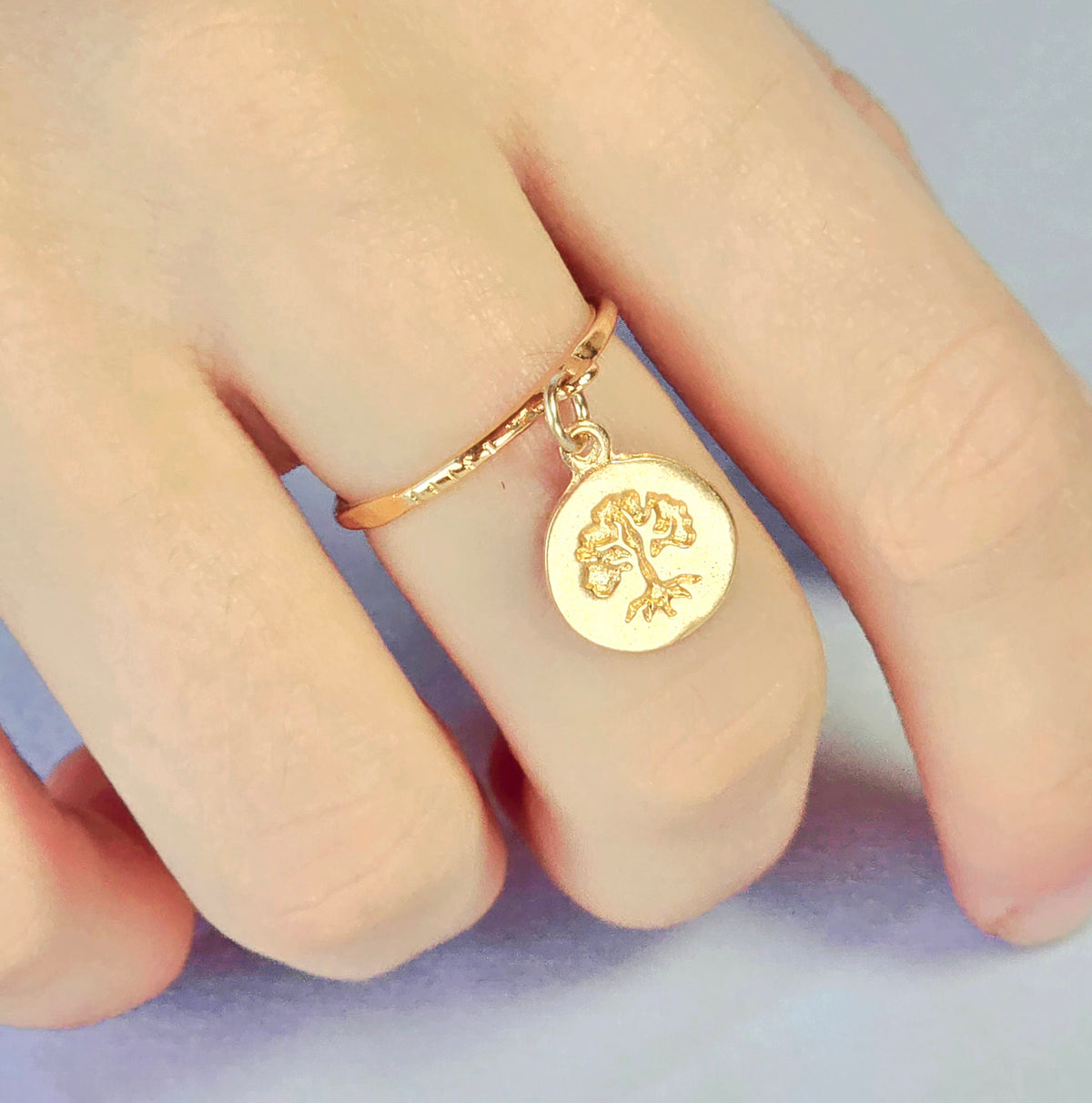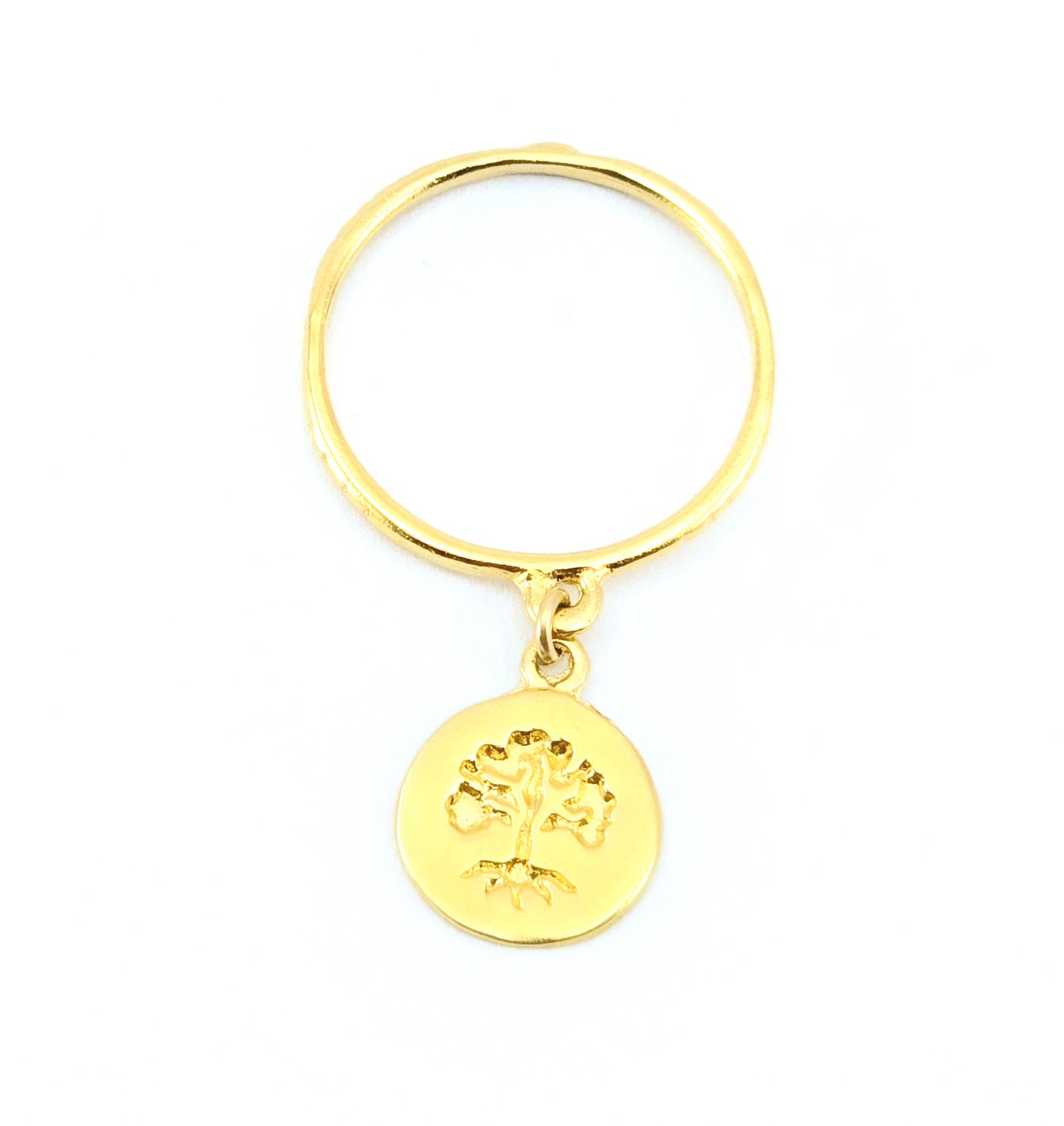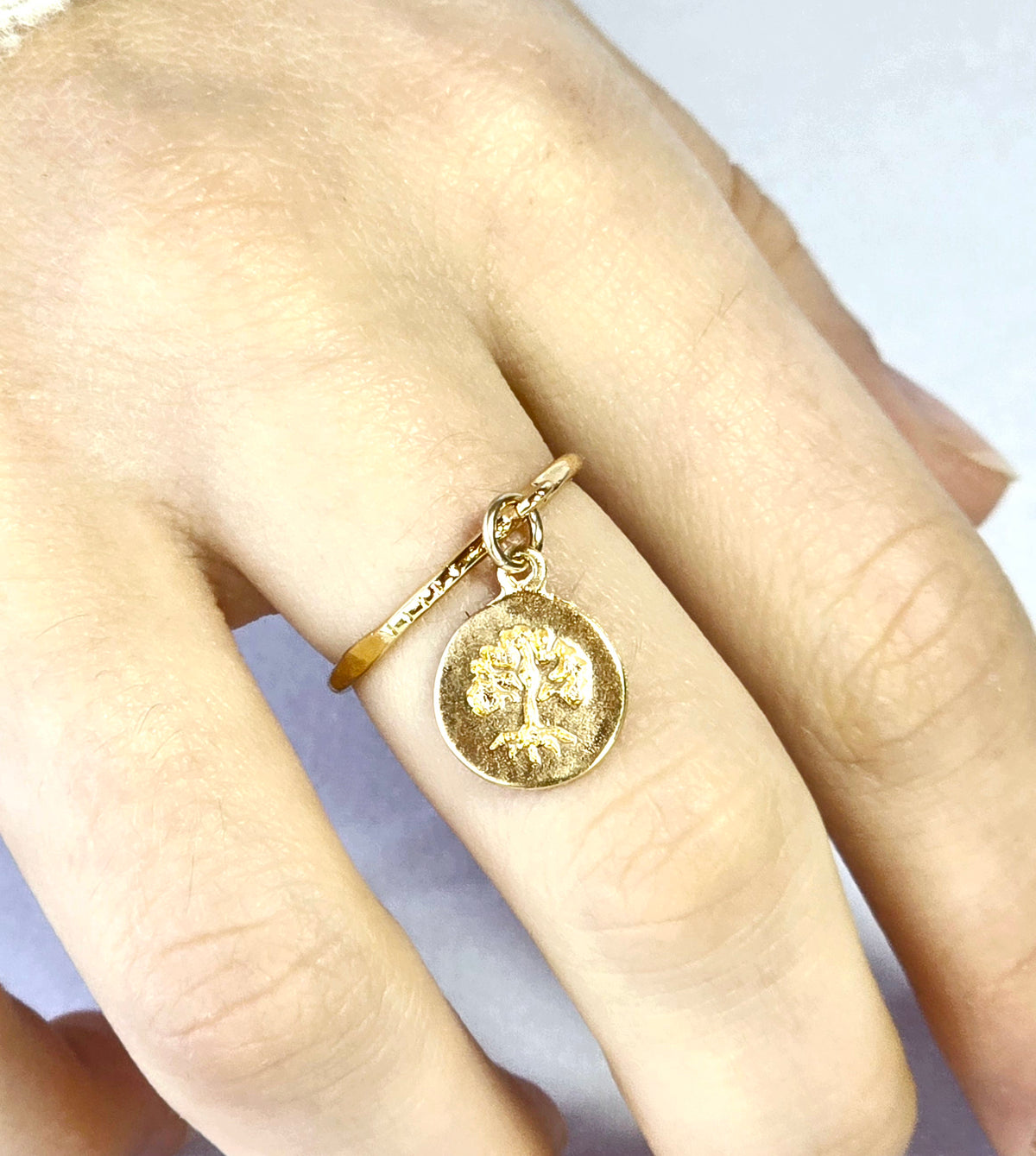 טבעת עדינה עם צ'ארם עץ החיים מזהב