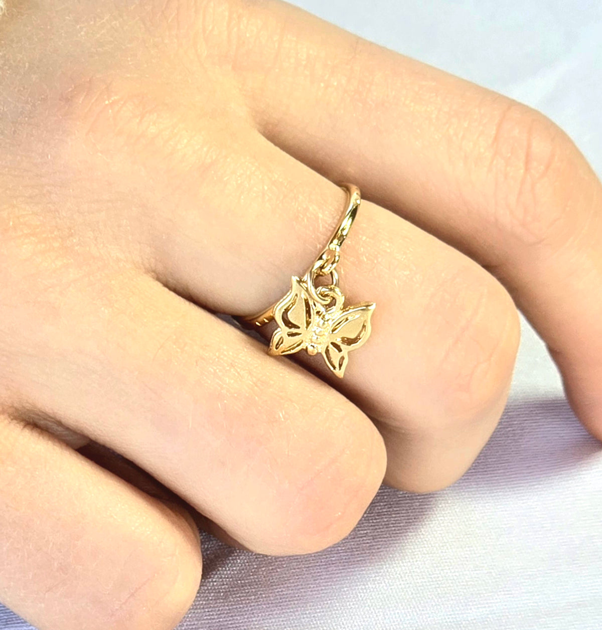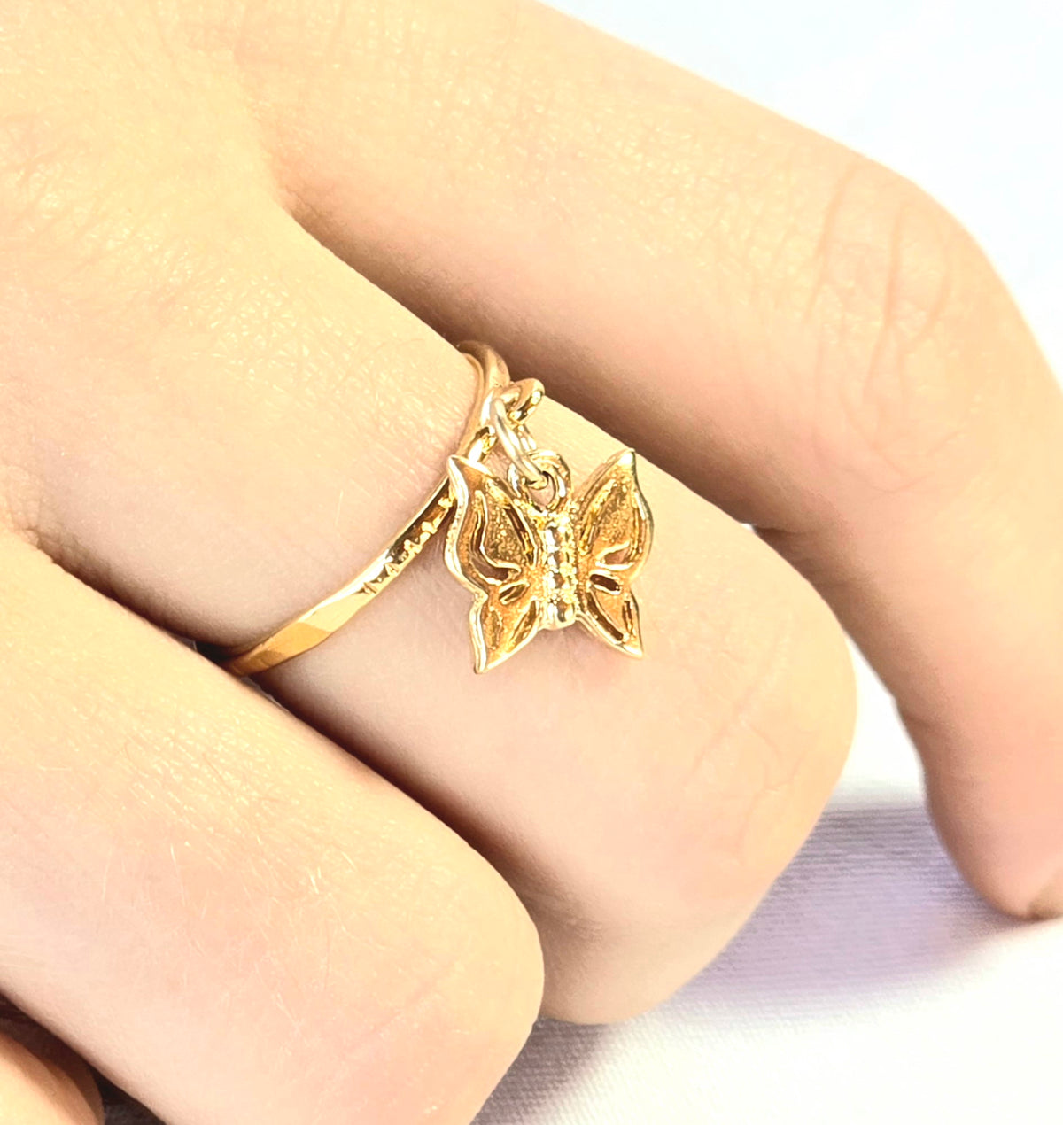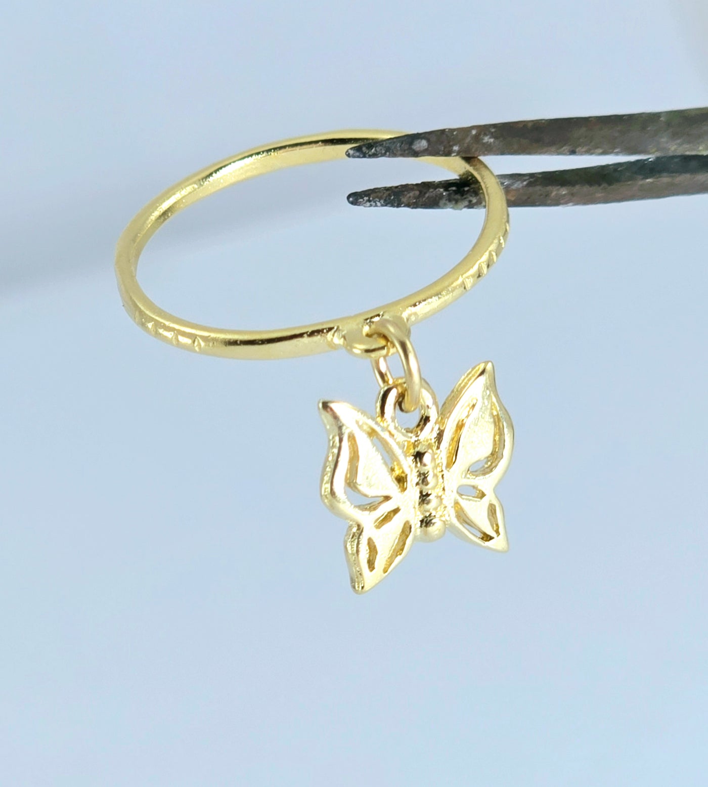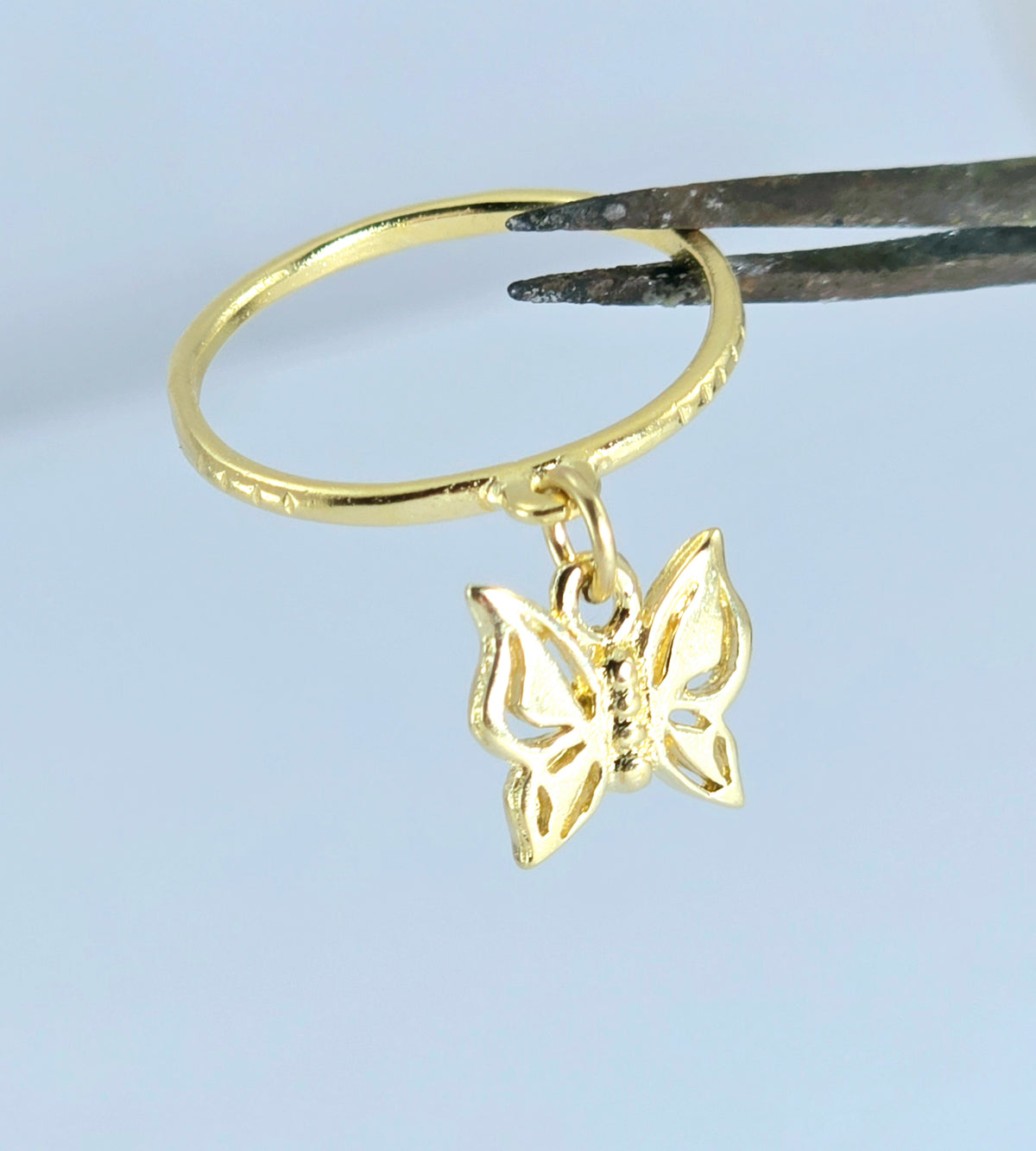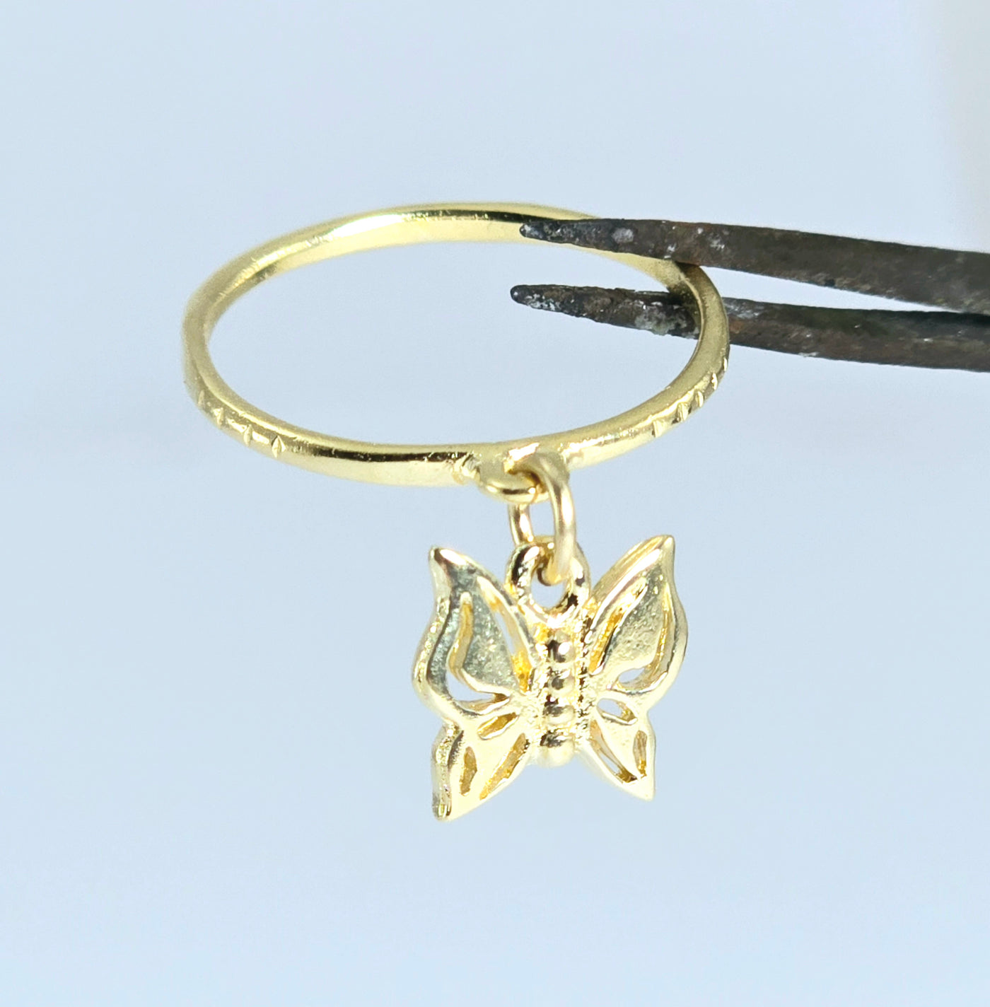 טבעת עדינה עם צ'ארם פרפר מציפוי זהב