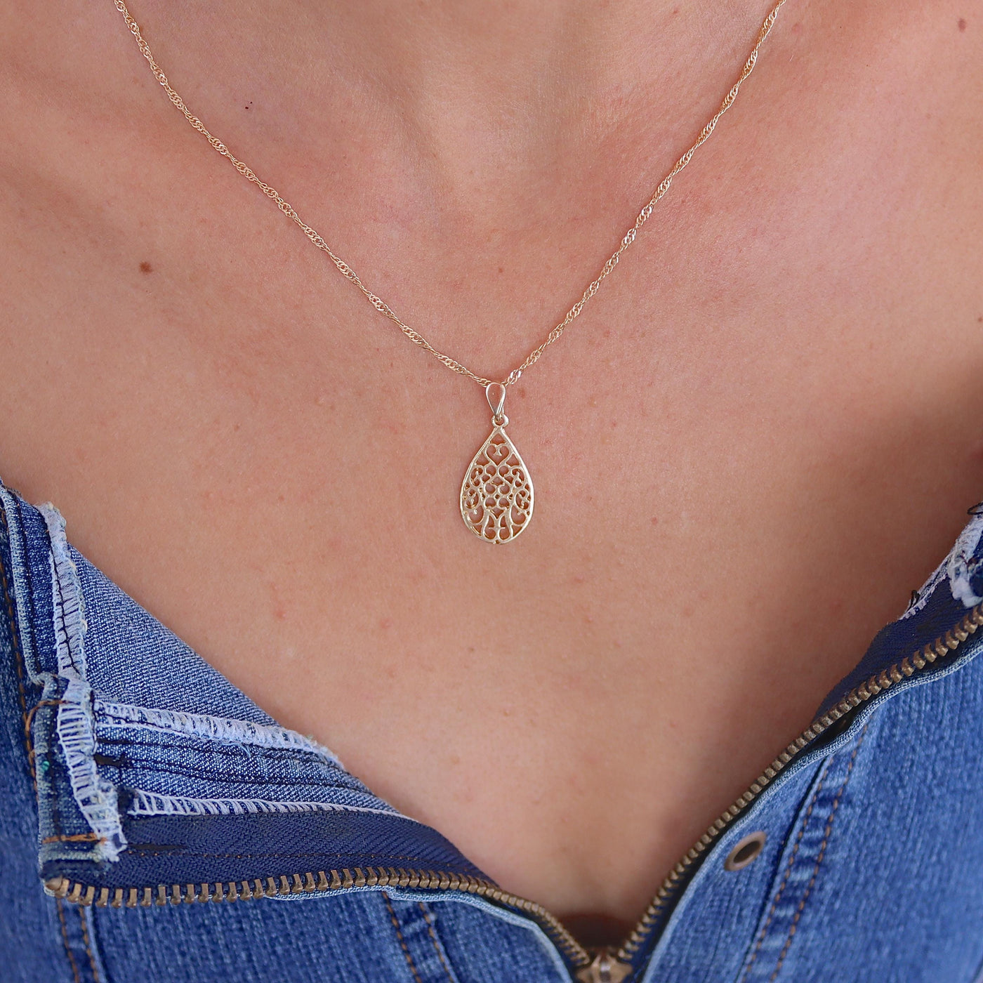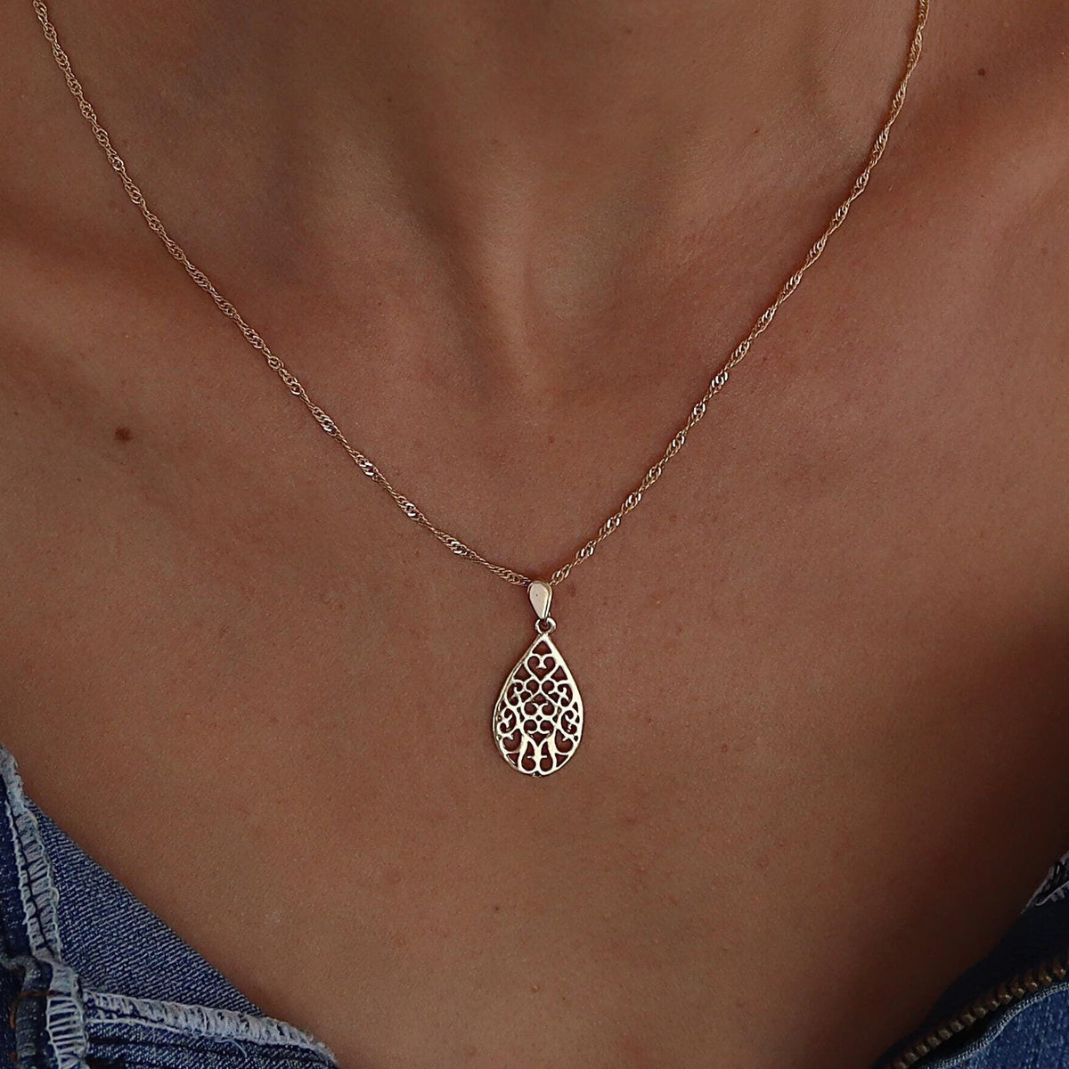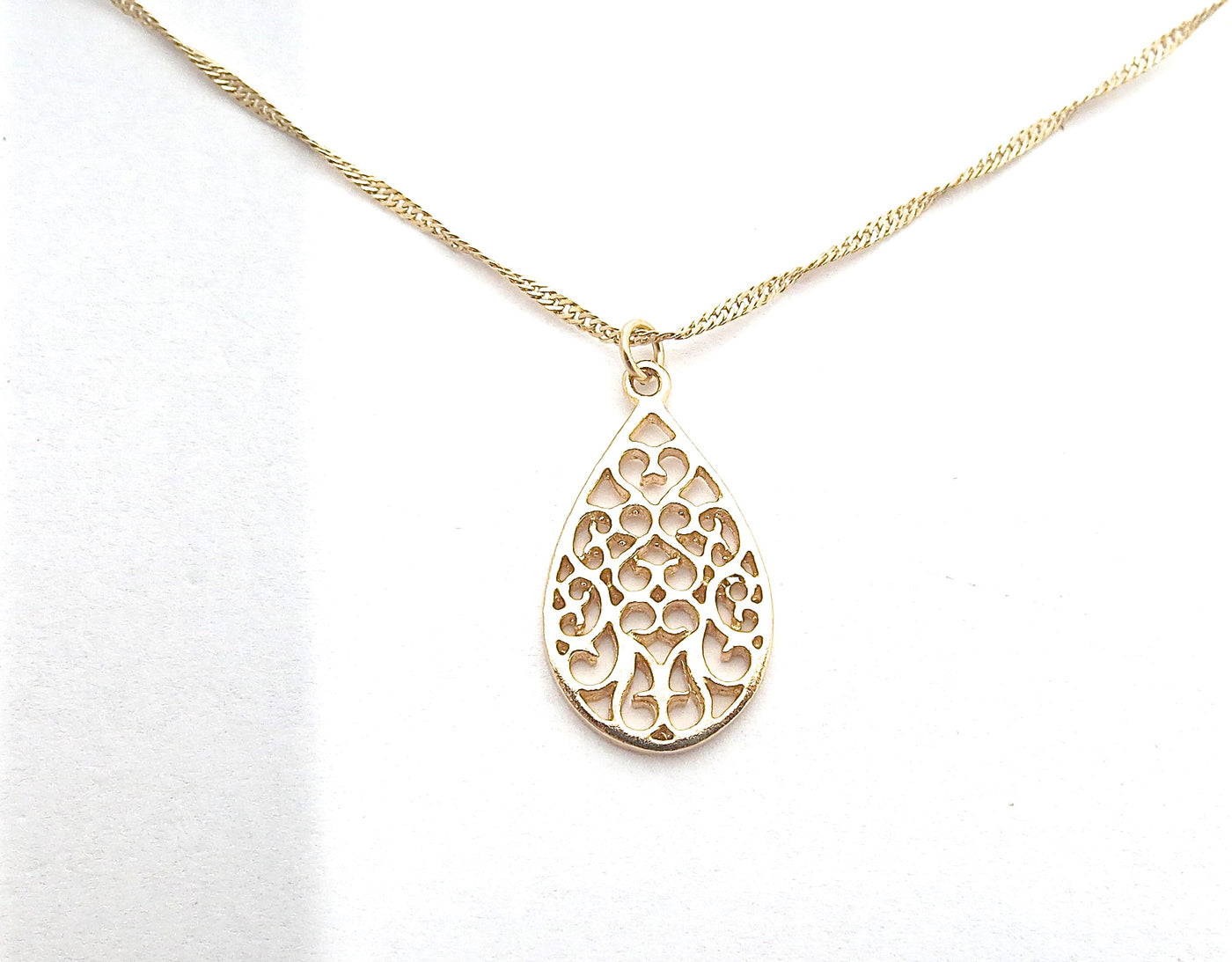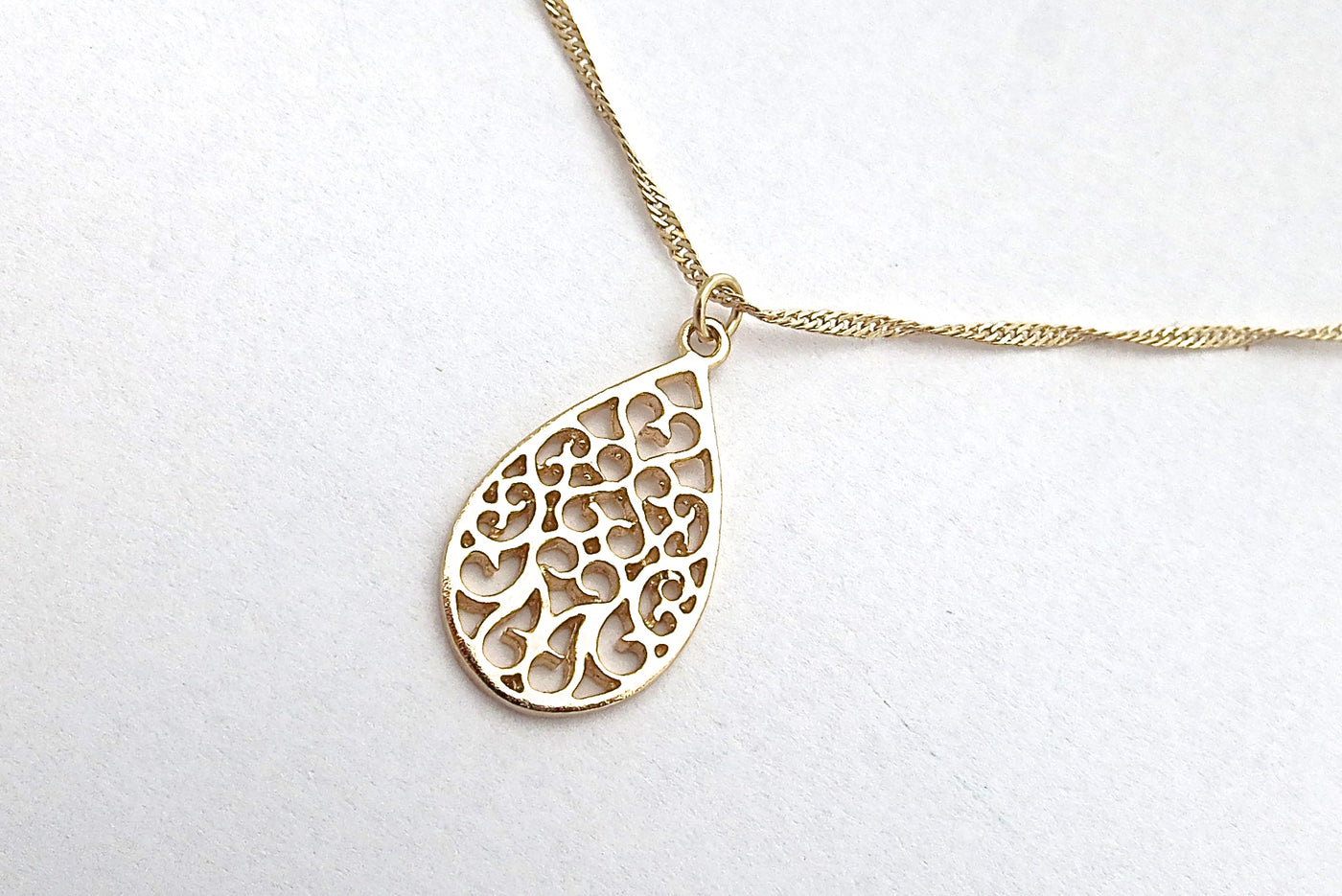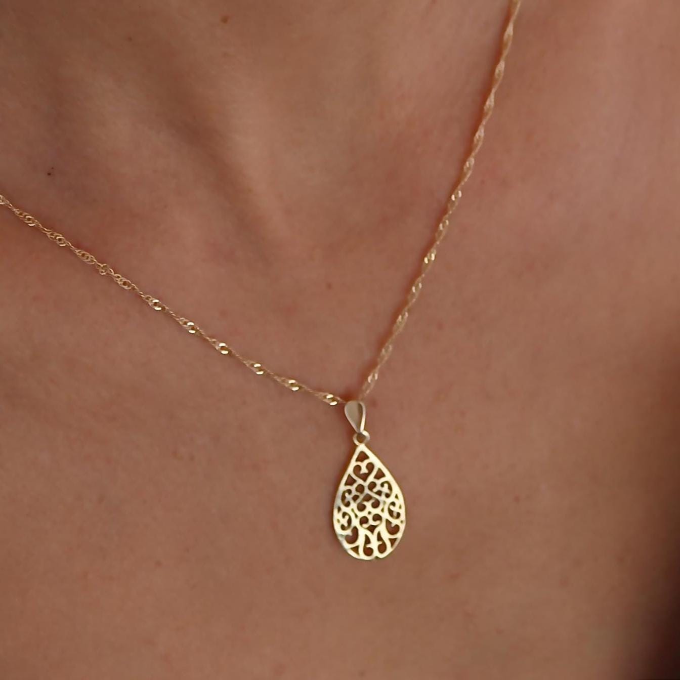 שרשרת תליון טיפה פיליגרן בסגנון ויקטוריאני מזהב 14 קראט