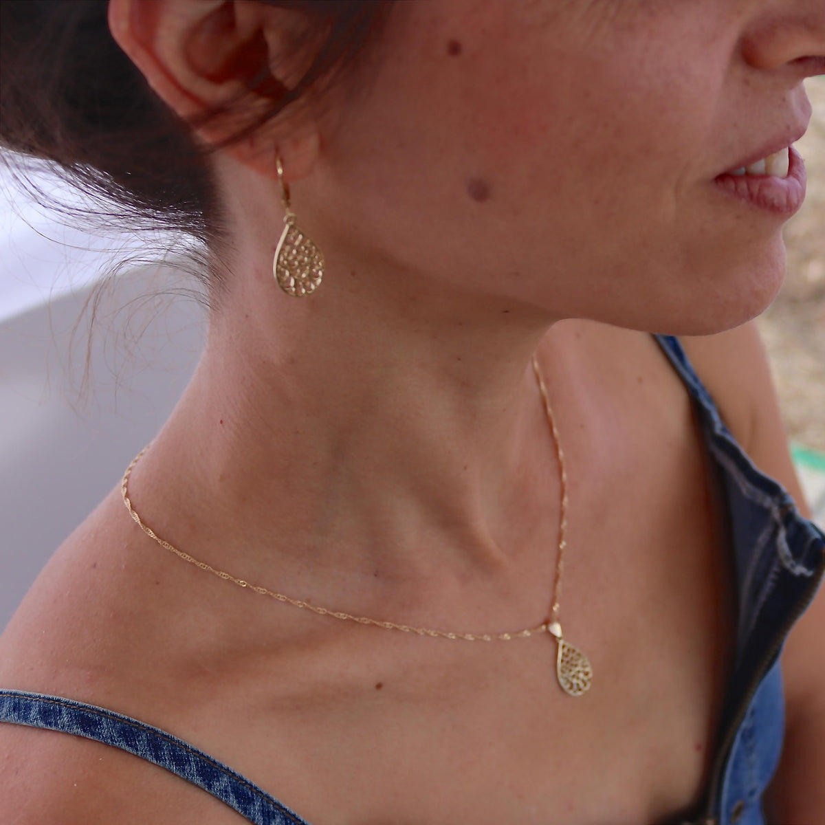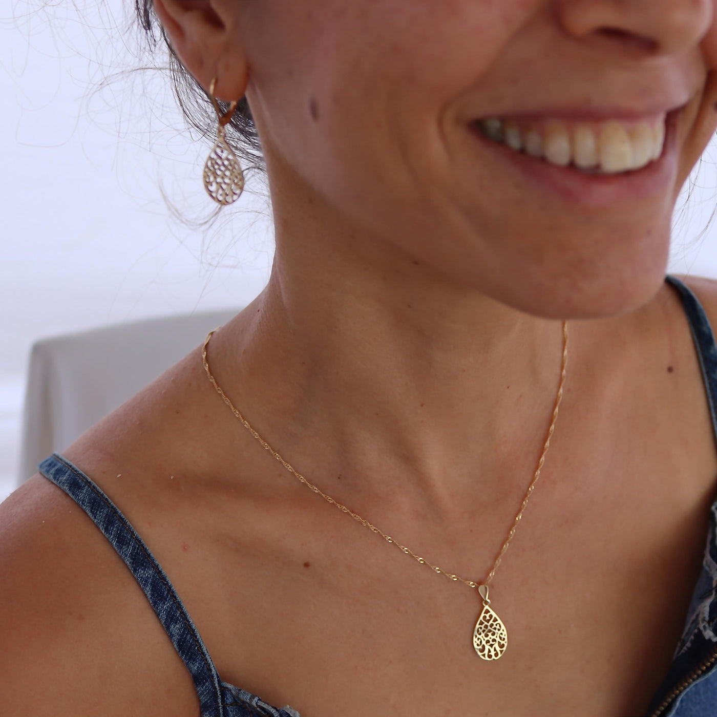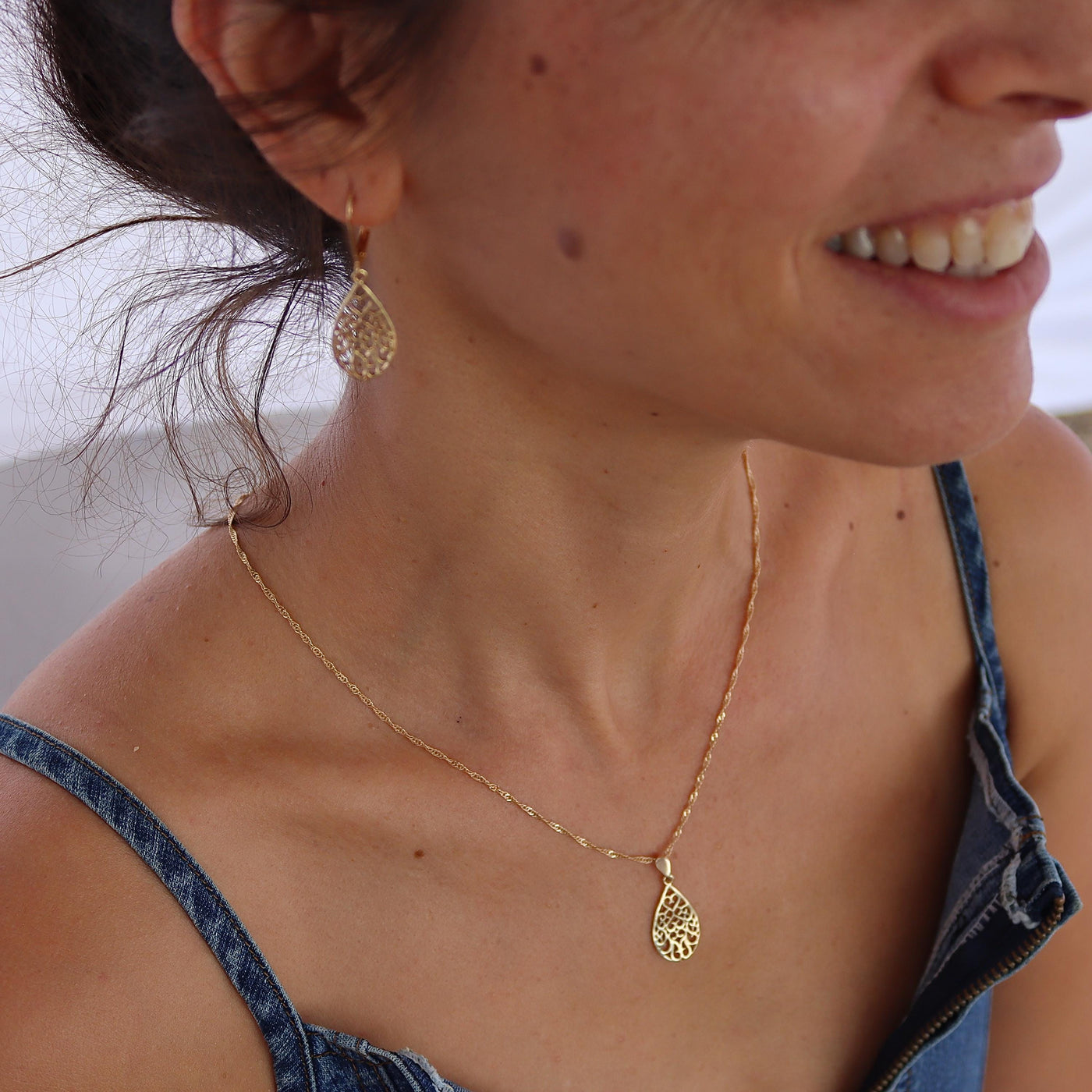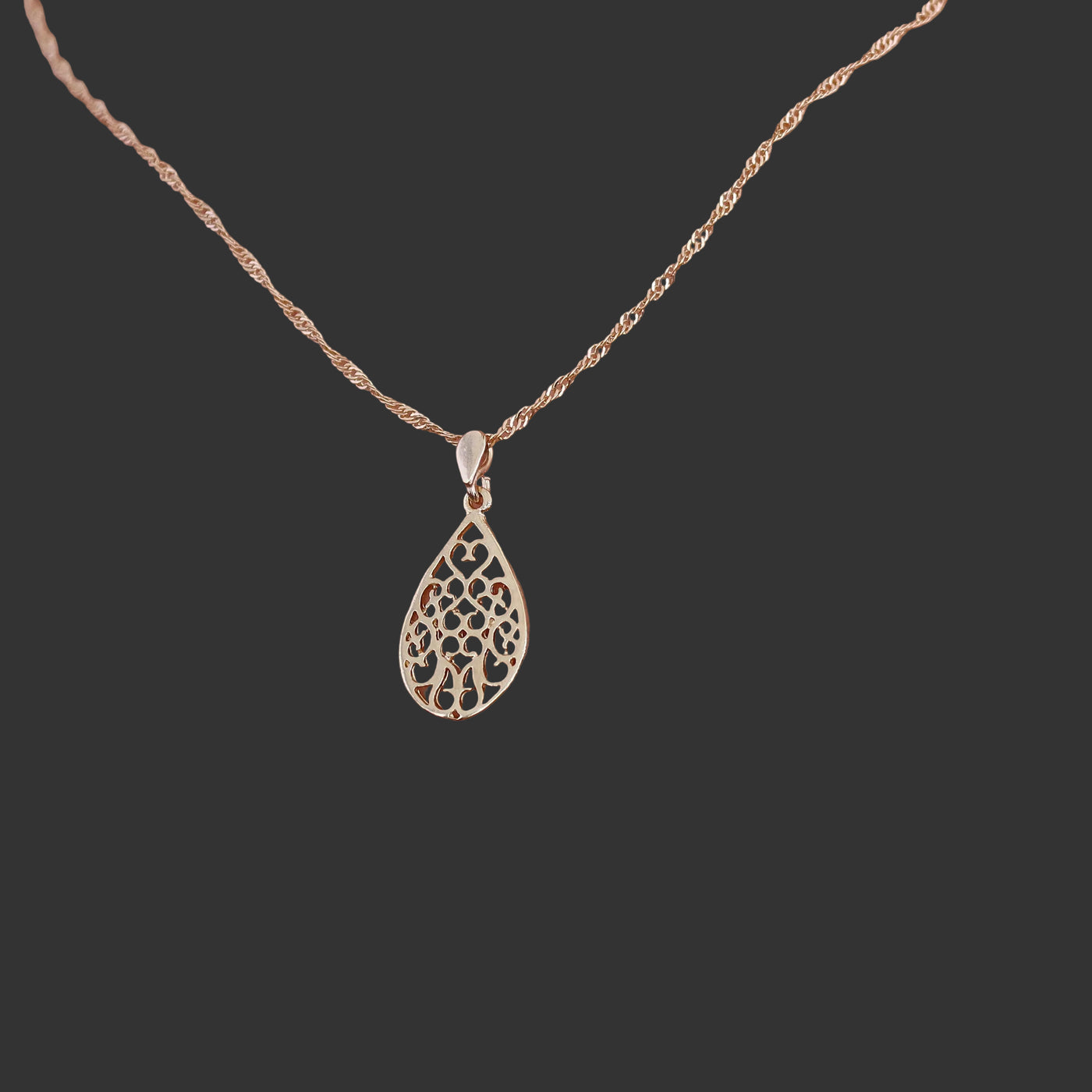 שרשרת תליון טיפה פיליגרן בסגנון ויקטוריאני מזהב 14 קראט