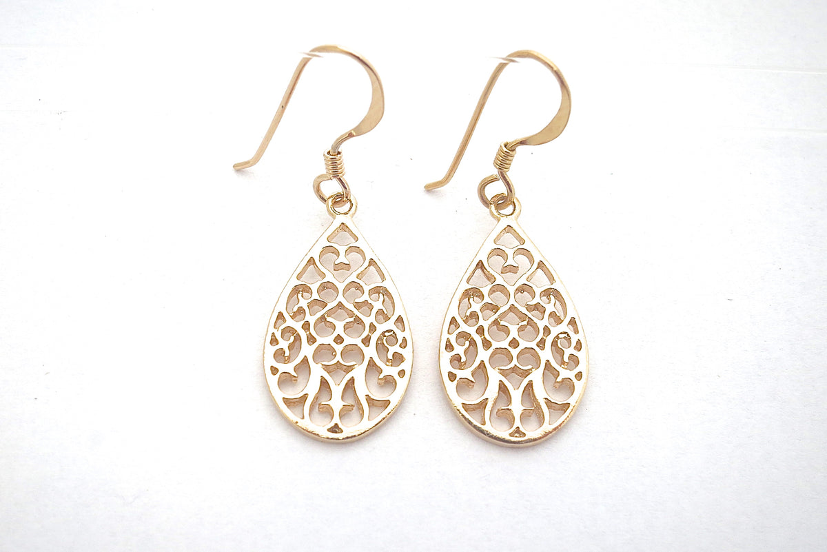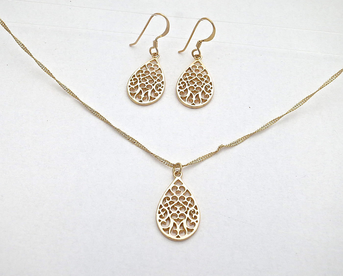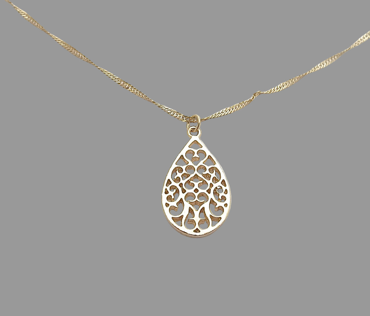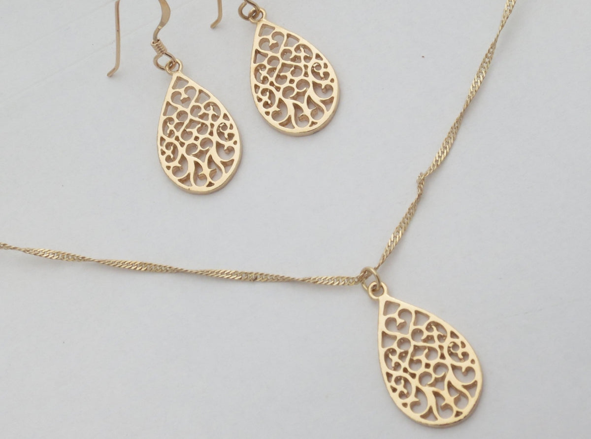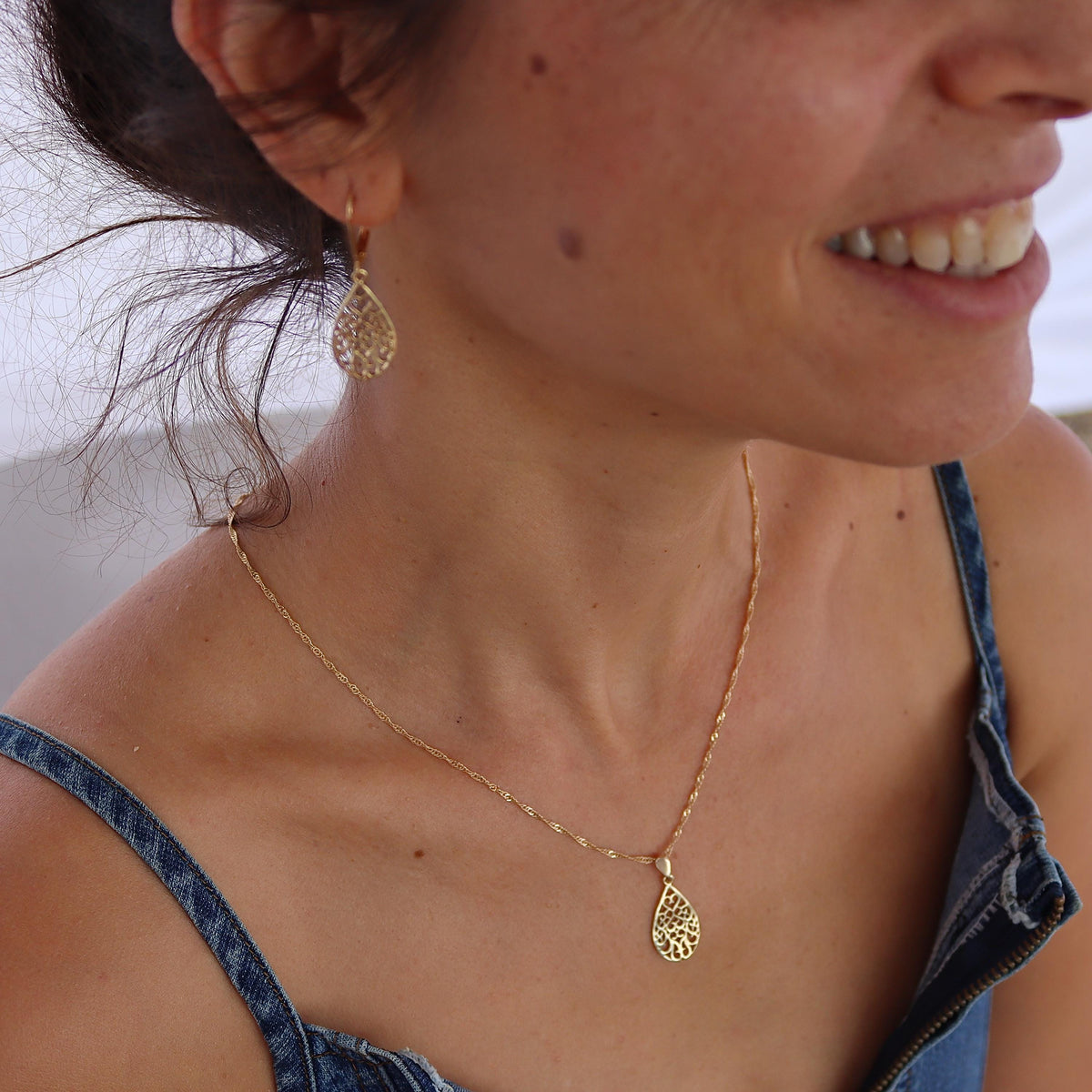 שרשרת תליון טיפה פיליגרן בסגנון ויקטוריאני מזהב 14 קראט