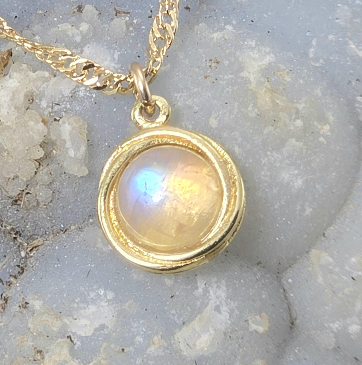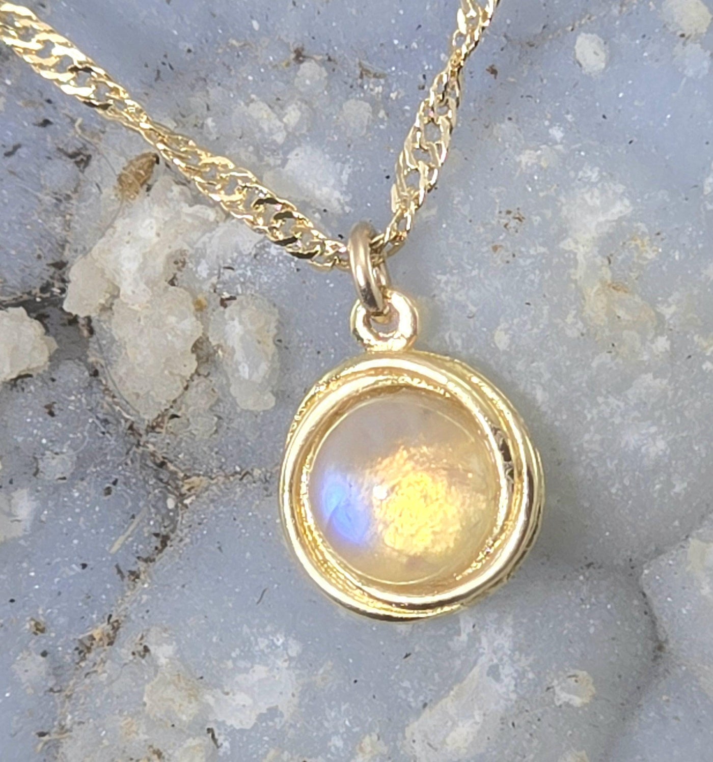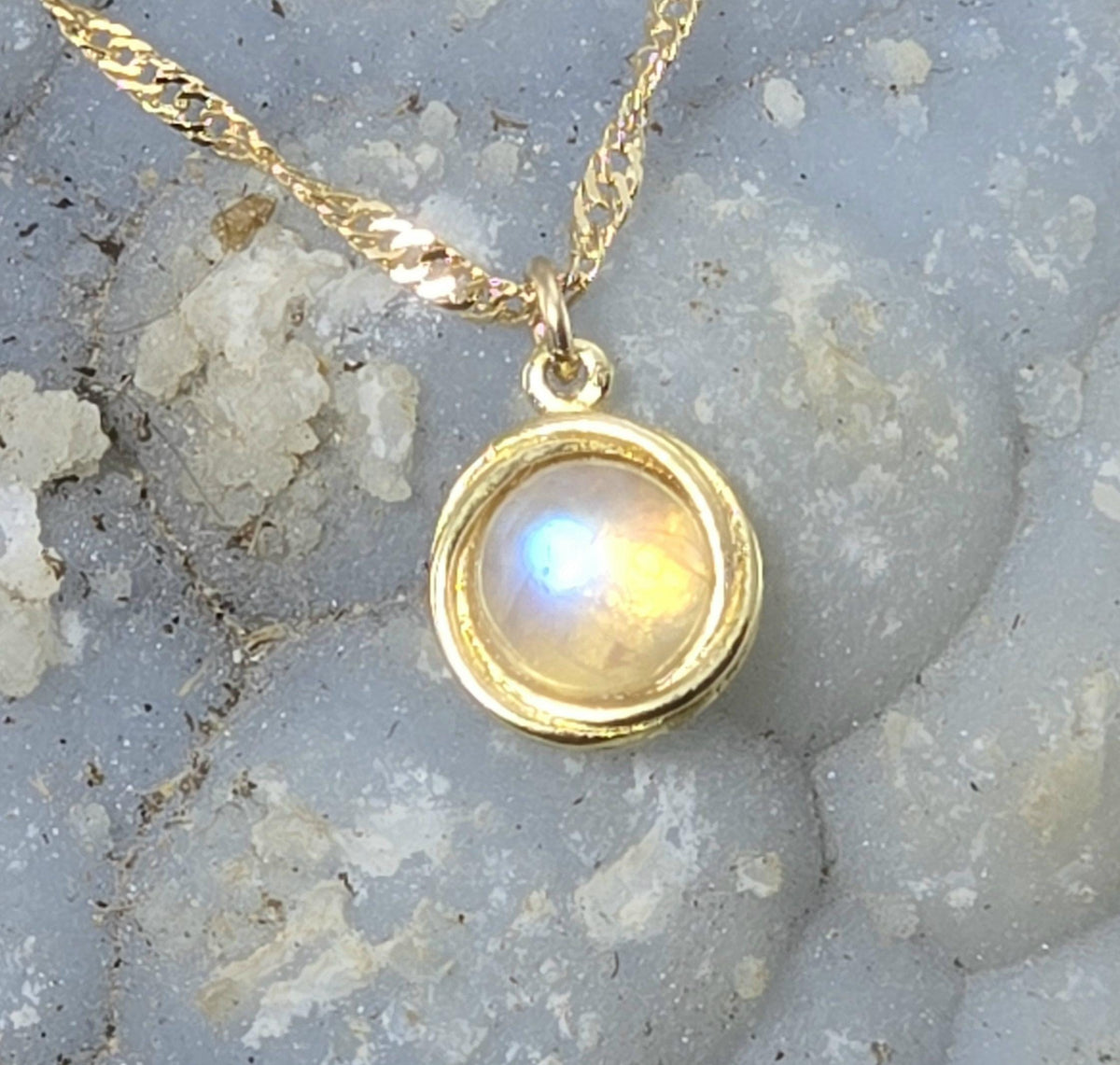 שרשרת אבן מונסטון מזהב 14 קראט, שרשרת אבן מינימליסטית