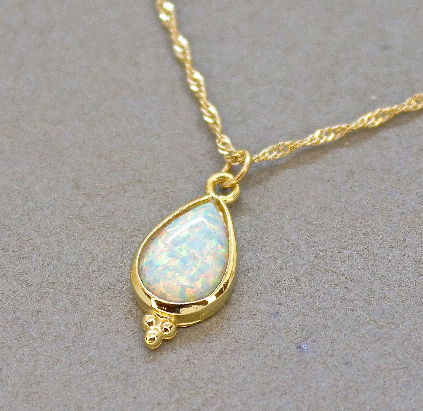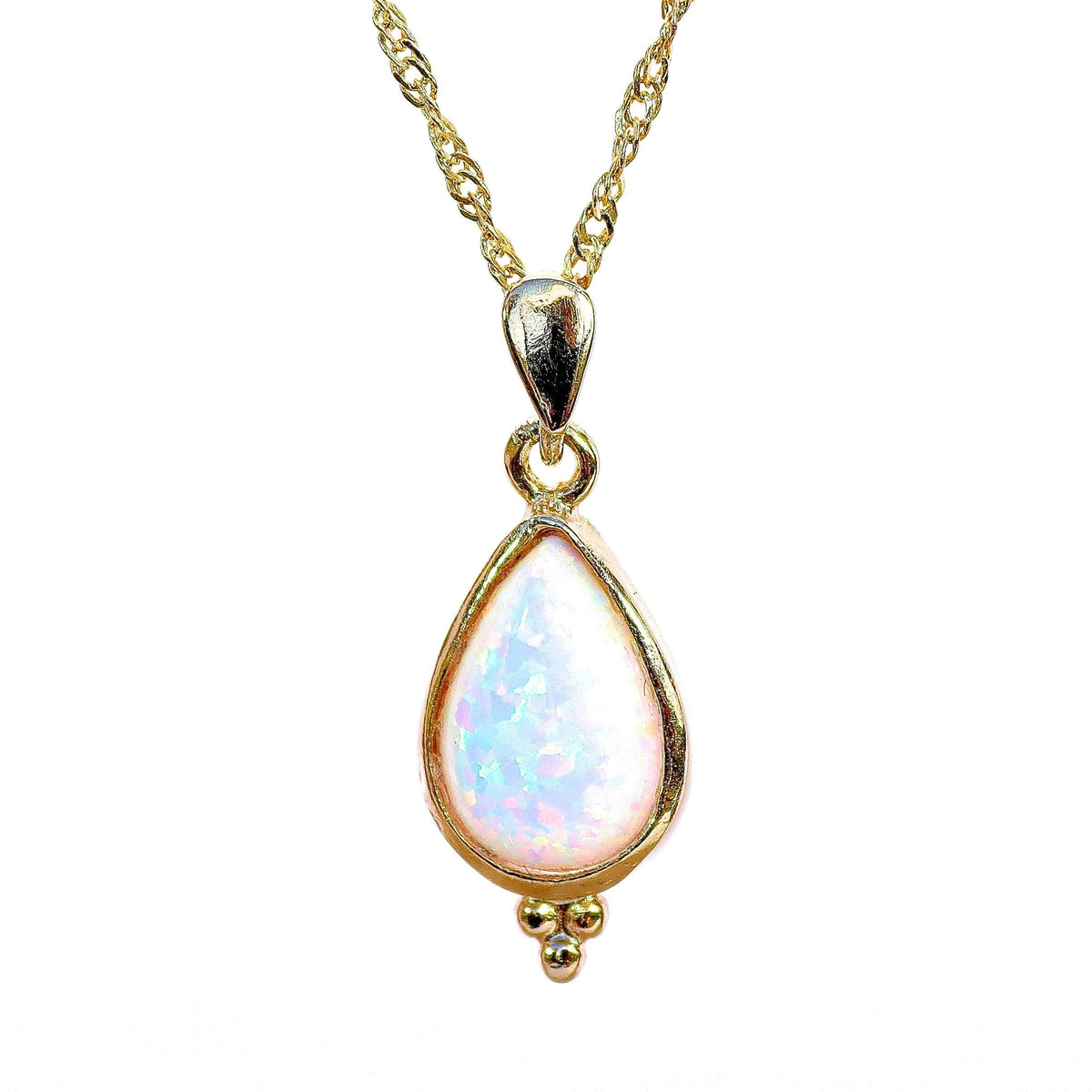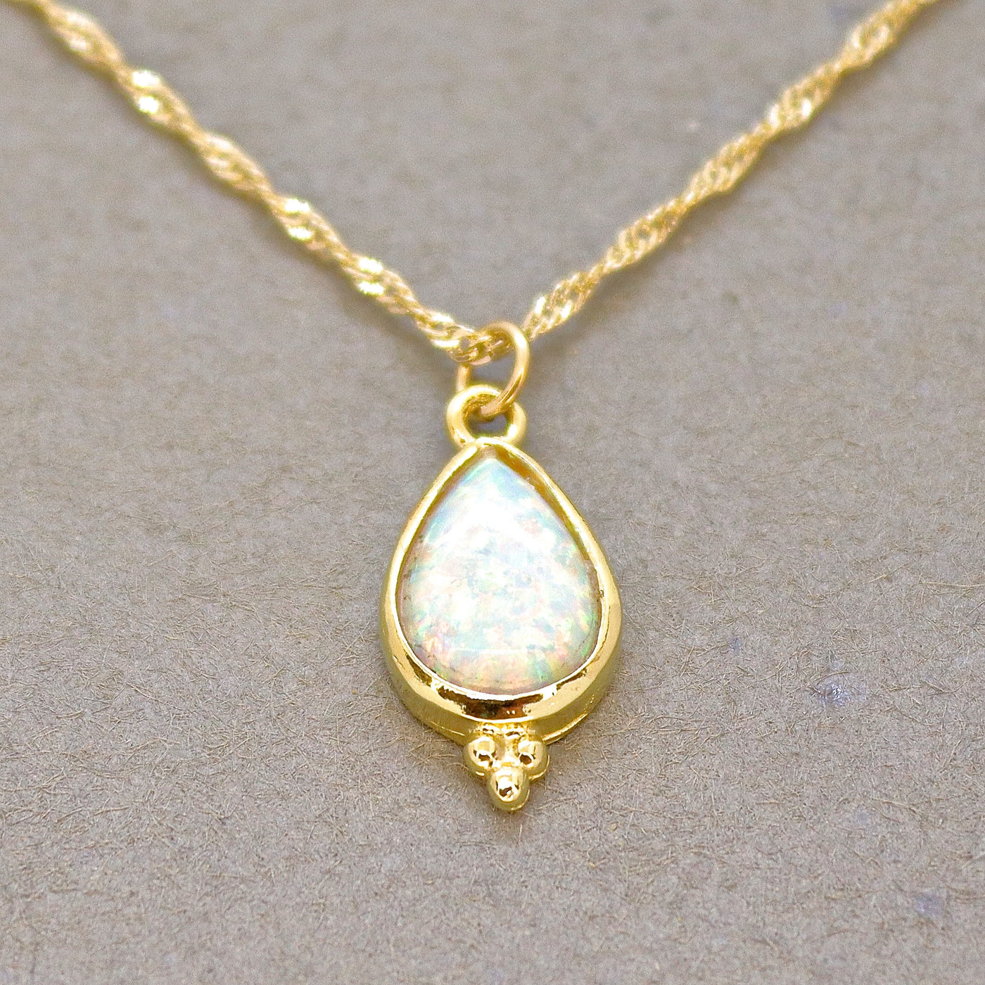 שרשרת ציפוי זהב צורת טיפה אופל לבנה.