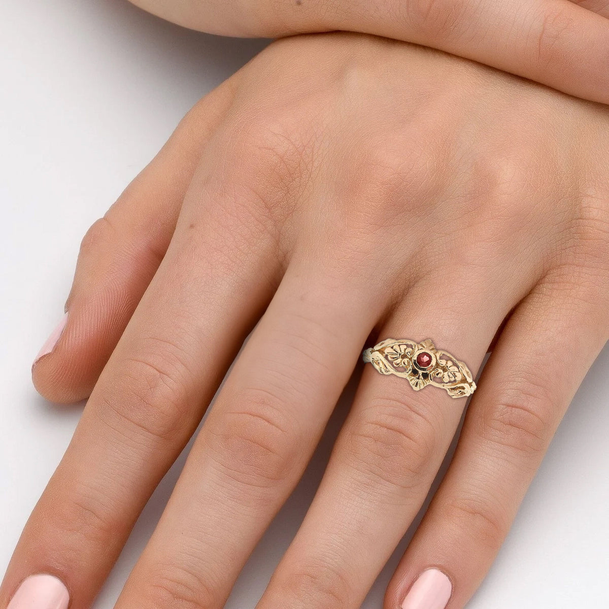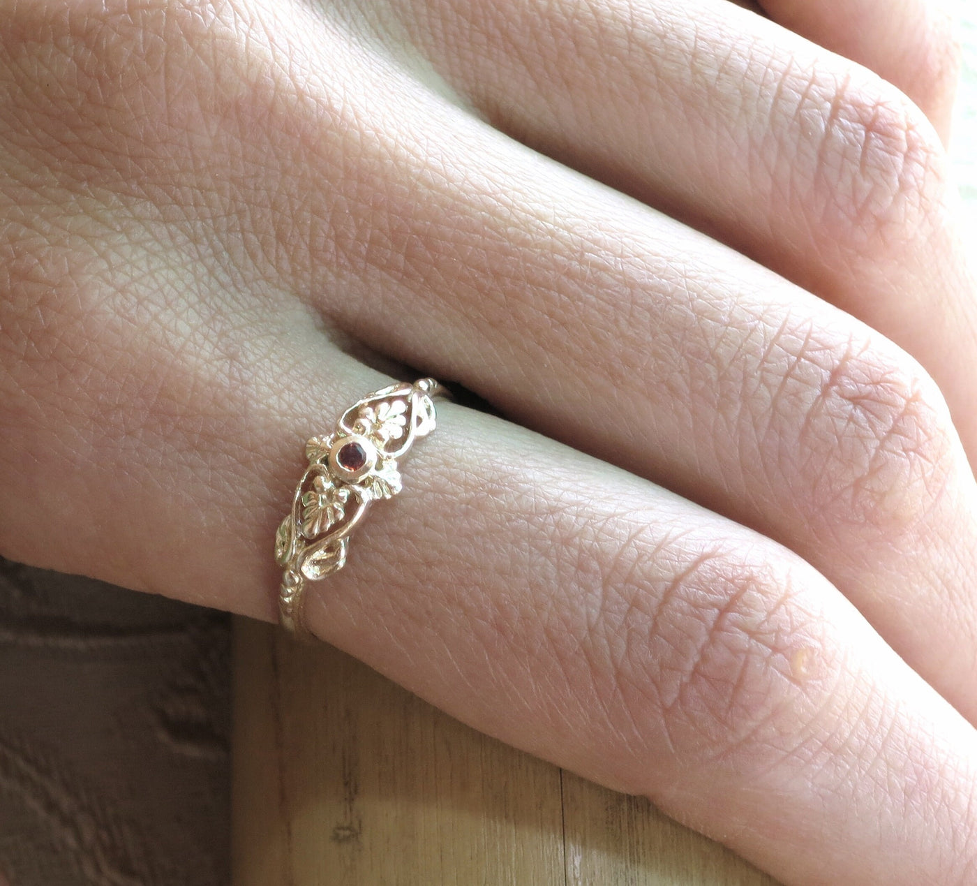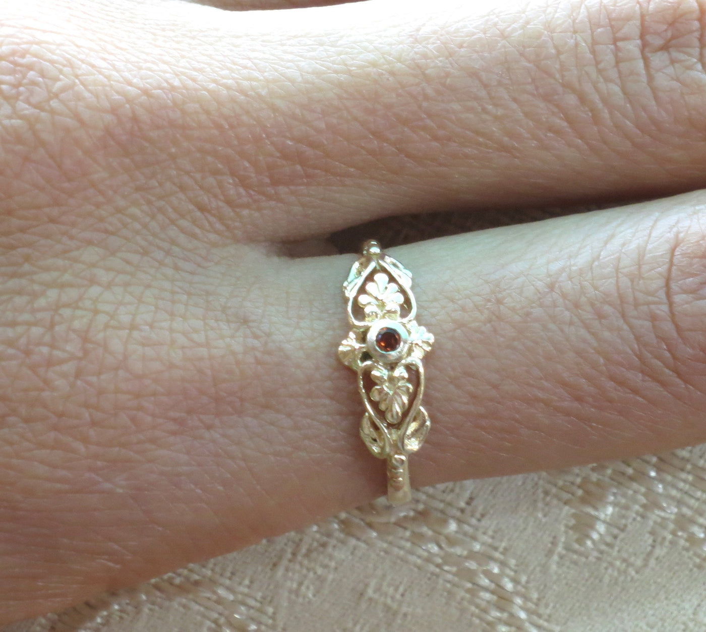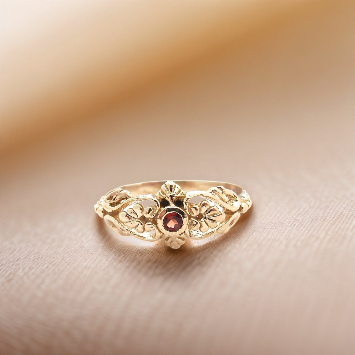 טבעת גרנט ויקטוריאני ציפוי זהב