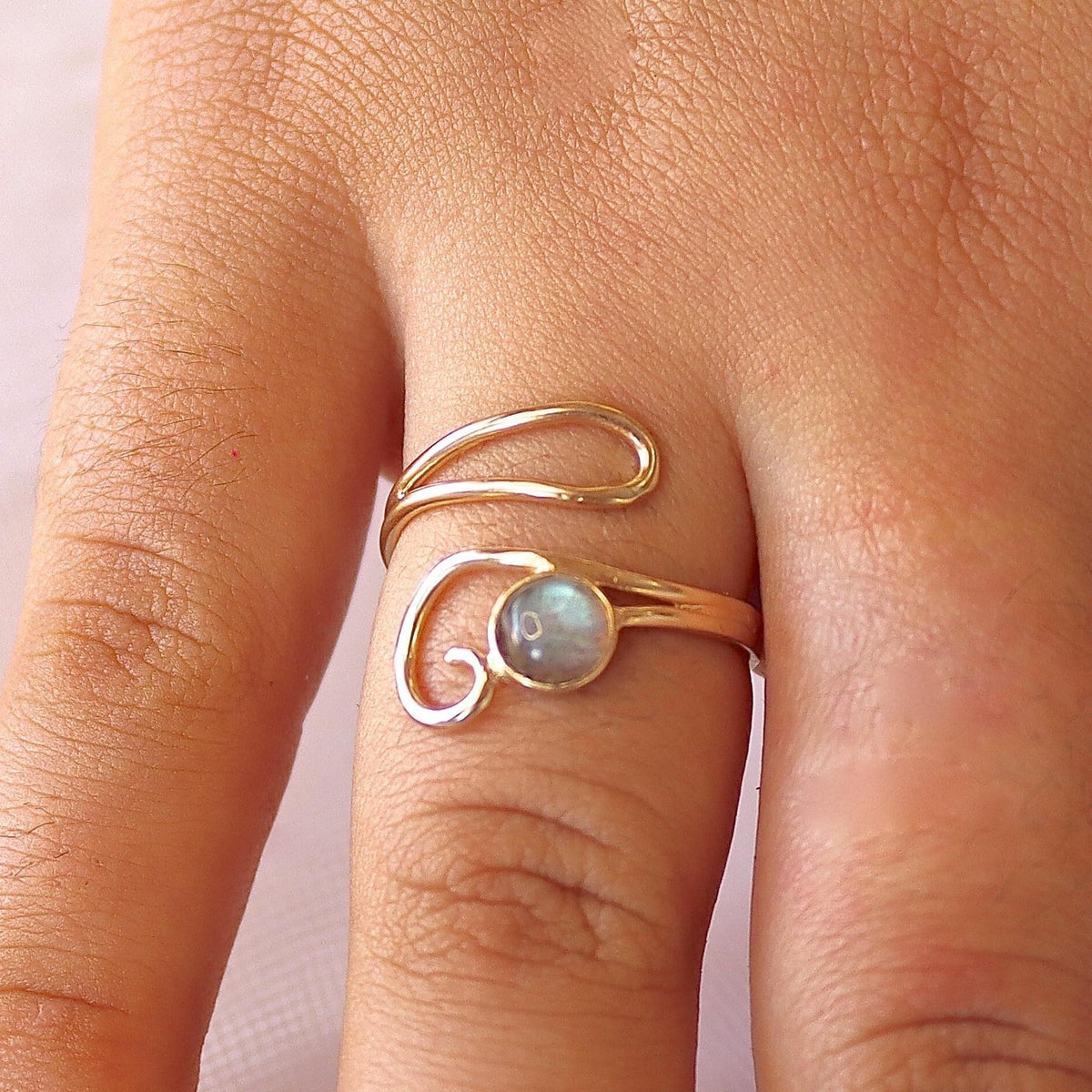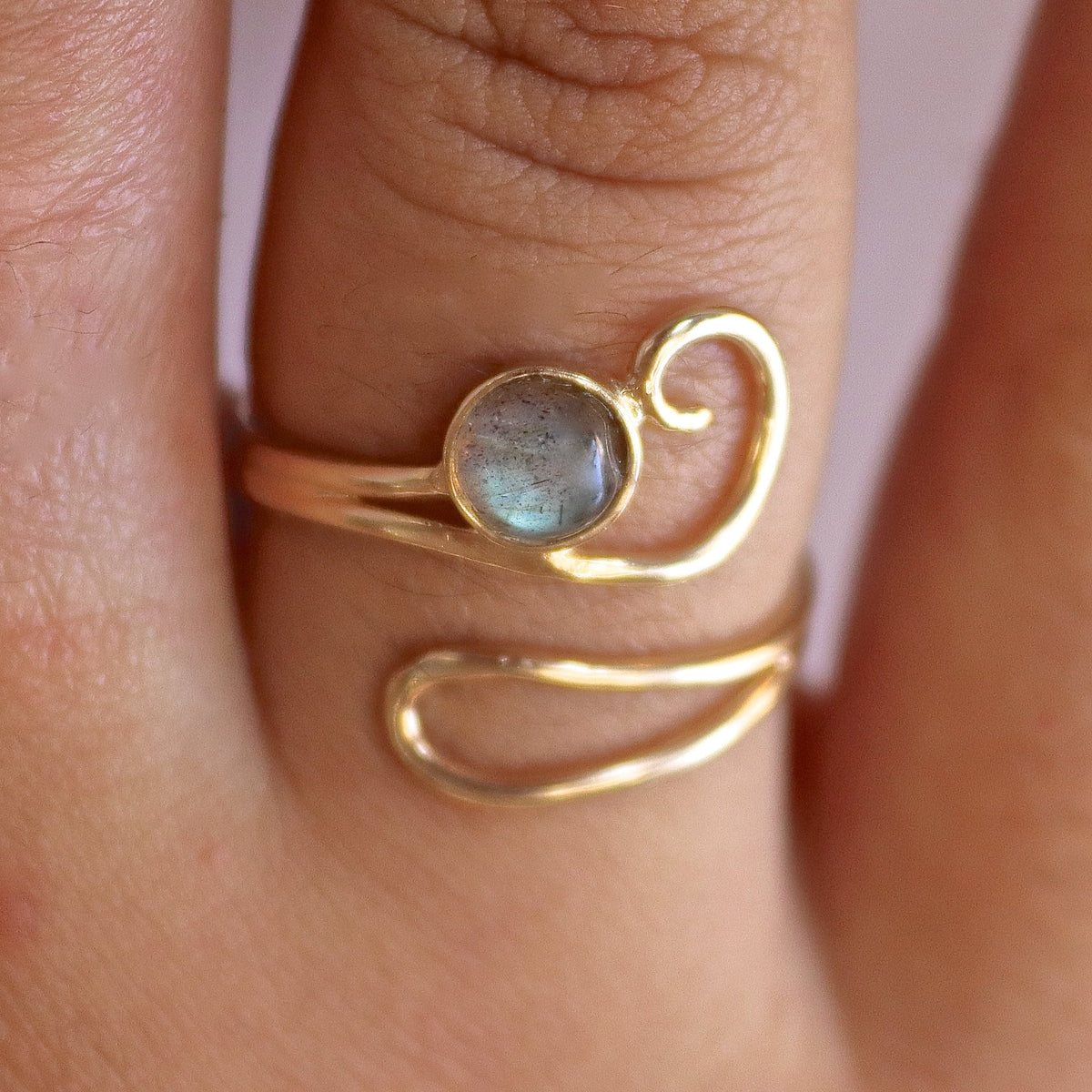 טבעת זהב לברדוריט 14 קראט, טבעת זהב מתכווננת עם אבן לברדוריט