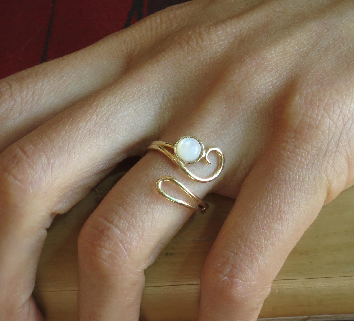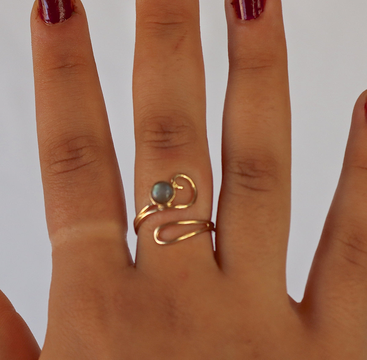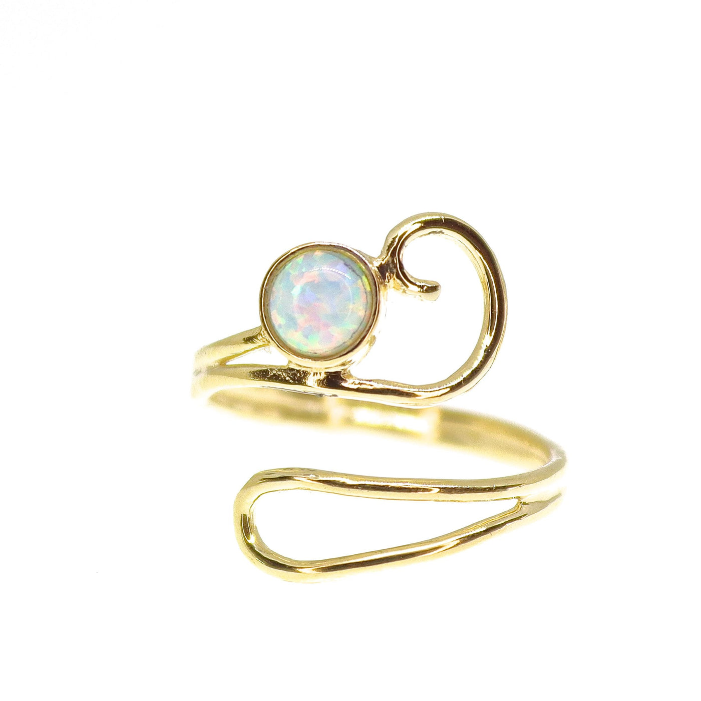 טבעת יפה וייחודית זו עשויה בעבודת יד ועוטפת את האצבע בעיצוב ספירלי אסימטרי.