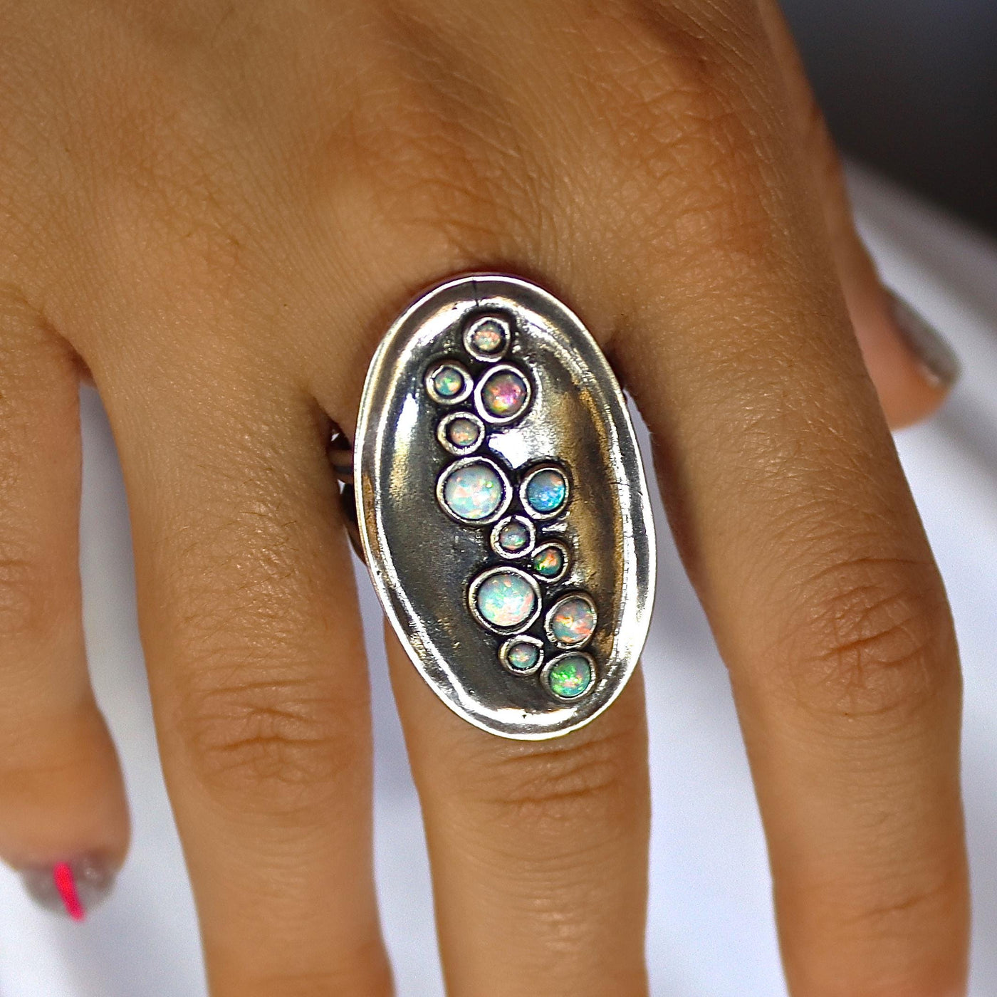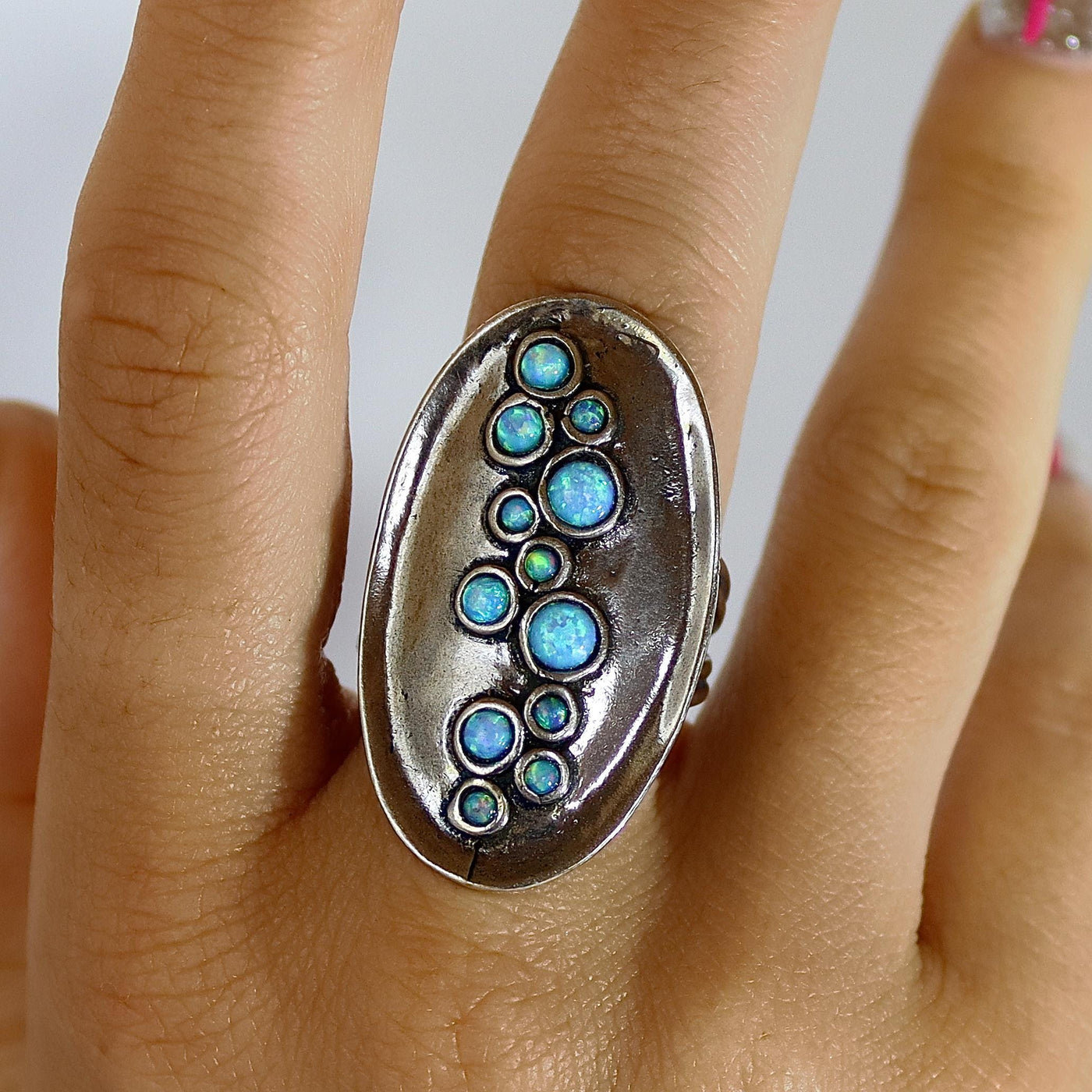 טבעת ארוכה מרובת אופלים כחולים כסף 925