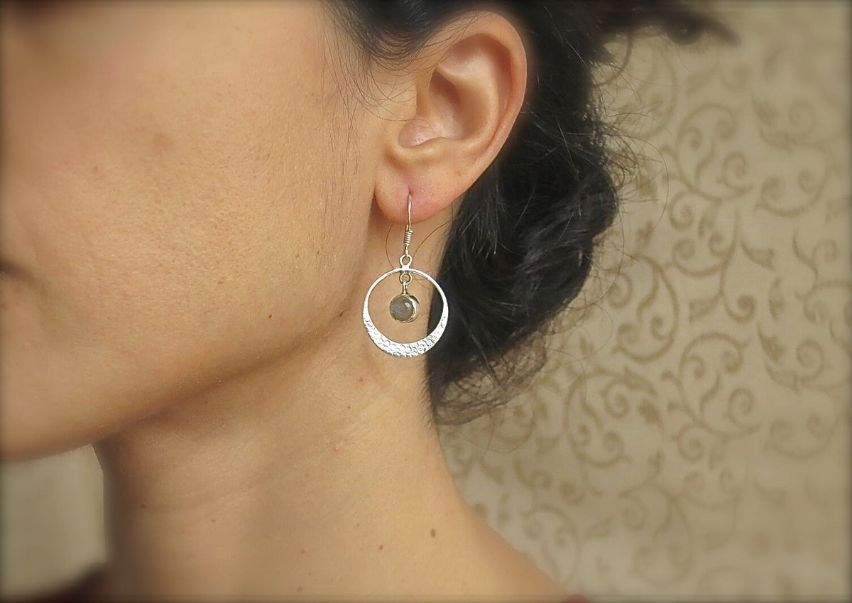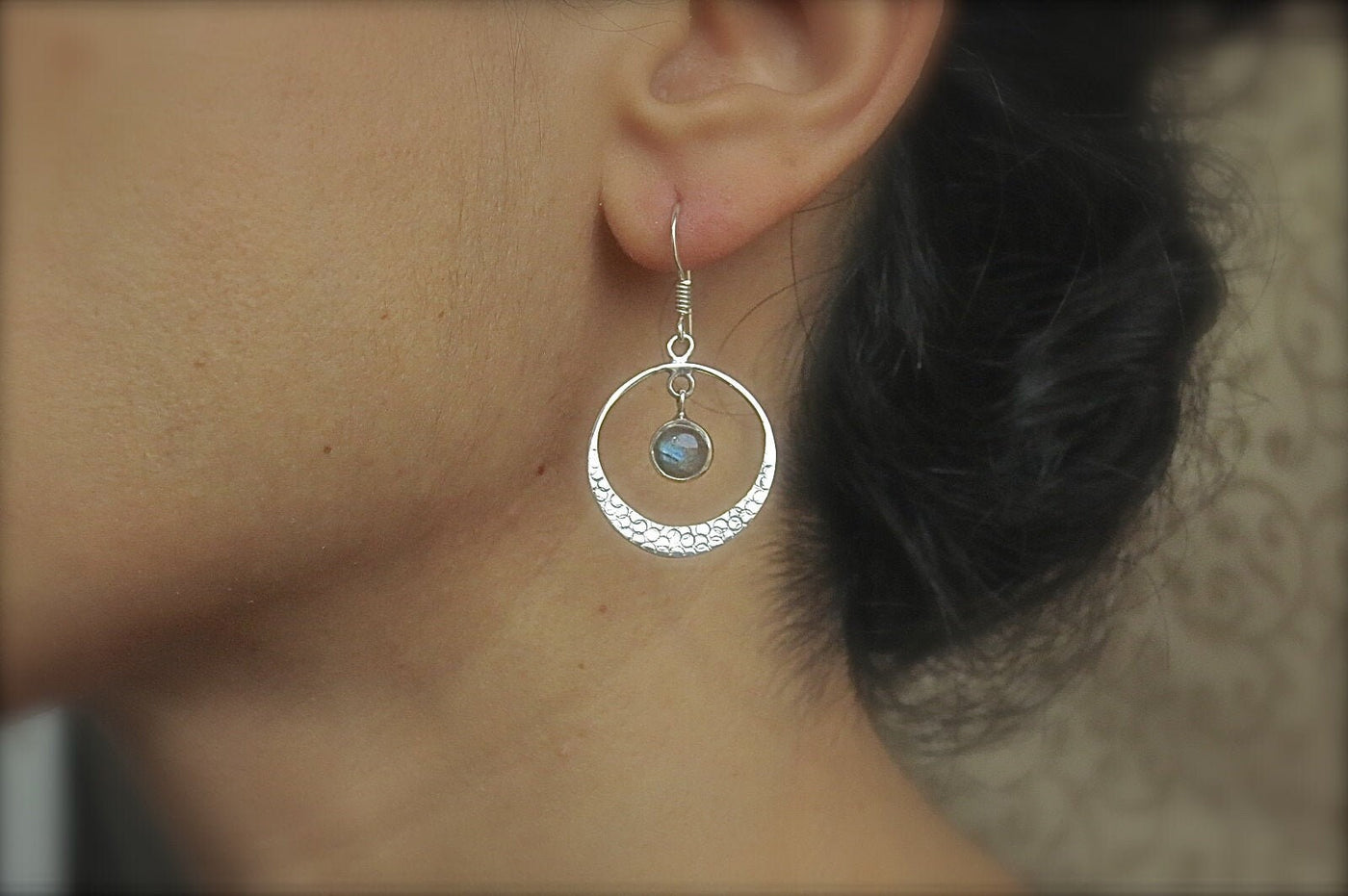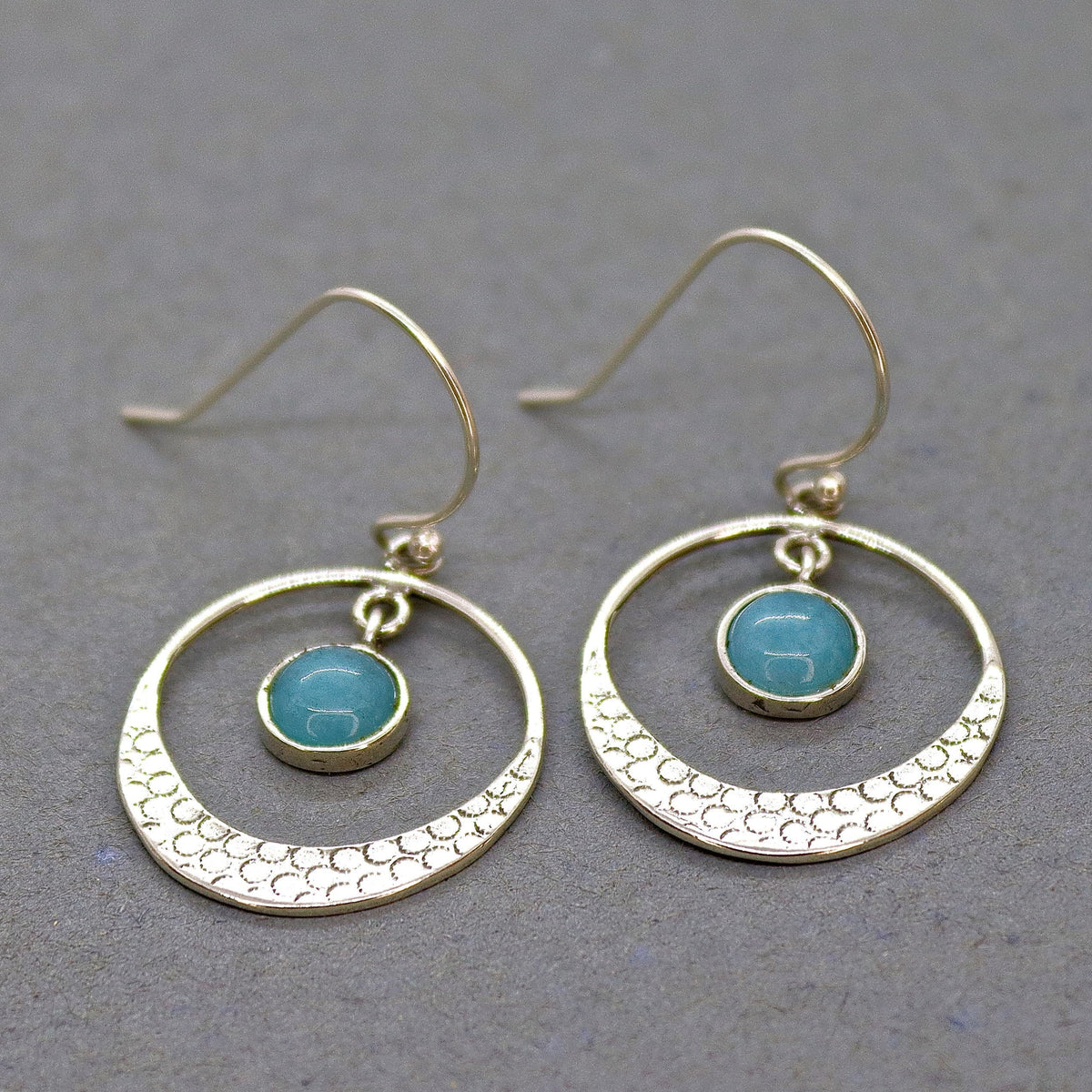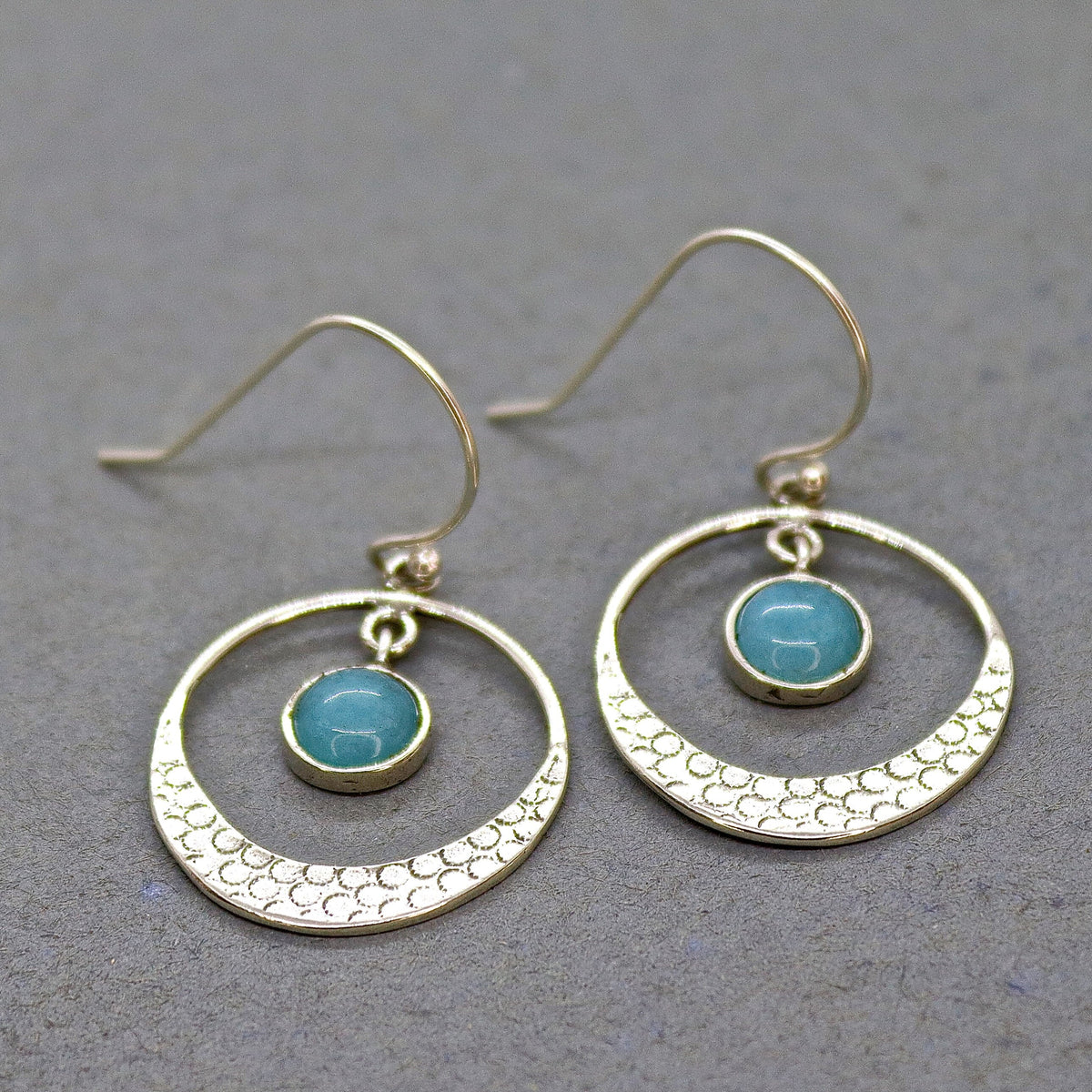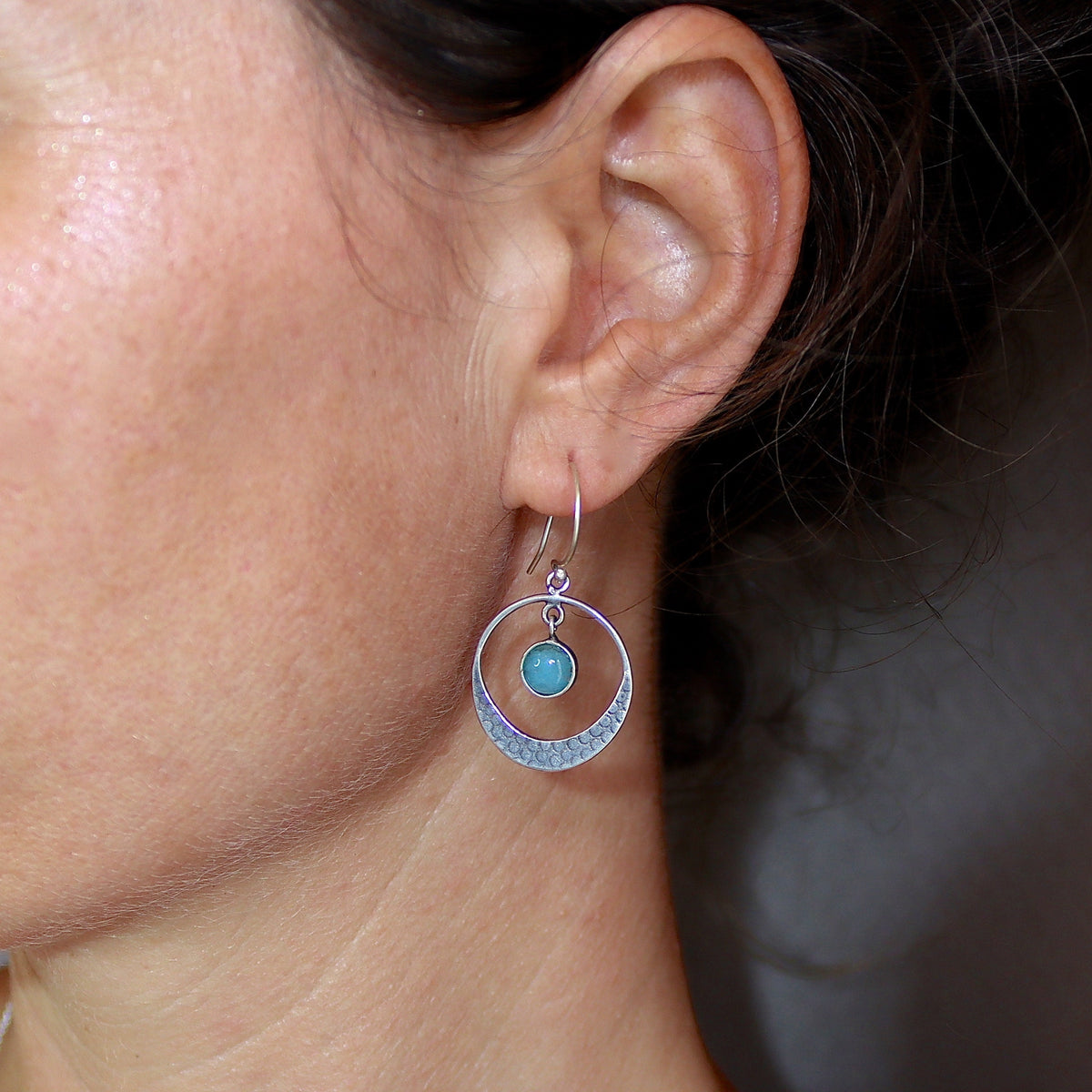 עגילי חישוק כסף תלויים אקוומרין בעבודת יד