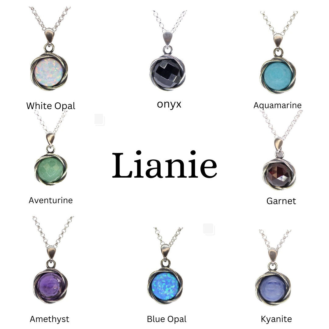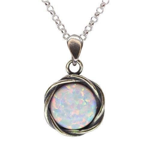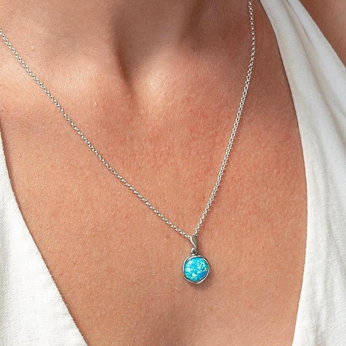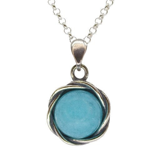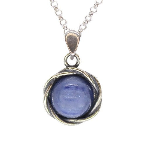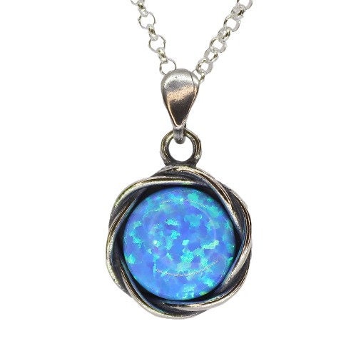 שרשרת אופל כחול מכסף 925: תליון עגול בעבודת יד