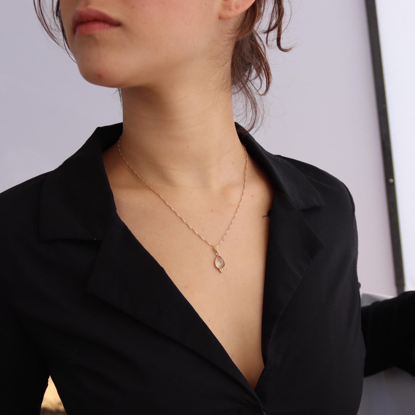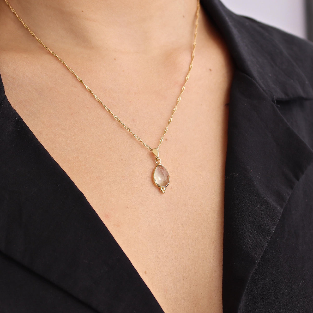 תליון שרשרת זהב 14 קראט בצבע אמטיסט ירוק