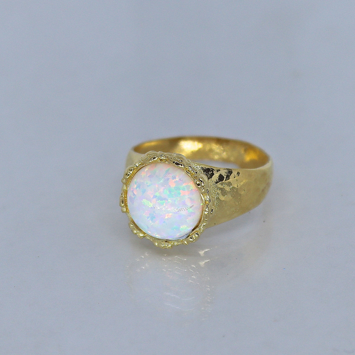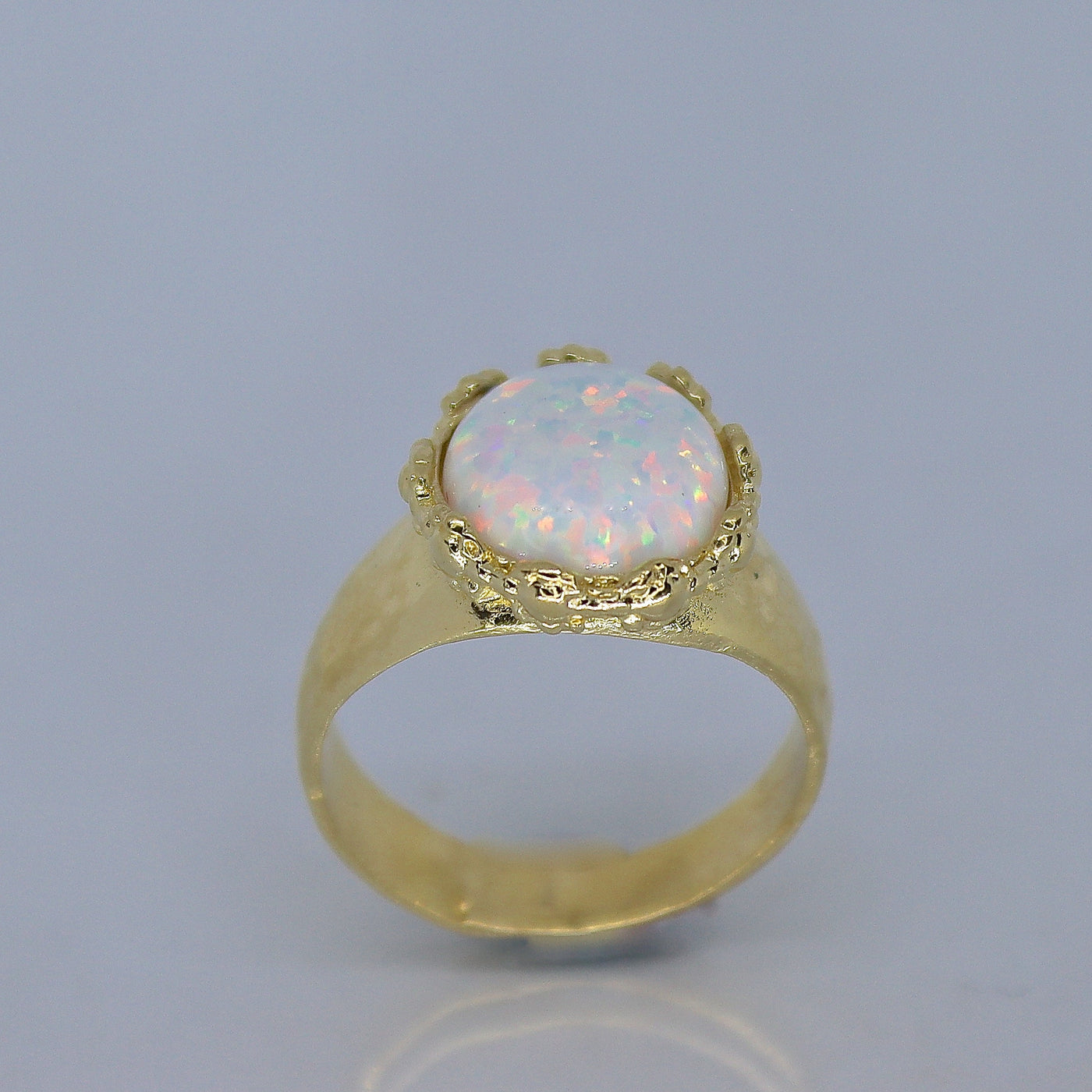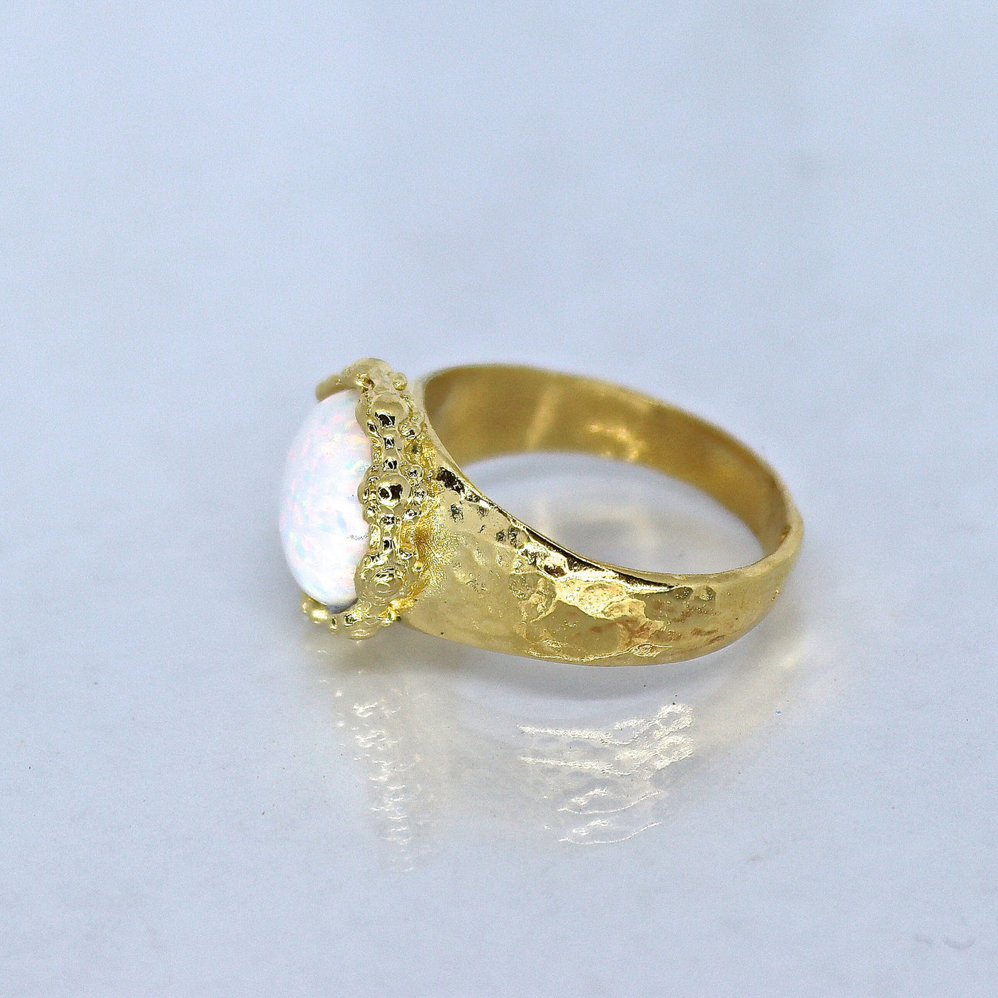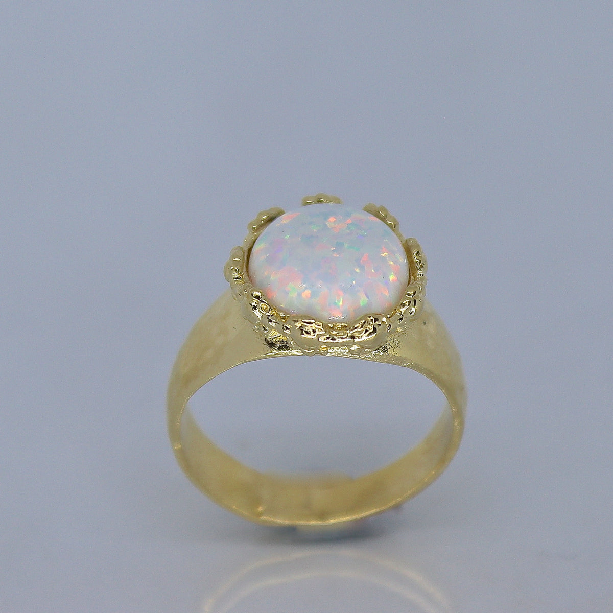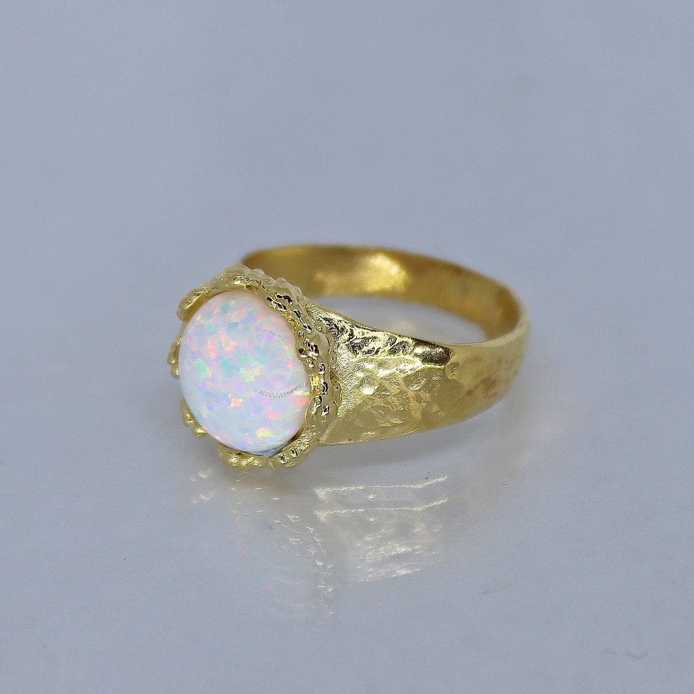 טבעת אופל לבנה גדולה מצופה זהב
