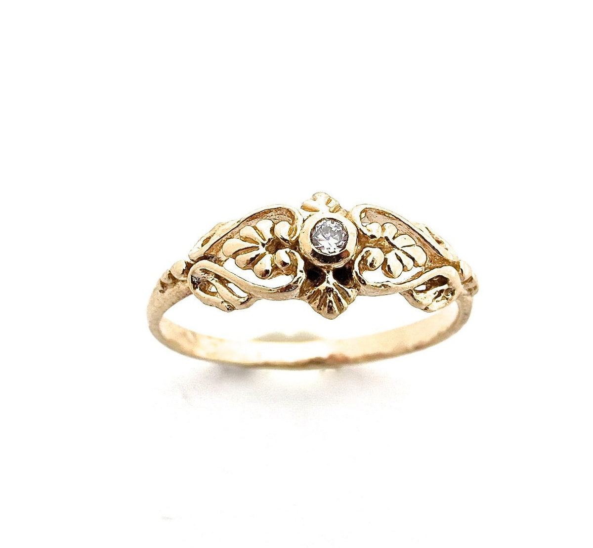 טבעת ויקטוריאנית עם זירקון ציפוי זהב